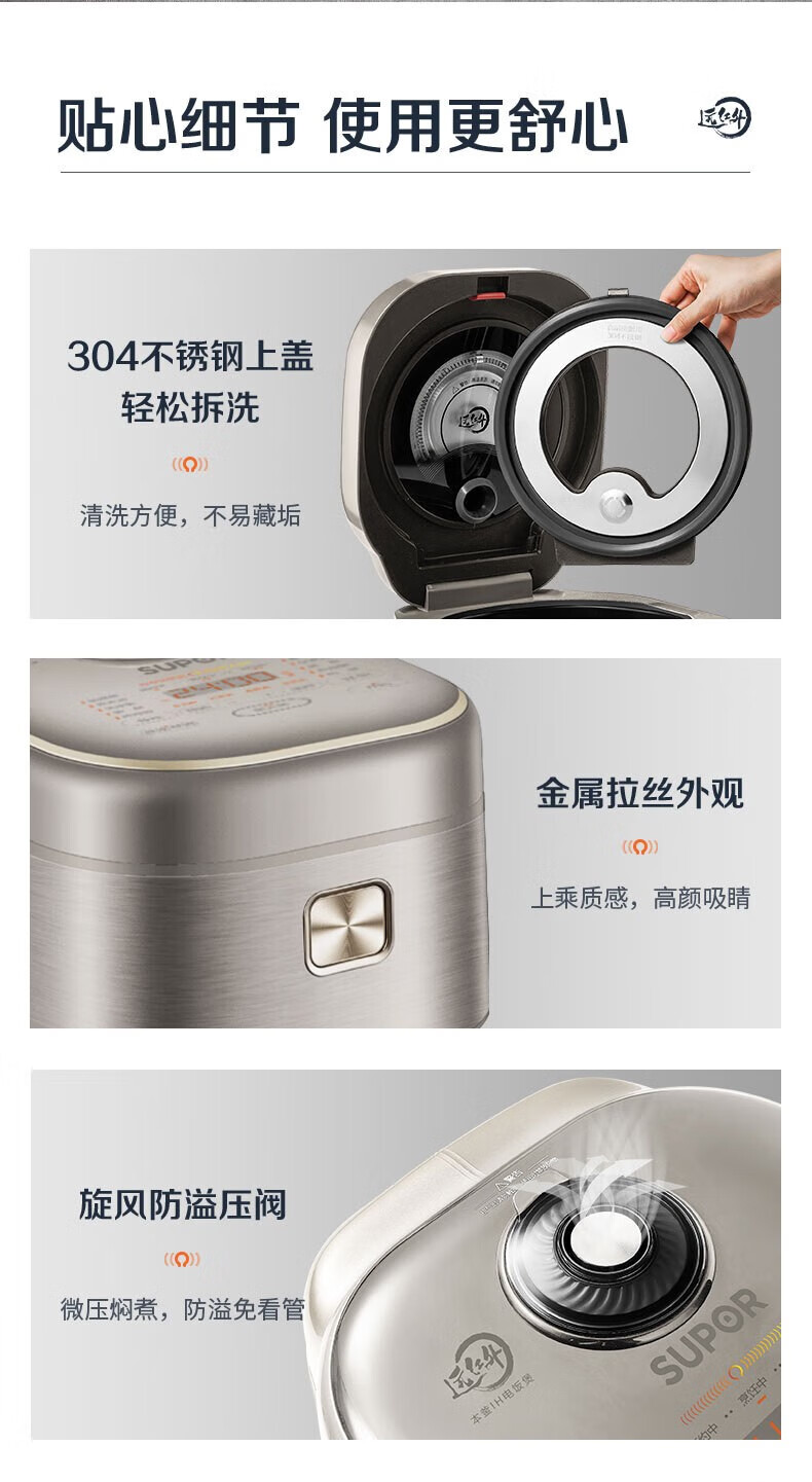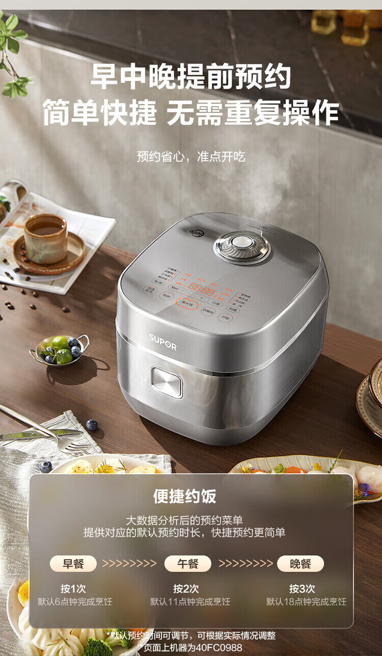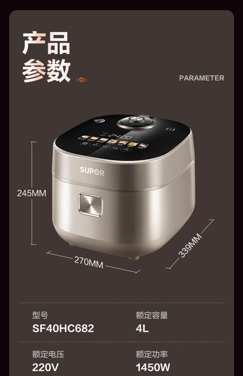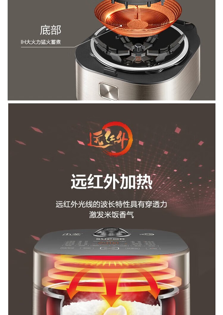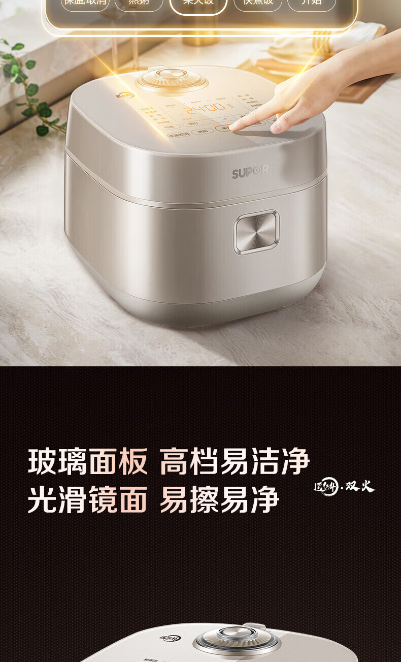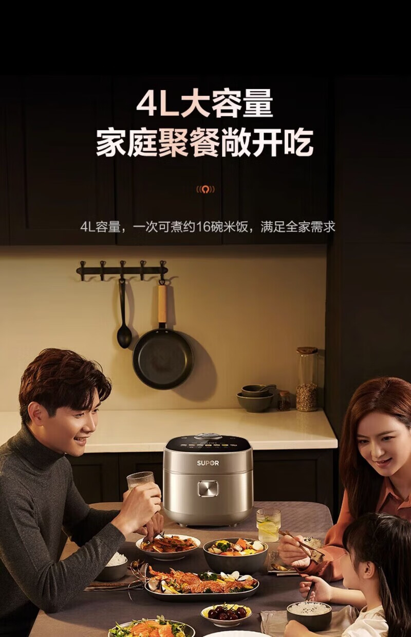 SUPOR Haushaltsreiskocher 4L Ferninfrarot durchdringende IH-Heizung Hochleistungs-Brennholz Reiskochen Brei Intelligente Reservierung Multifunktions-SF40HC0900 Smart-Touchscreen 4L
