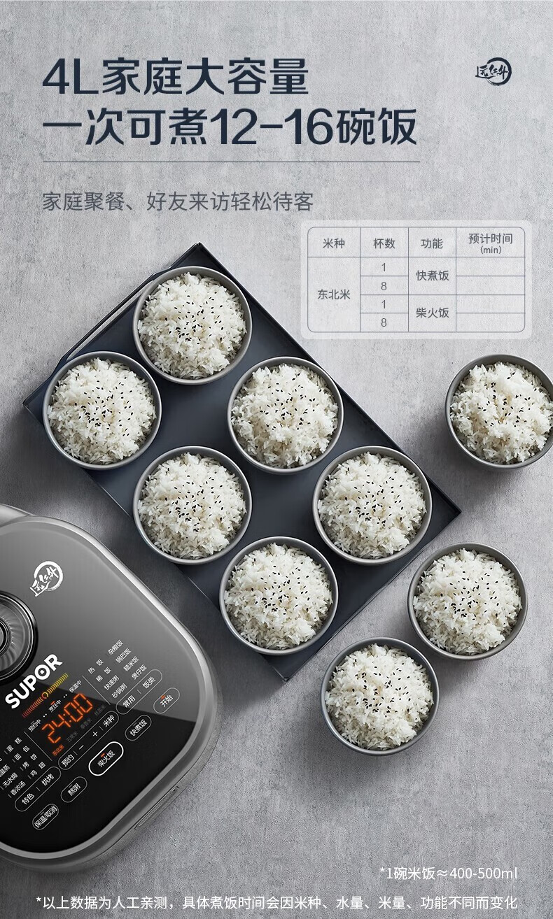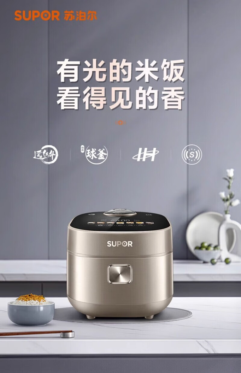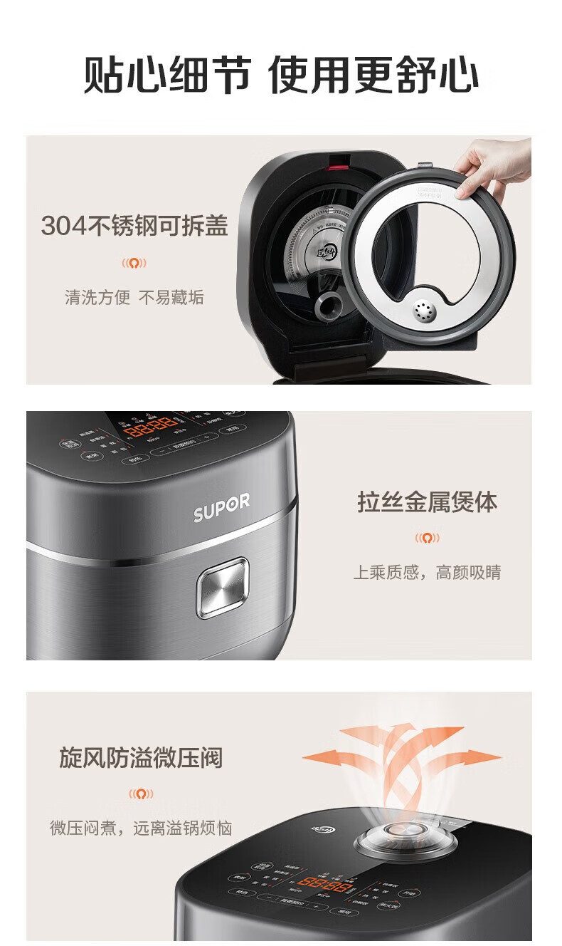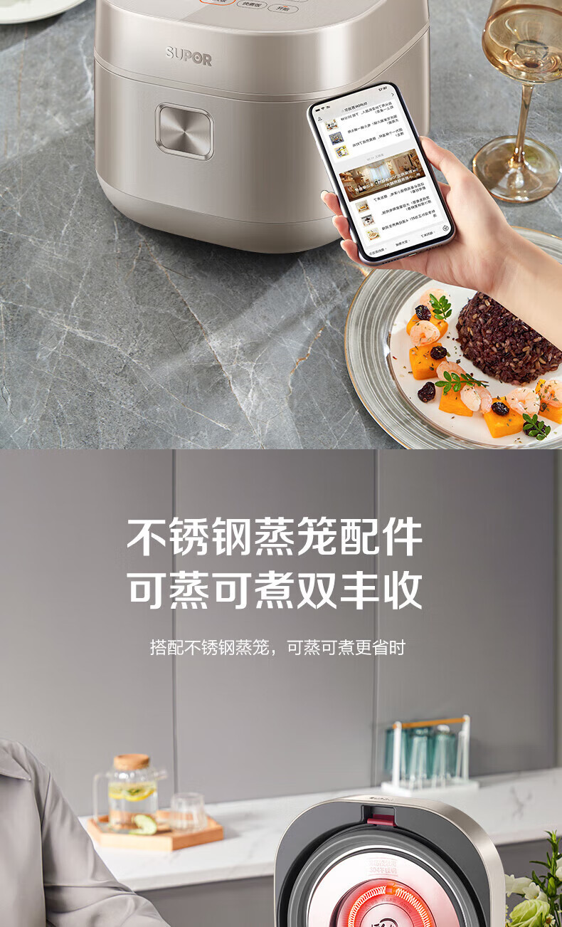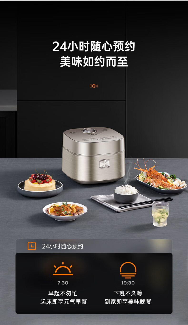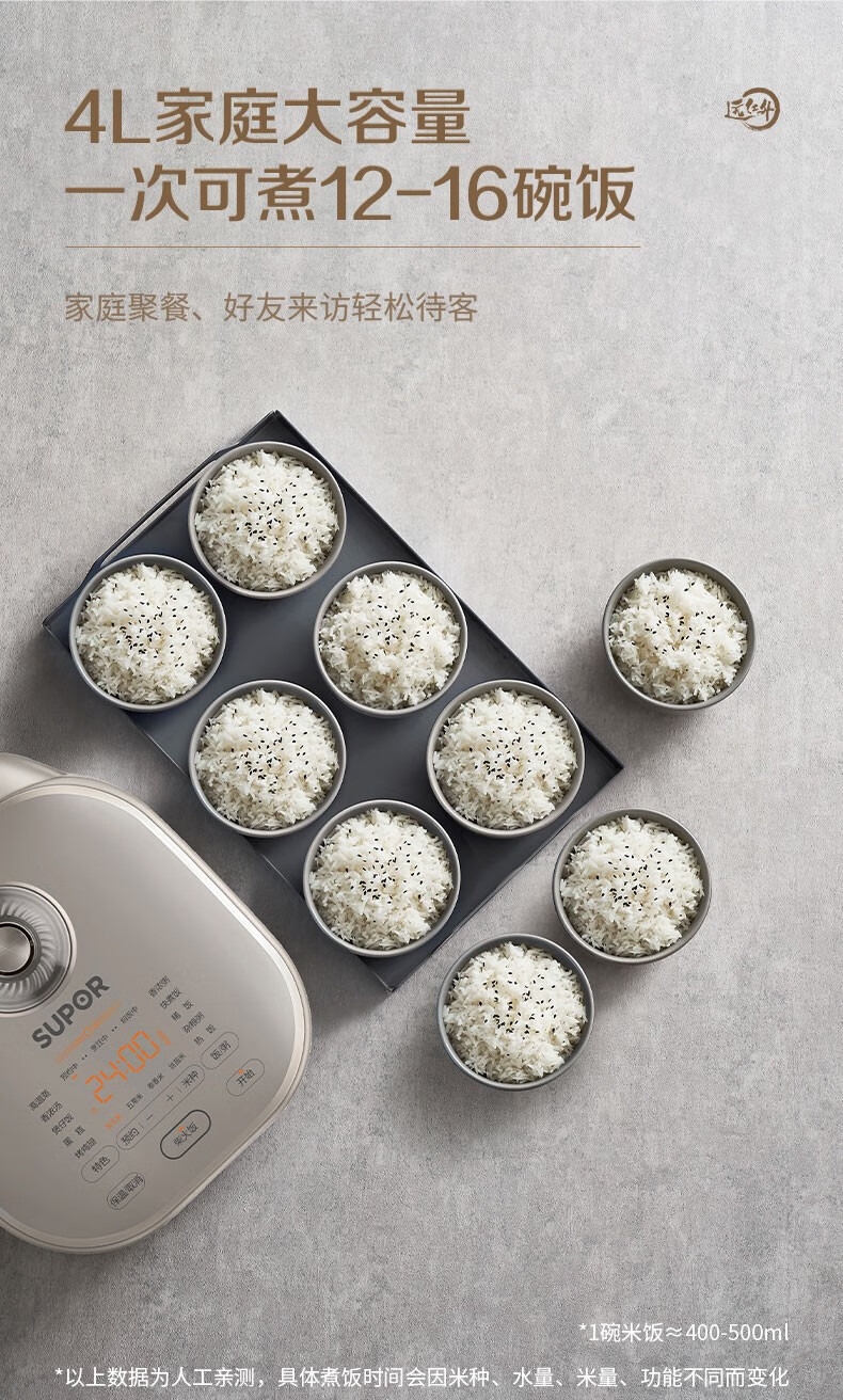 SUPOR Haushaltsreiskocher 4L Ferninfrarot durchdringende IH-Heizung Hochleistungs-Brennholz Reiskochen Brei Intelligente Reservierung Multifunktions-SF40HC0900 Smart-Touchscreen 4L