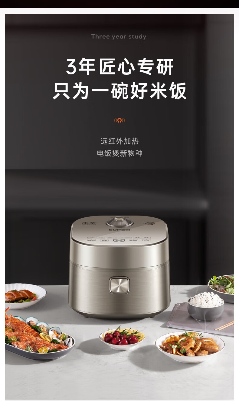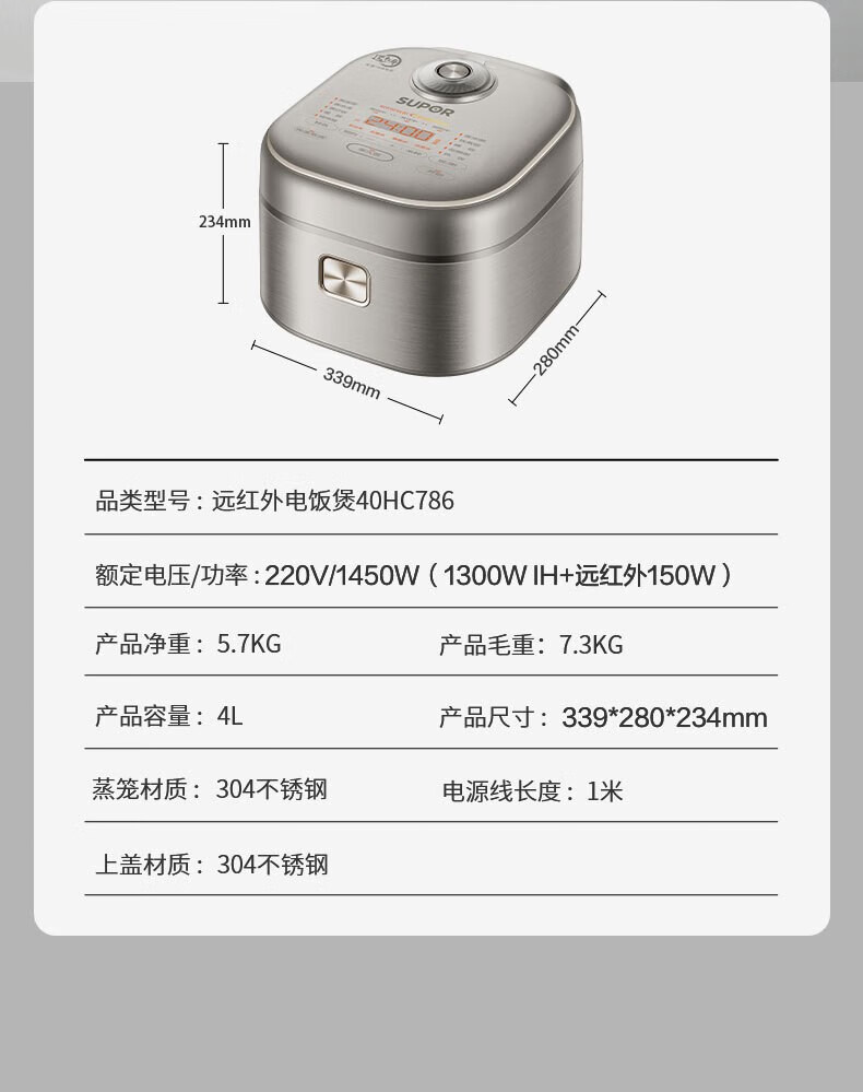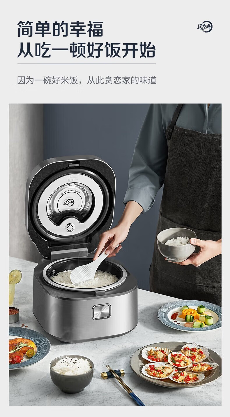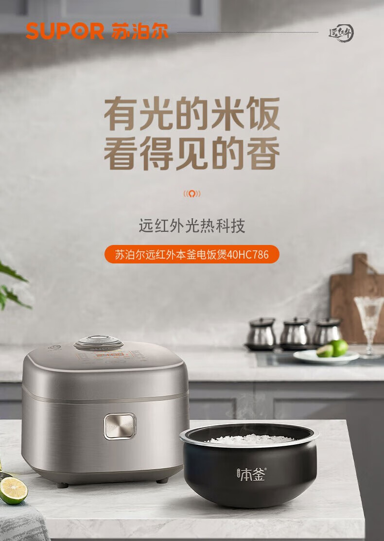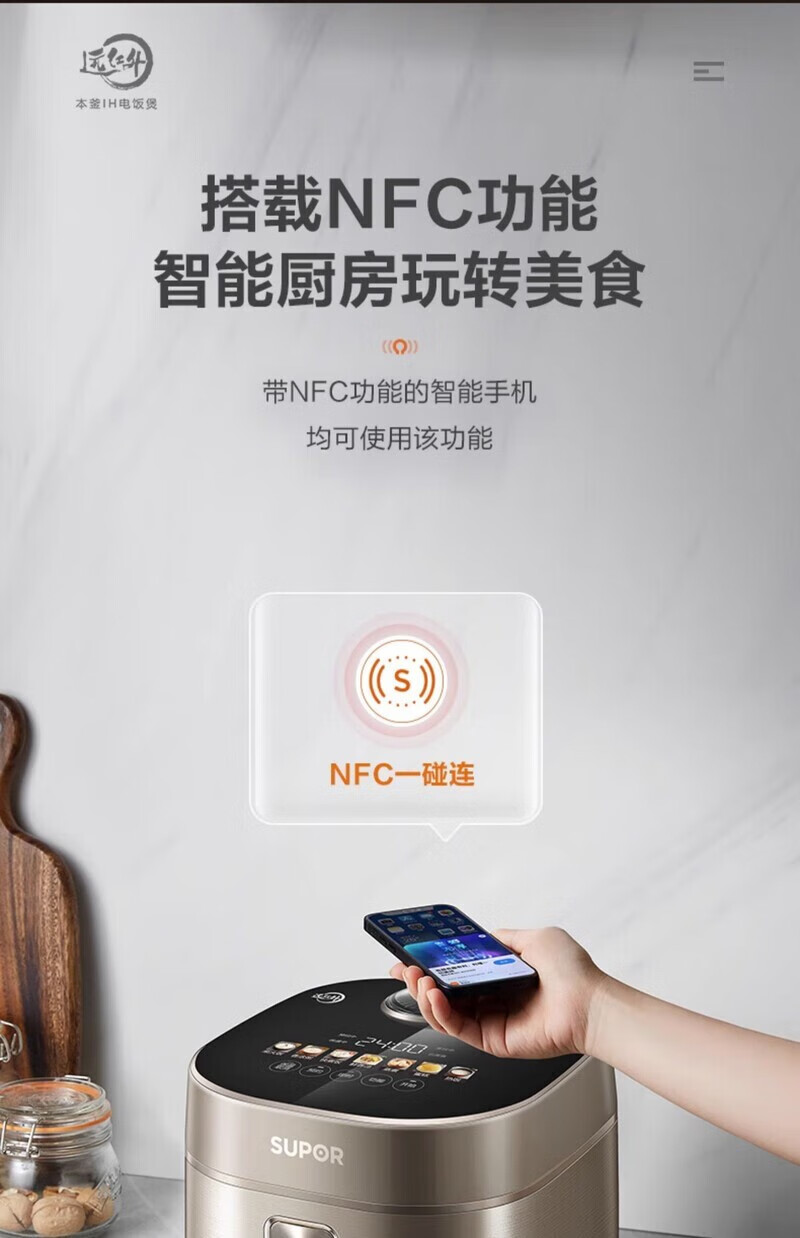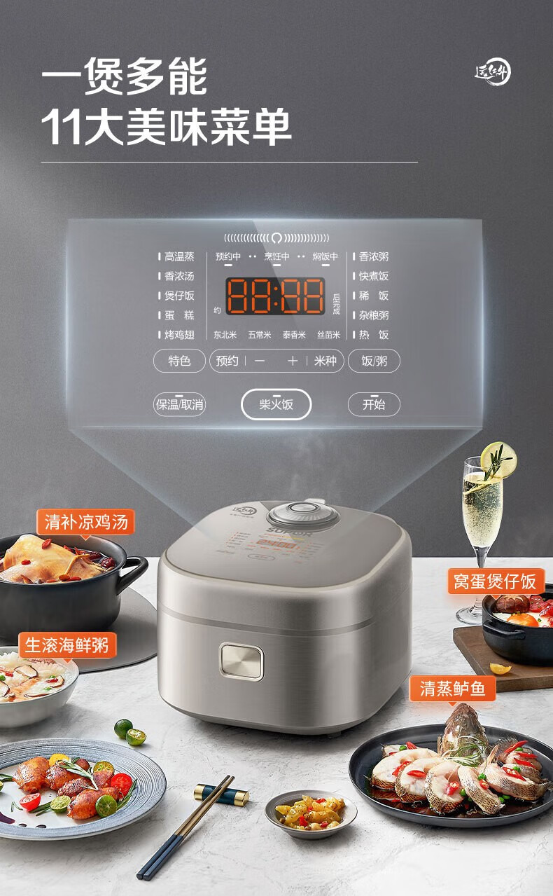 SUPOR Haushaltsreiskocher 4L Ferninfrarot durchdringende IH-Heizung Hochleistungs-Brennholz Reiskochen Brei Intelligente Reservierung Multifunktions-SF40HC0900 Smart-Touchscreen 4L