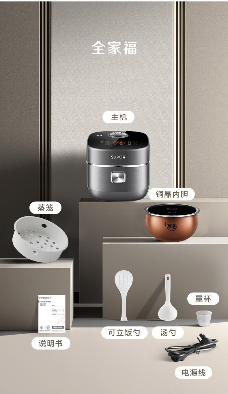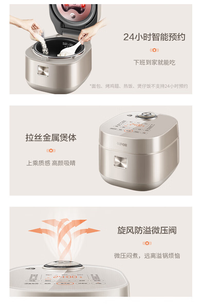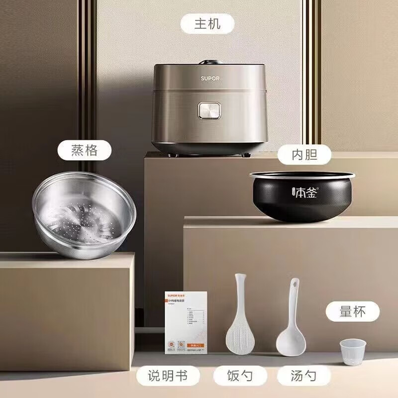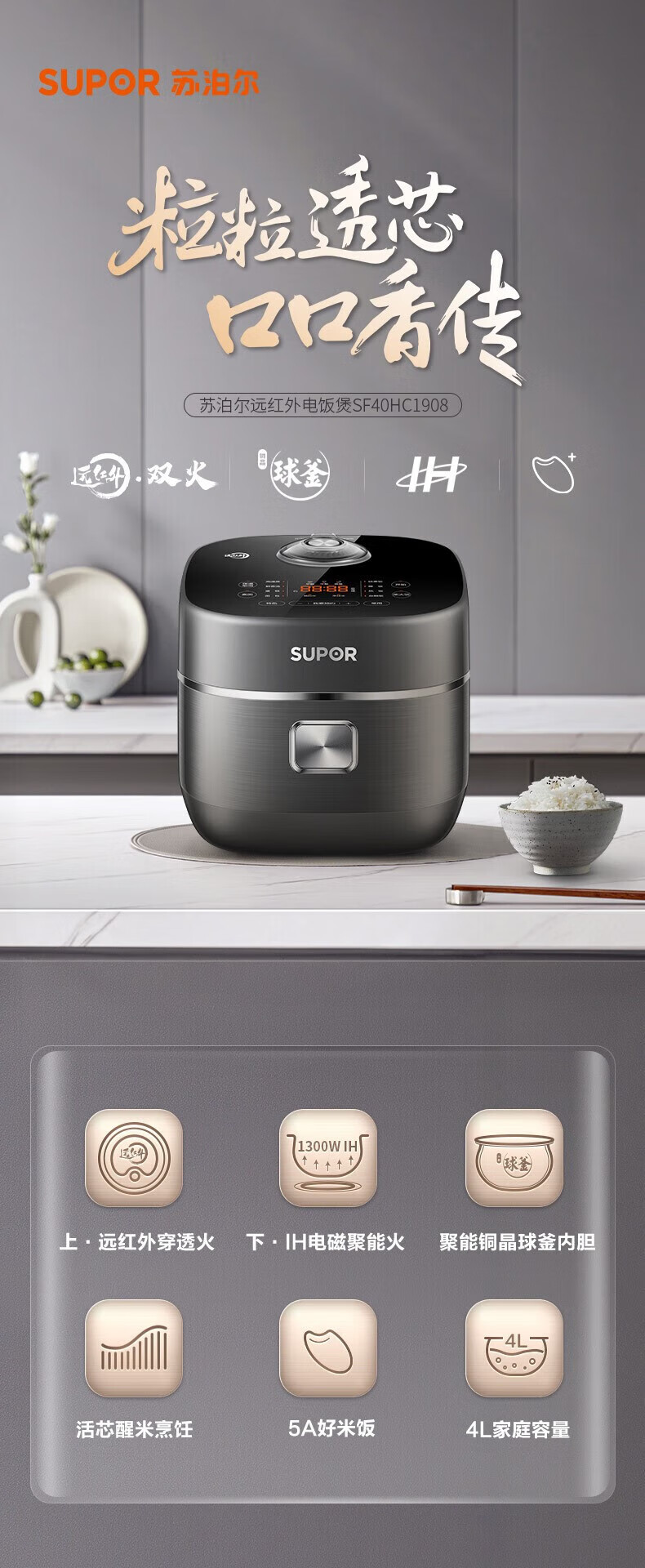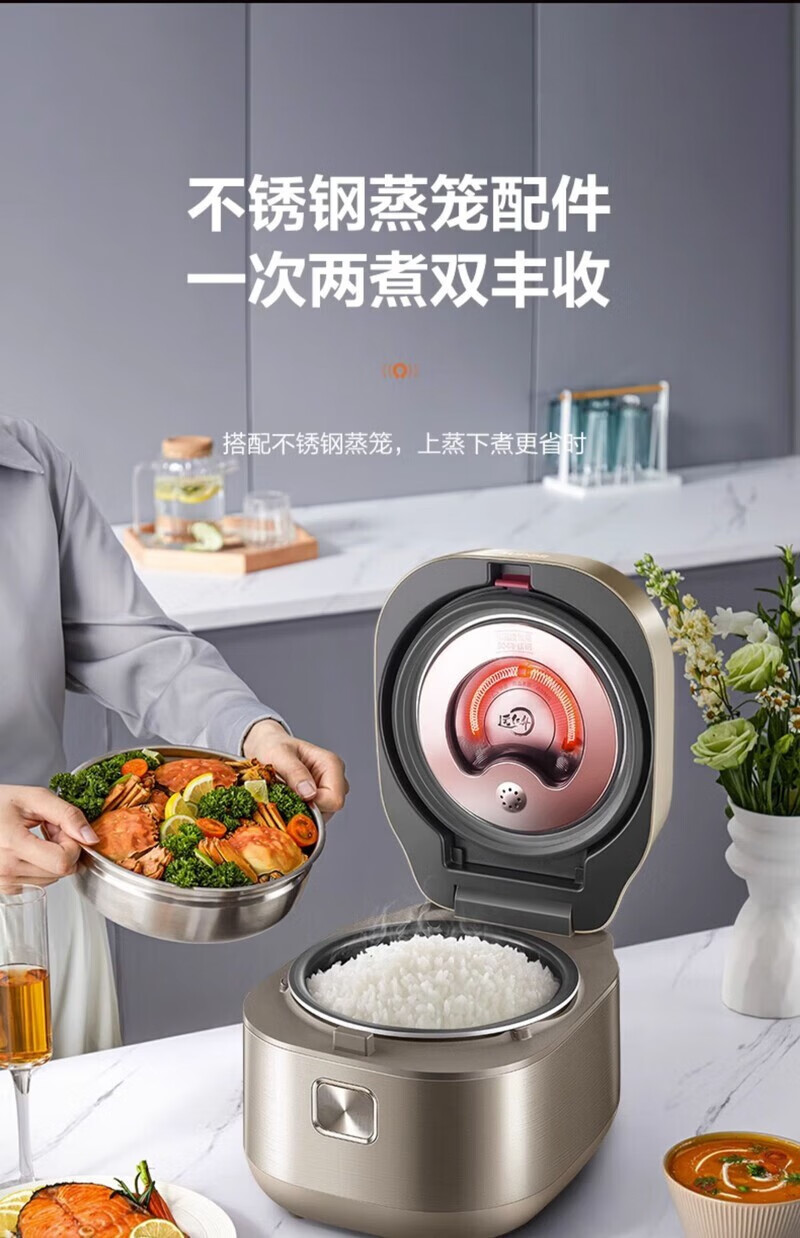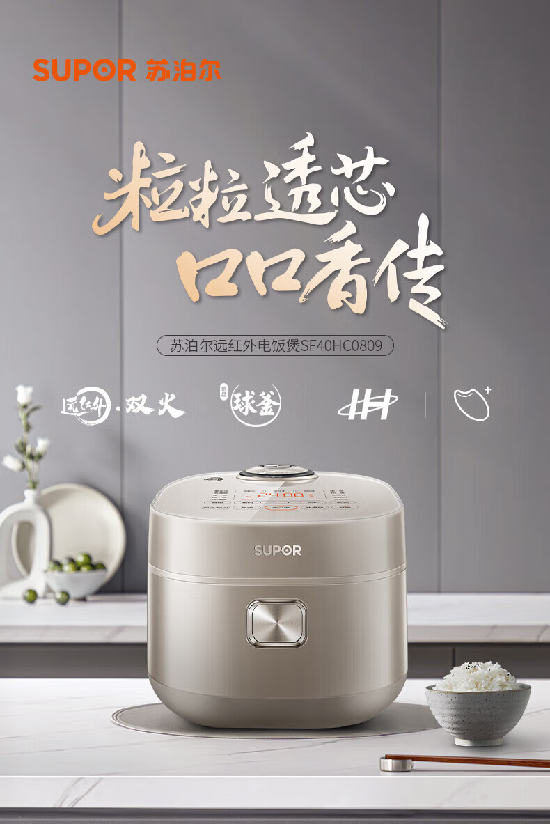 SUPOR Haushaltsreiskocher 4L Ferninfrarot durchdringende IH-Heizung Hochleistungs-Brennholz Reiskochen Brei Intelligente Reservierung Multifunktions-SF40HC0900 Smart-Touchscreen 4L