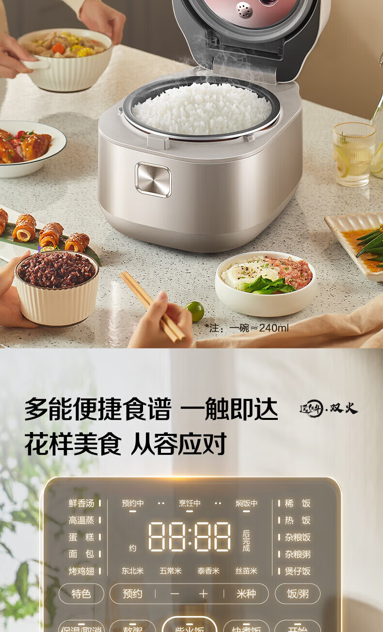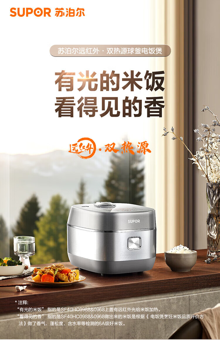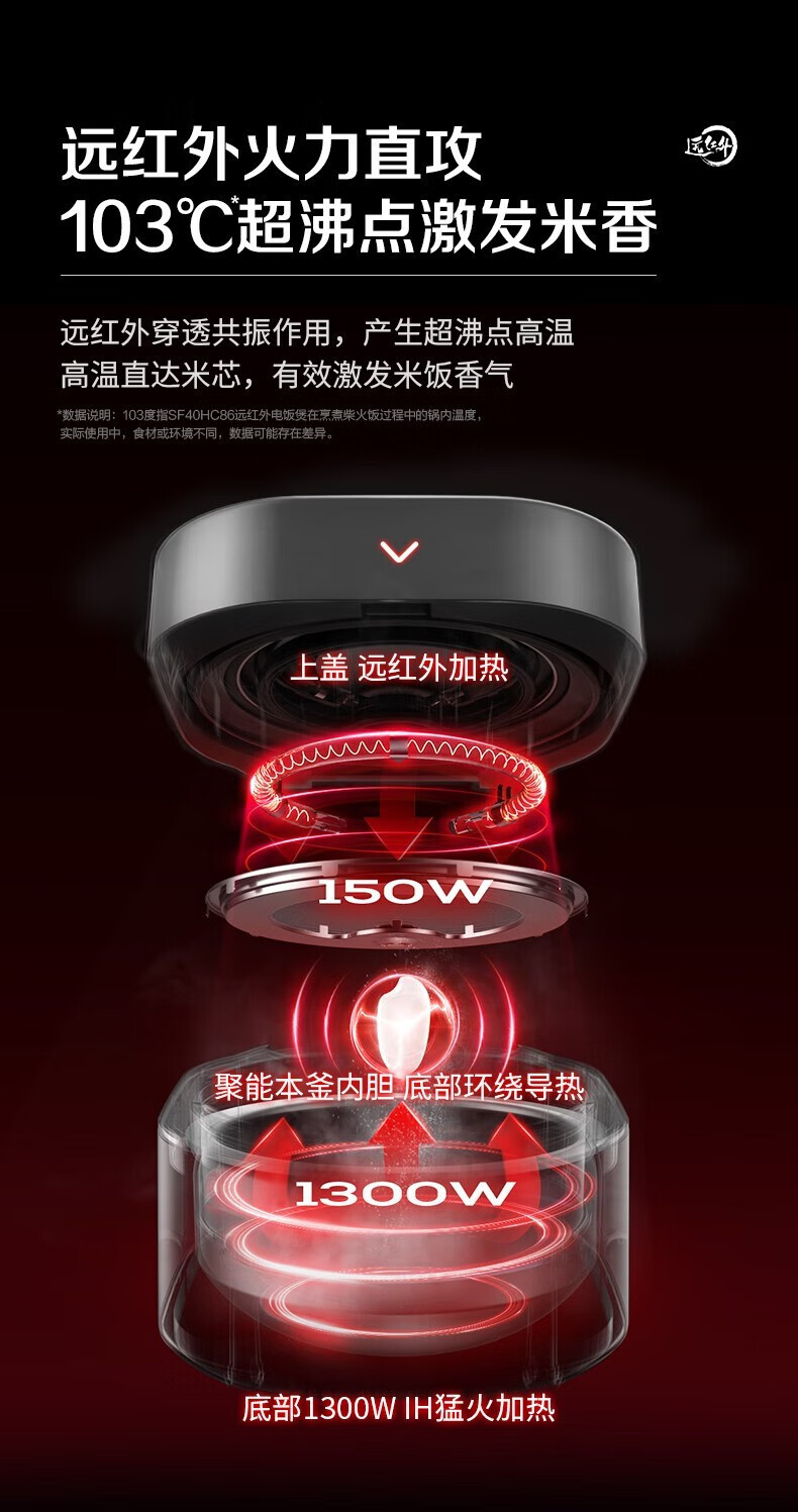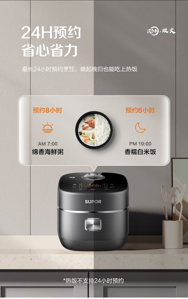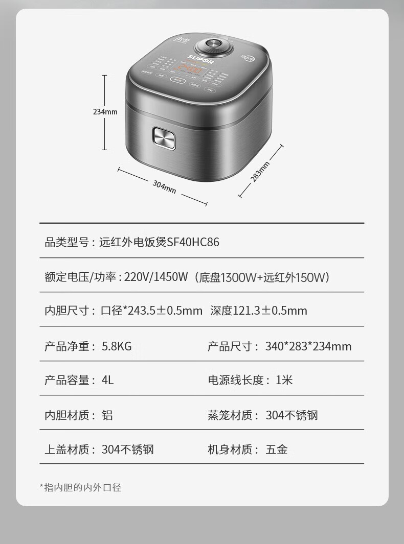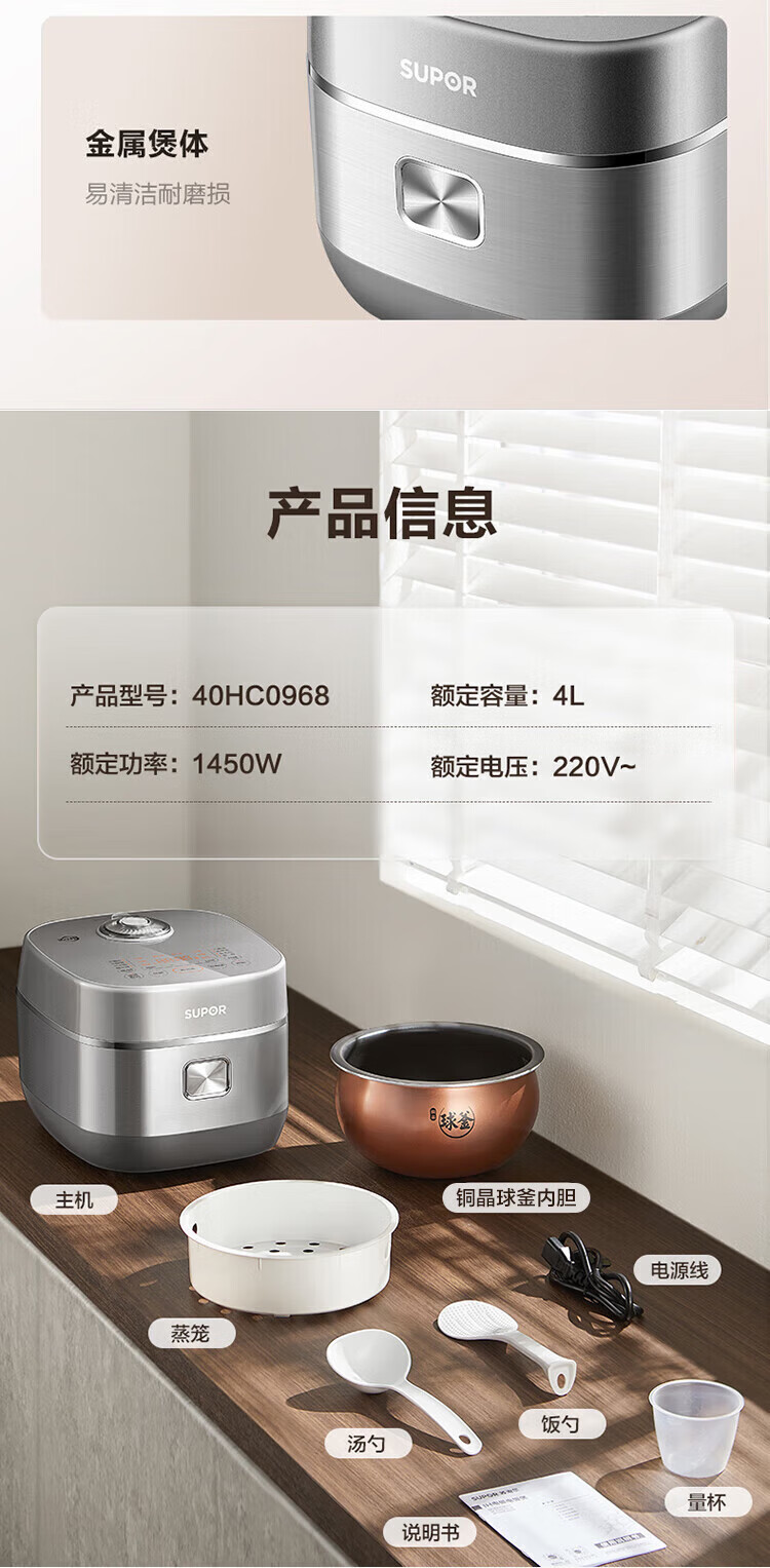 SUPOR Haushaltsreiskocher 4L Ferninfrarot durchdringende IH-Heizung Hochleistungs-Brennholz Reiskochen Brei Intelligente Reservierung Multifunktions-SF40HC0900 Smart-Touchscreen 4L