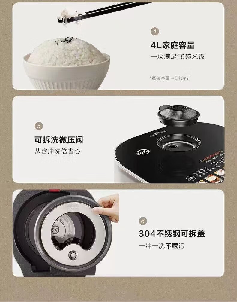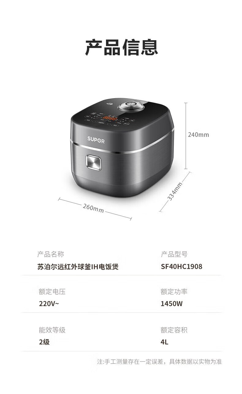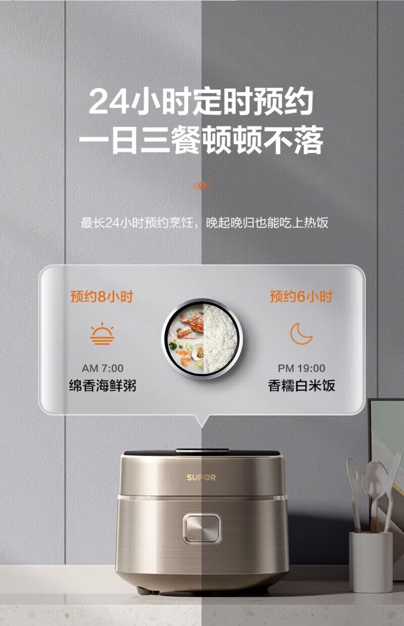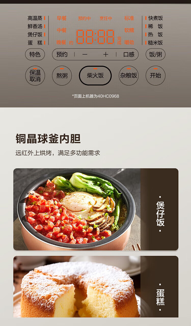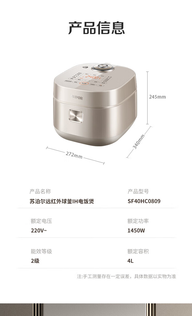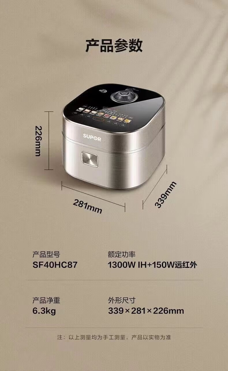 SUPOR Haushaltsreiskocher 4L Ferninfrarot durchdringende IH-Heizung Hochleistungs-Brennholz Reiskochen Brei Intelligente Reservierung Multifunktions-SF40HC0900 Smart-Touchscreen 4L