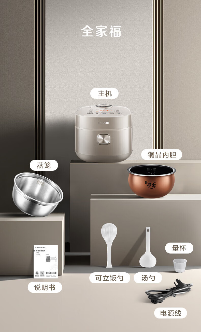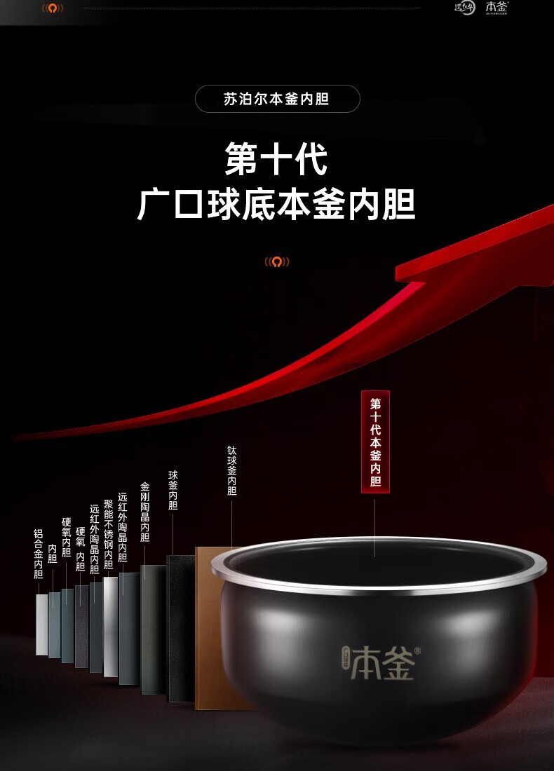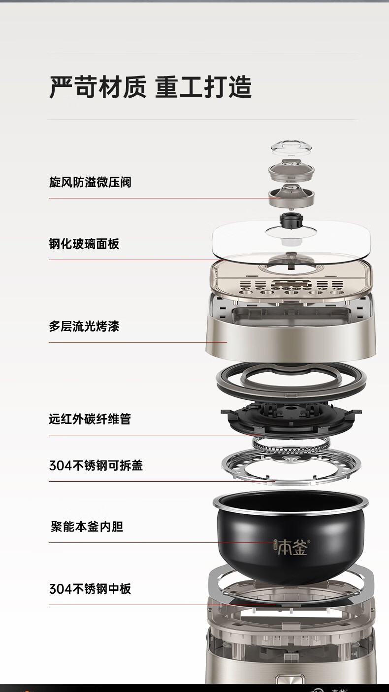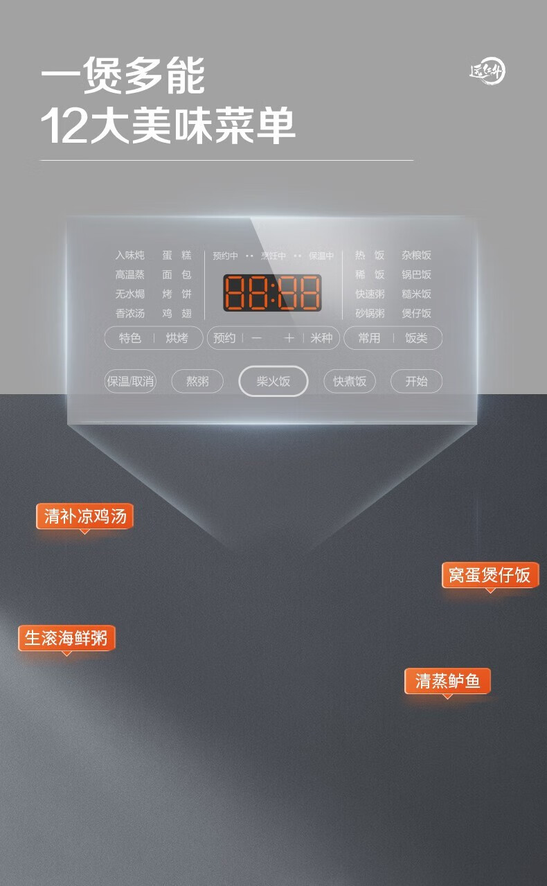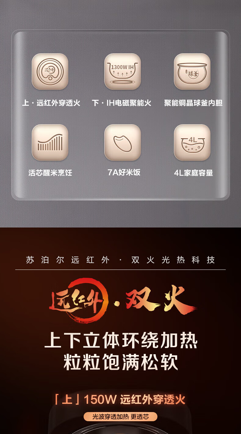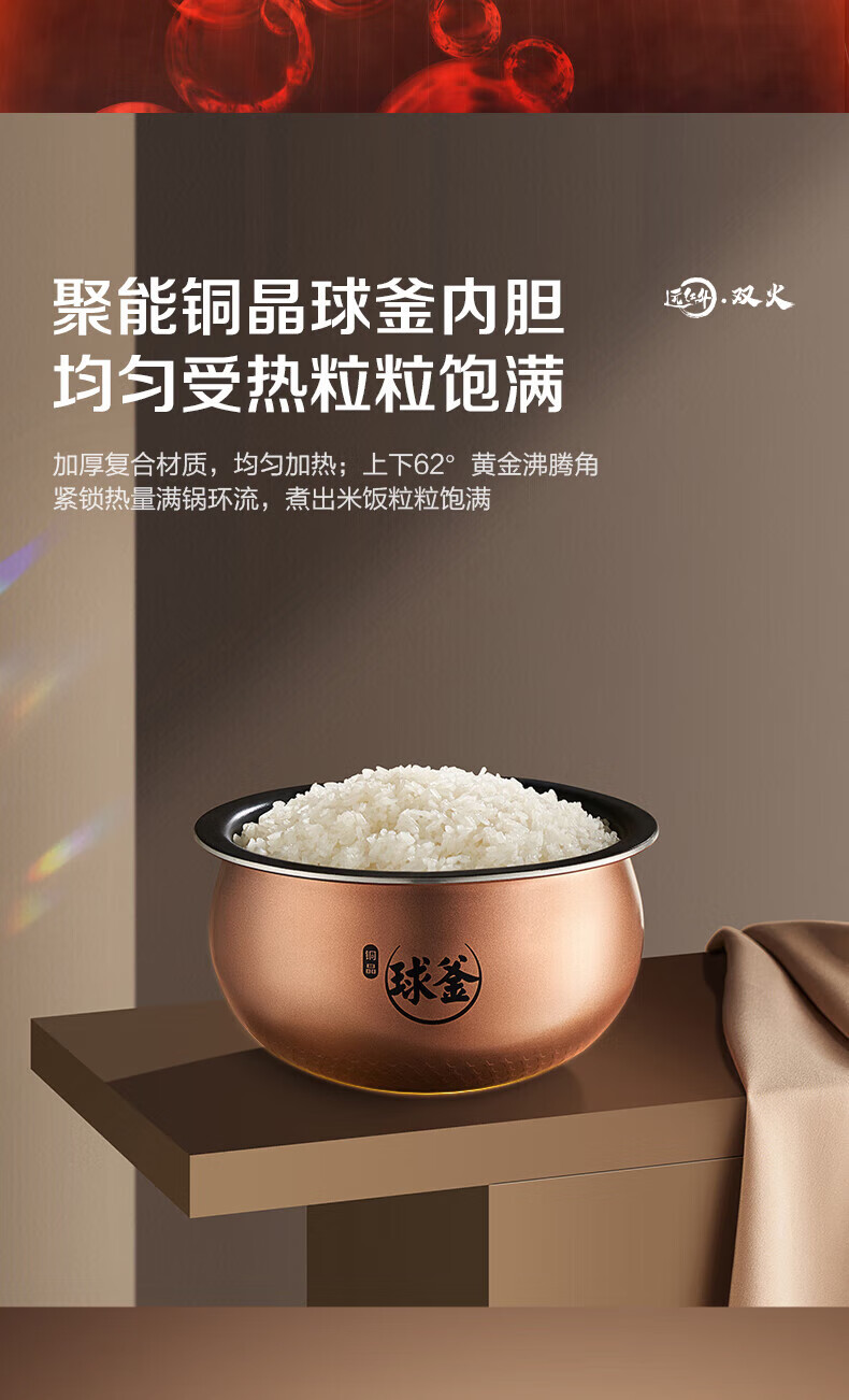 SUPOR Haushaltsreiskocher 4L Ferninfrarot durchdringende IH-Heizung Hochleistungs-Brennholz Reiskochen Brei Intelligente Reservierung Multifunktions-SF40HC0900 Smart-Touchscreen 4L