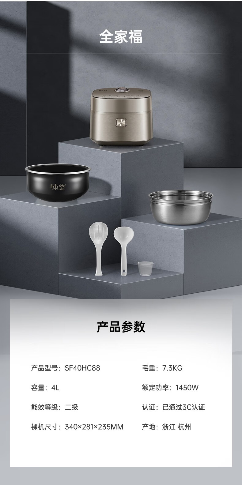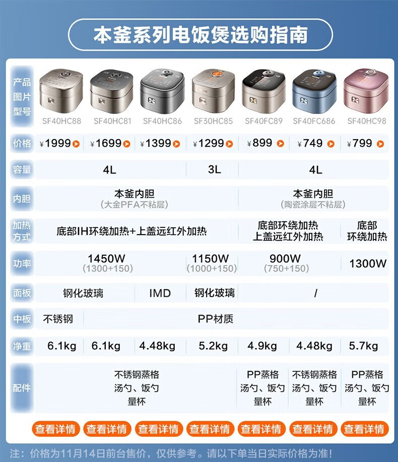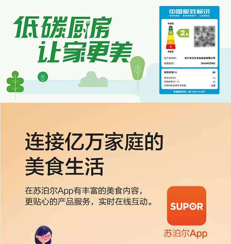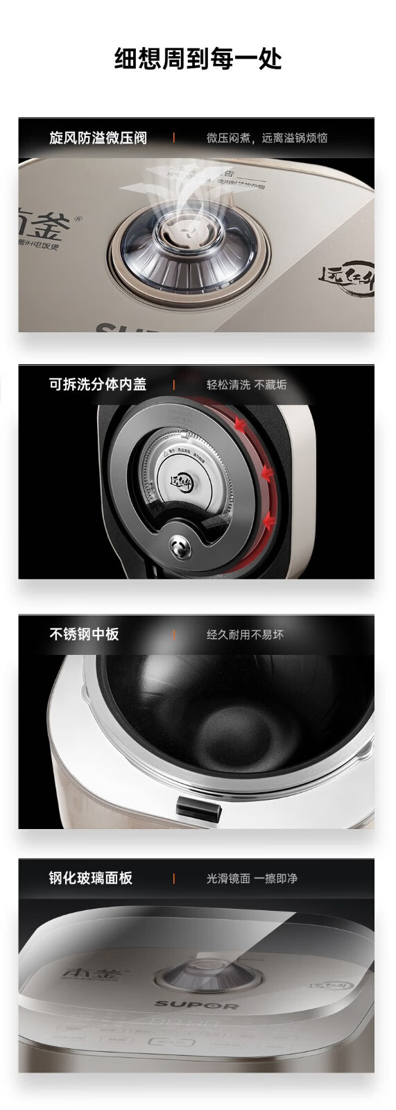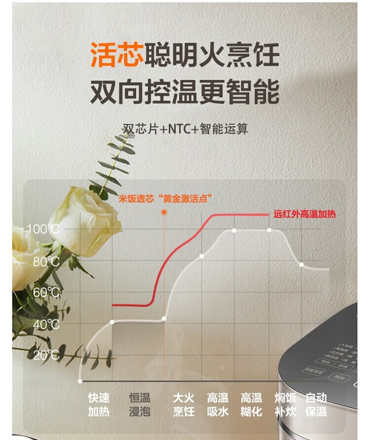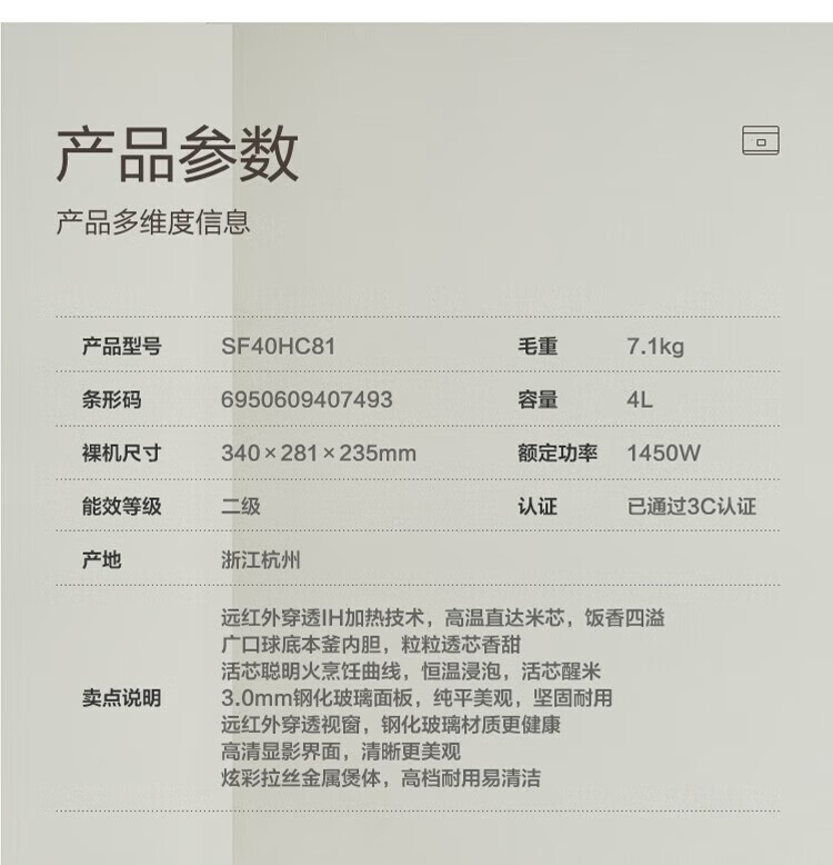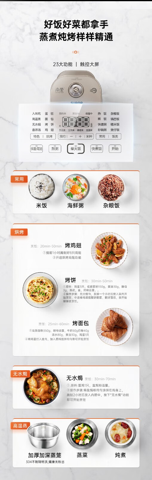 SUPOR Haushaltsreiskocher 4L Ferninfrarot durchdringende IH-Heizung Hochleistungs-Brennholz Reiskochen Brei Intelligente Reservierung Multifunktions-SF40HC0900 Smart-Touchscreen 4L