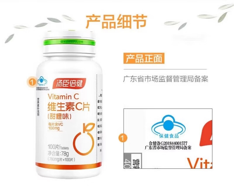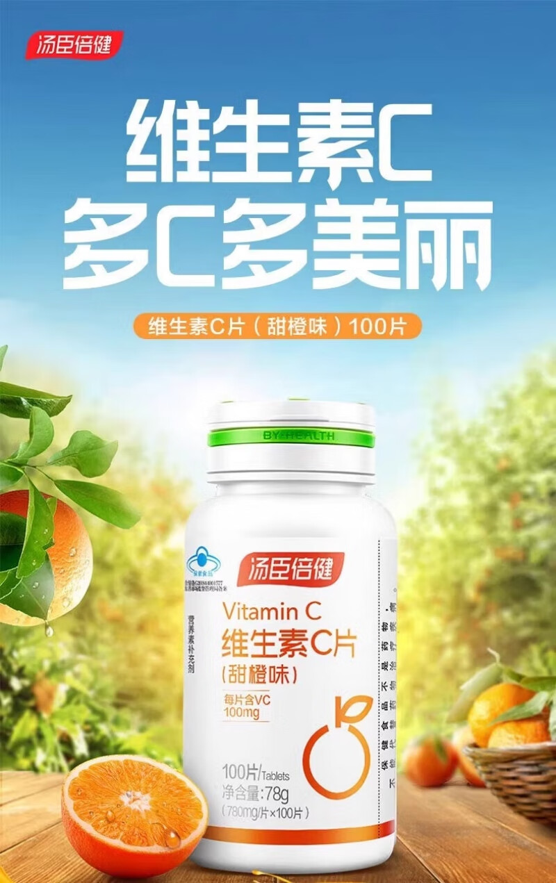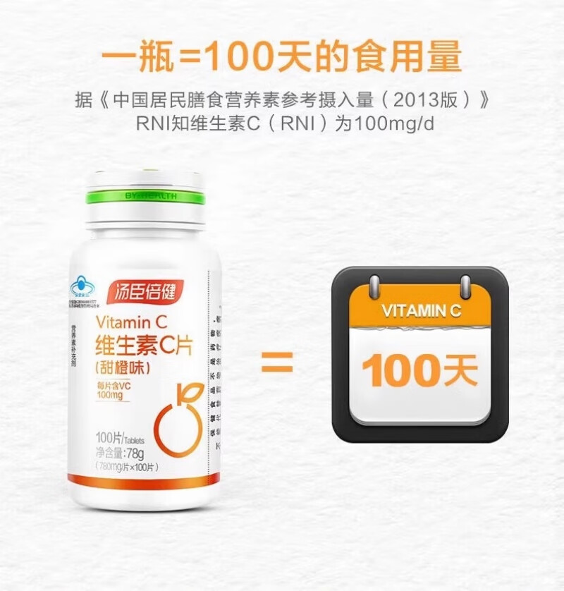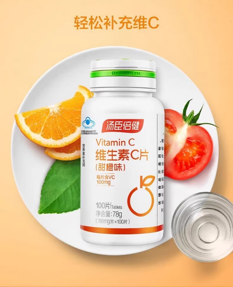 Tomson By-Health Comprimés de vitamine C (saveur d'orange douce) Supplément de vitamine C pour adolescents, adultes, hommes, femmes, infirmières enceintes, comprimés de vitamine C 100 comprimés + colostrum plus comprimés à croquer de calcium 60 comprimés*2