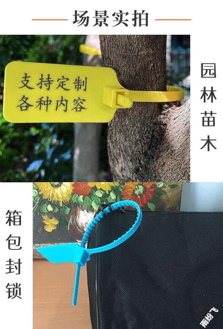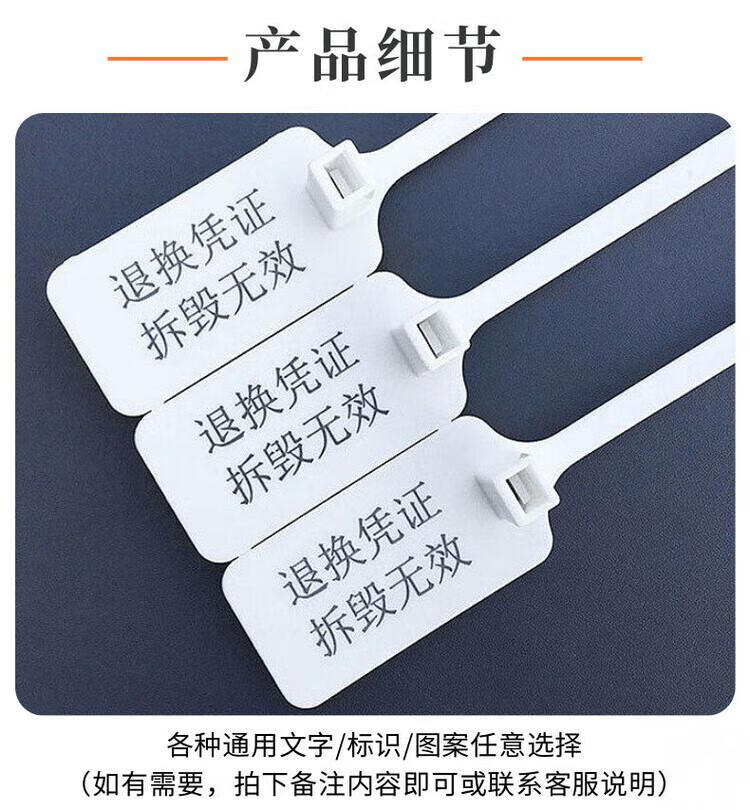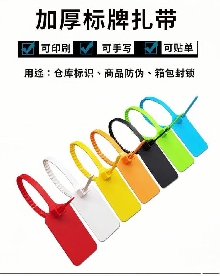 Label cable tie, disposable plastic seal, anti-theft buckle, logistics tag, cable identification plate, customized color, 100 pieces of customized content, contact customer service (2 markers included)