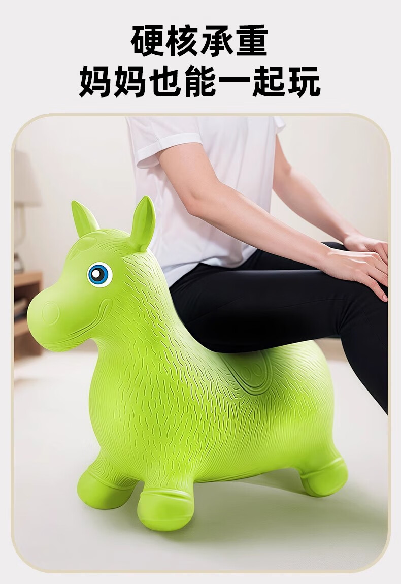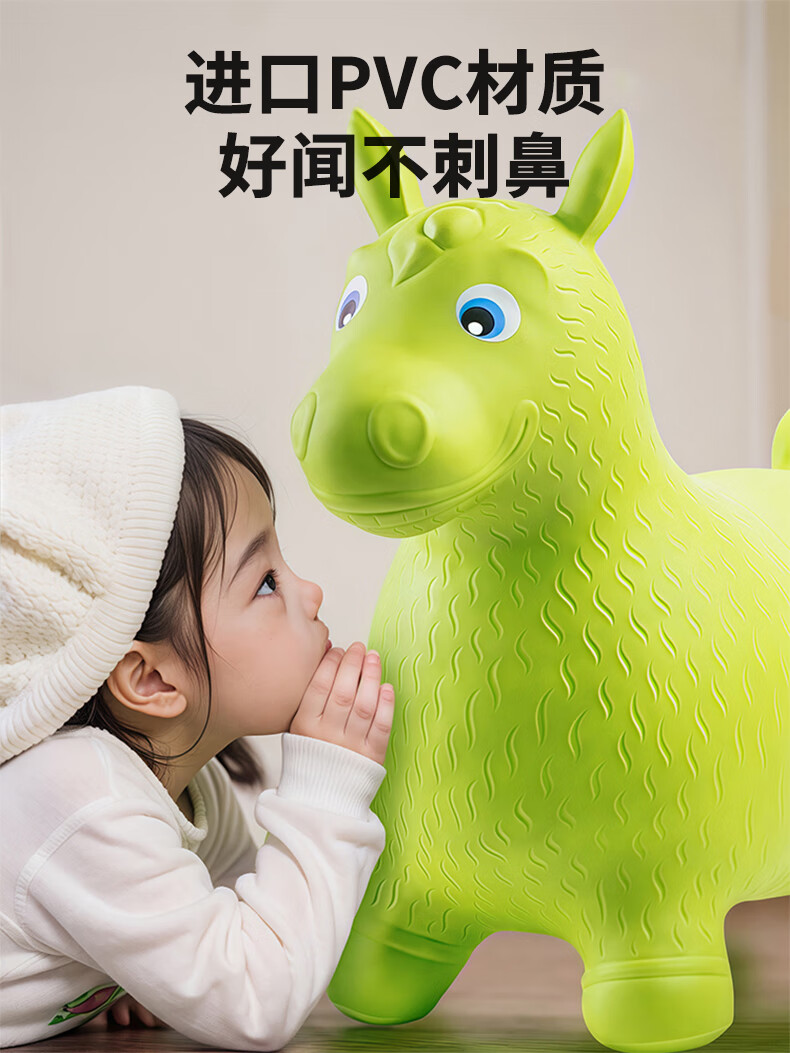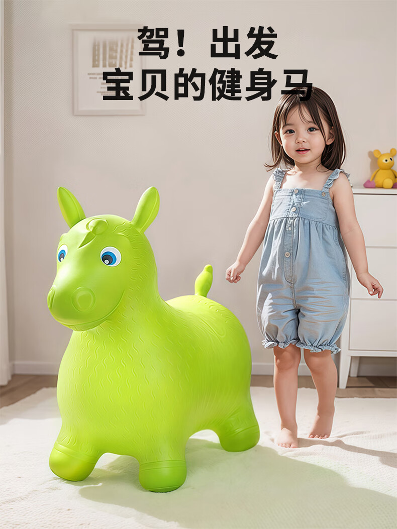 跳跳马儿童玩具充气马宝宝加大加厚防摔婴儿坐骑摇摇马跳跳鹿新款 跳跳马-精灵绿【送充气泵】加厚防侧翻