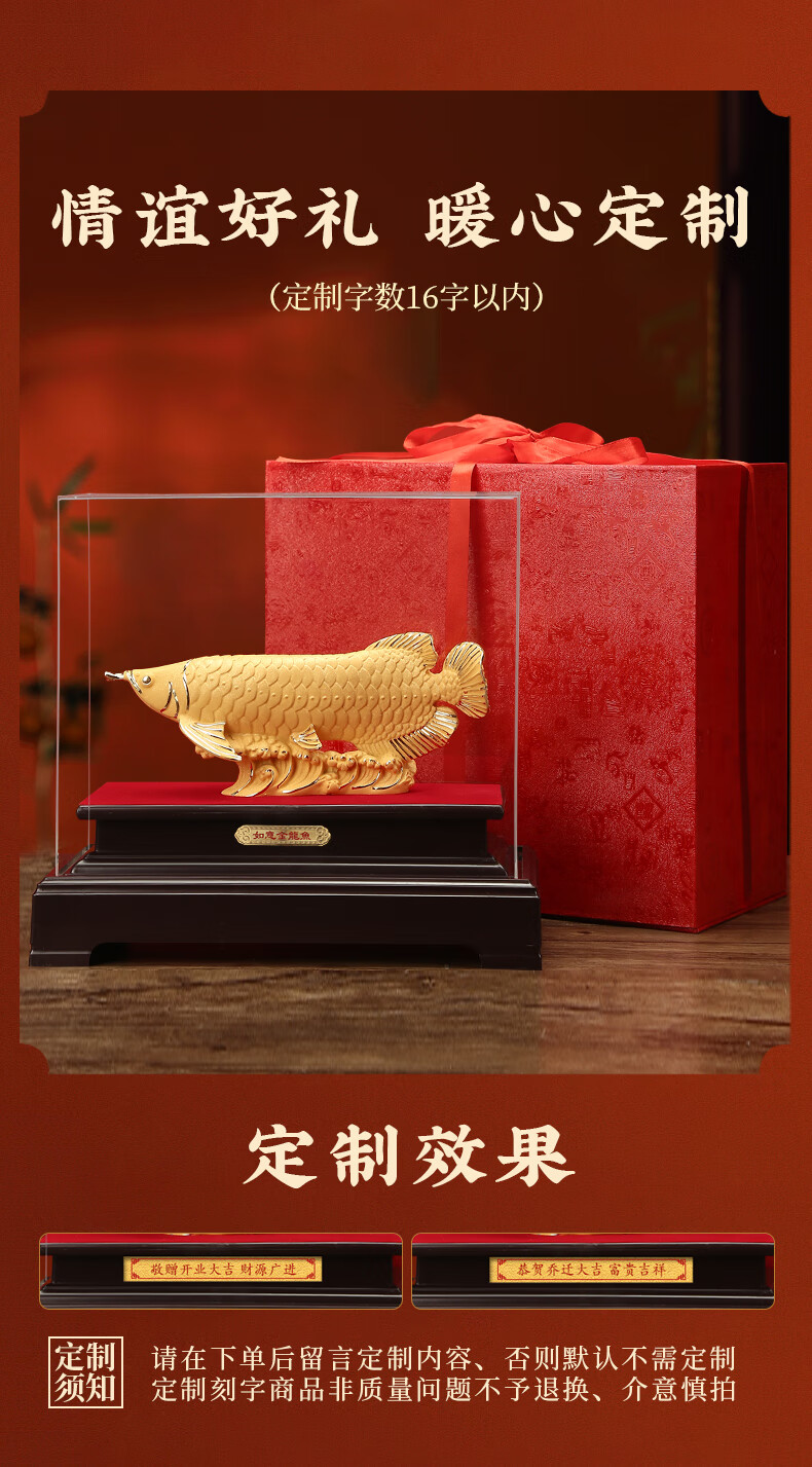 Jinshuitang Velvet Sand Lucky Arowana Ornaments Opening Ornaments Housewarming Gifts High-end Gifts Living Room Office Ornaments Customized Blessings Large Arowana Ornaments