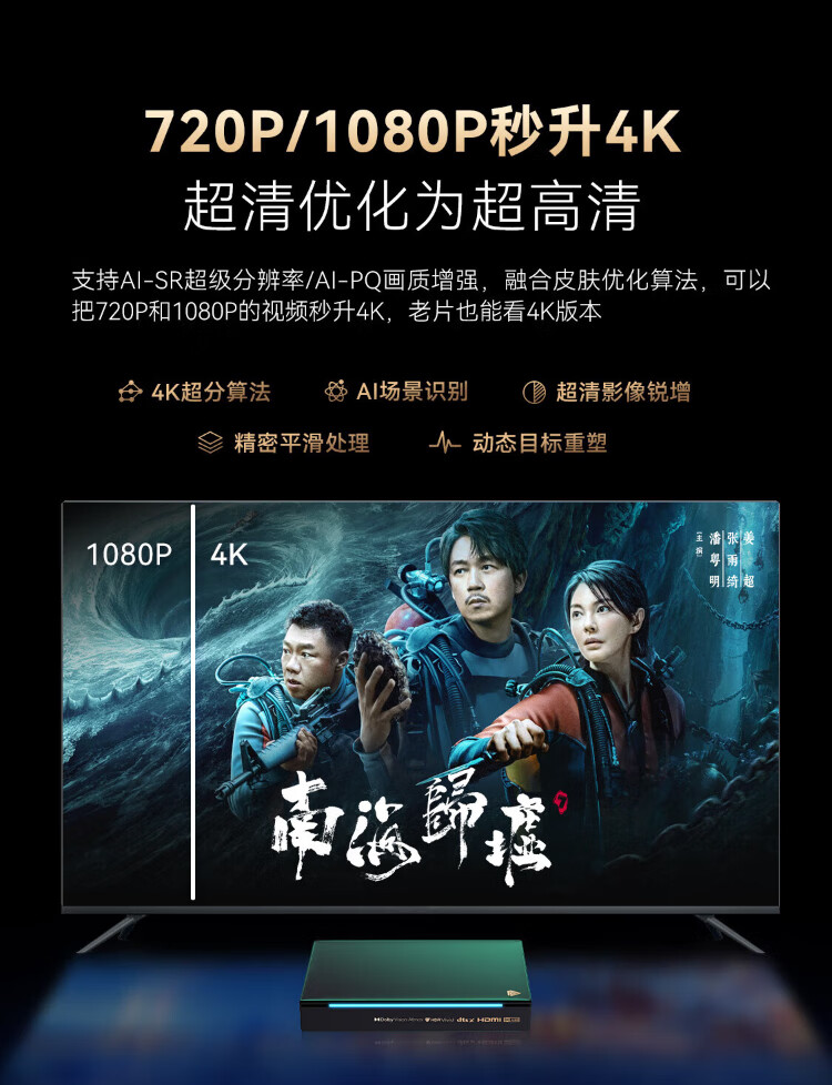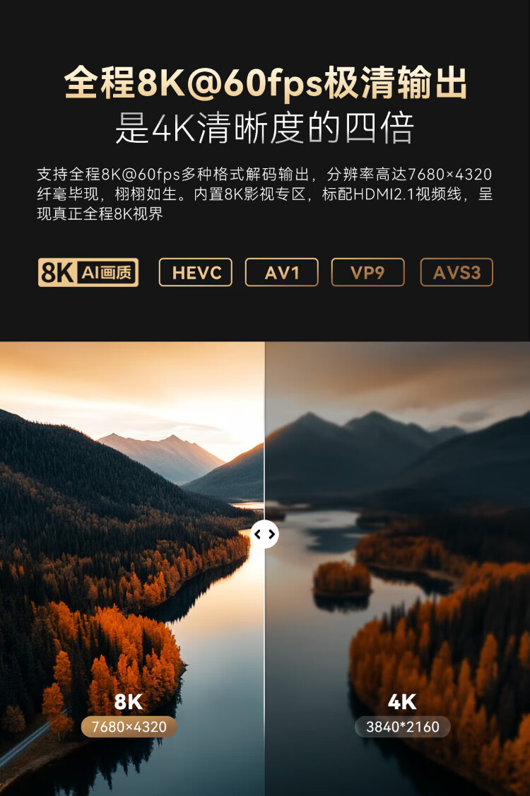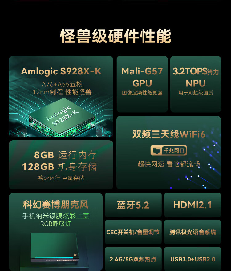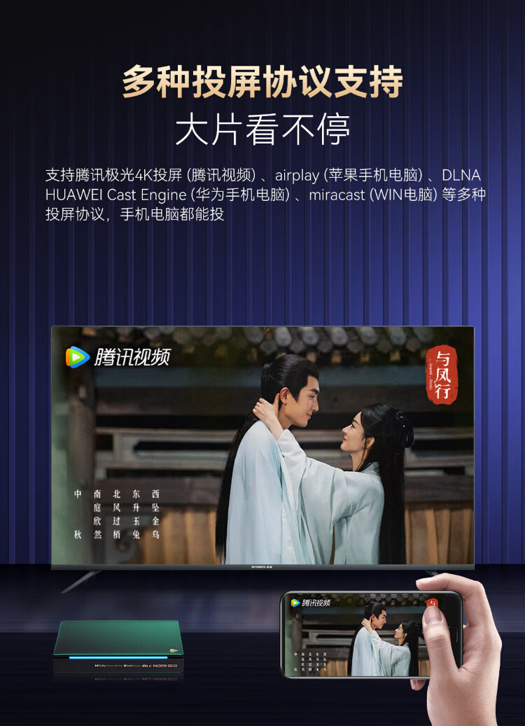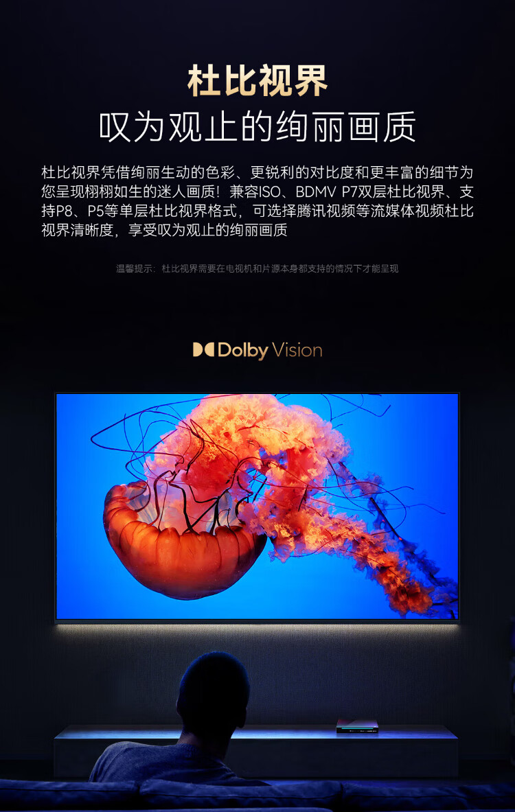 腾讯极光盒子6Pro 全程8K电视盒子 8+128G电视网络机顶盒 杜比视界蓝光播放器 无损音乐 DTS高清蓝光播放机 极光6Pro(全程8K/杜比视界/DST:X)