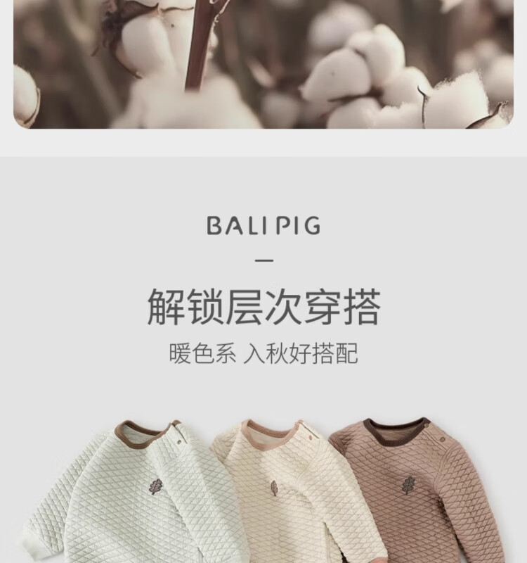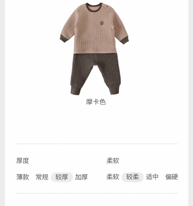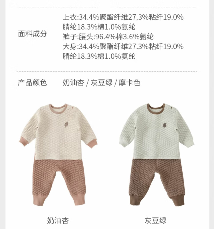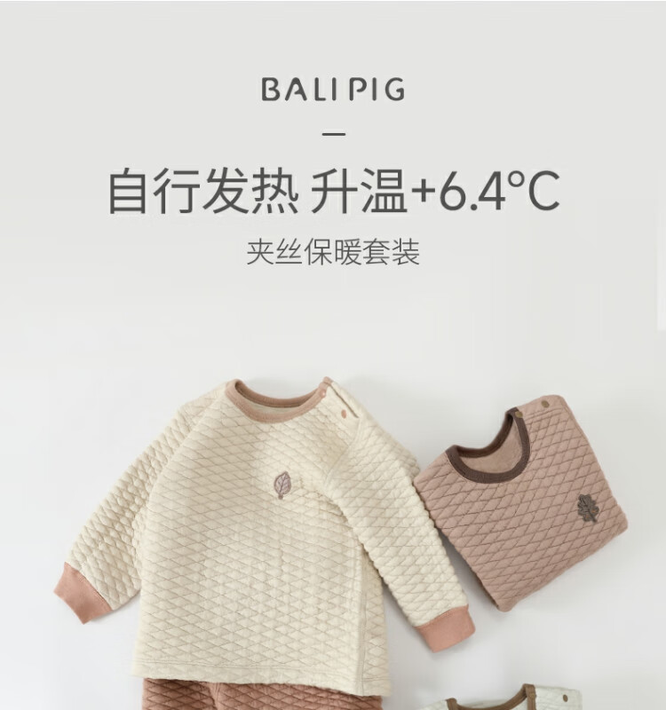 Bali Piggy Baby-Unterwäsche-Set, Winter, gepolstert, Jungen, zweiteilige Baby-Winterkleidung, verdickt, Mokka, Farbe 80