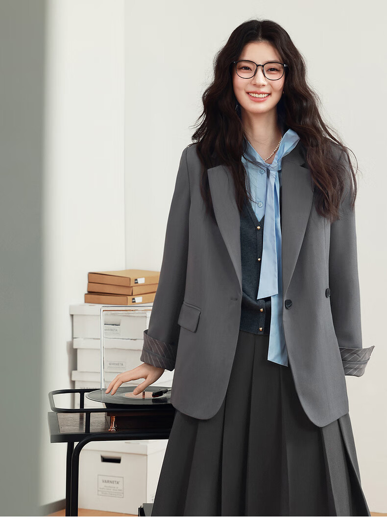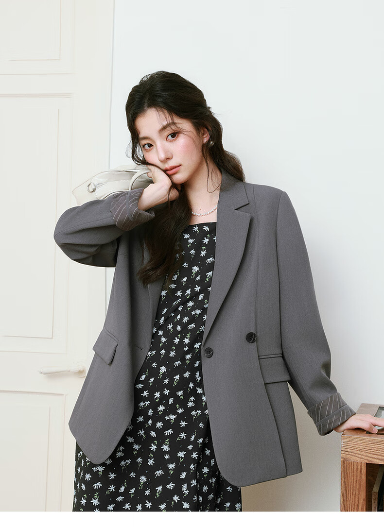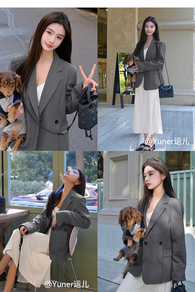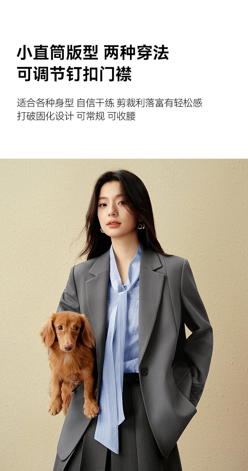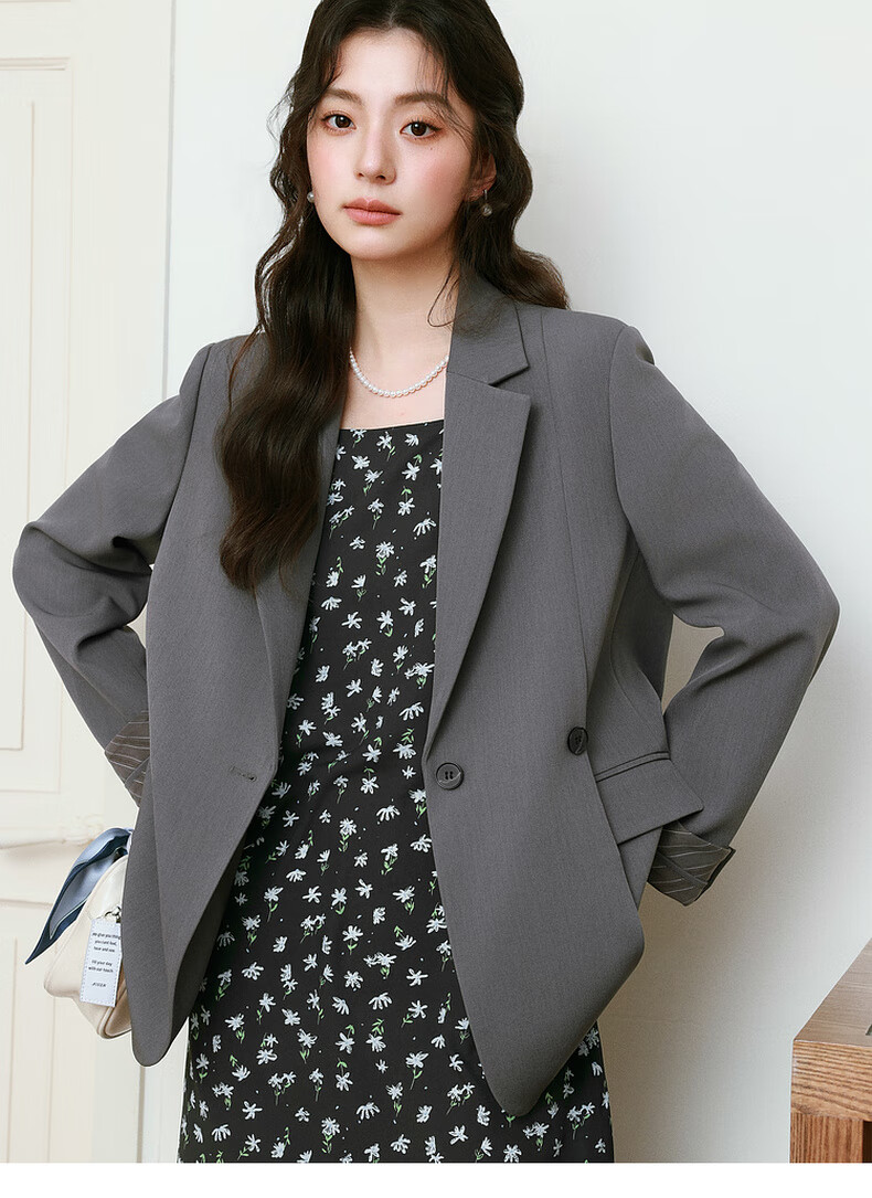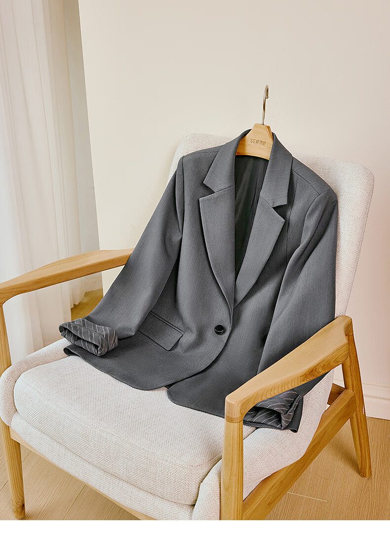 诗凡黎高级感西装外套2025年春新款轻职场设计通勤气质短款西服 沉檀灰 S