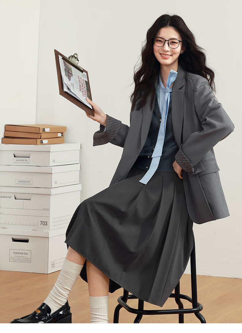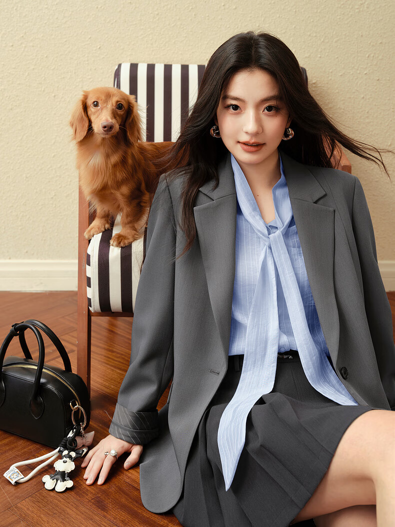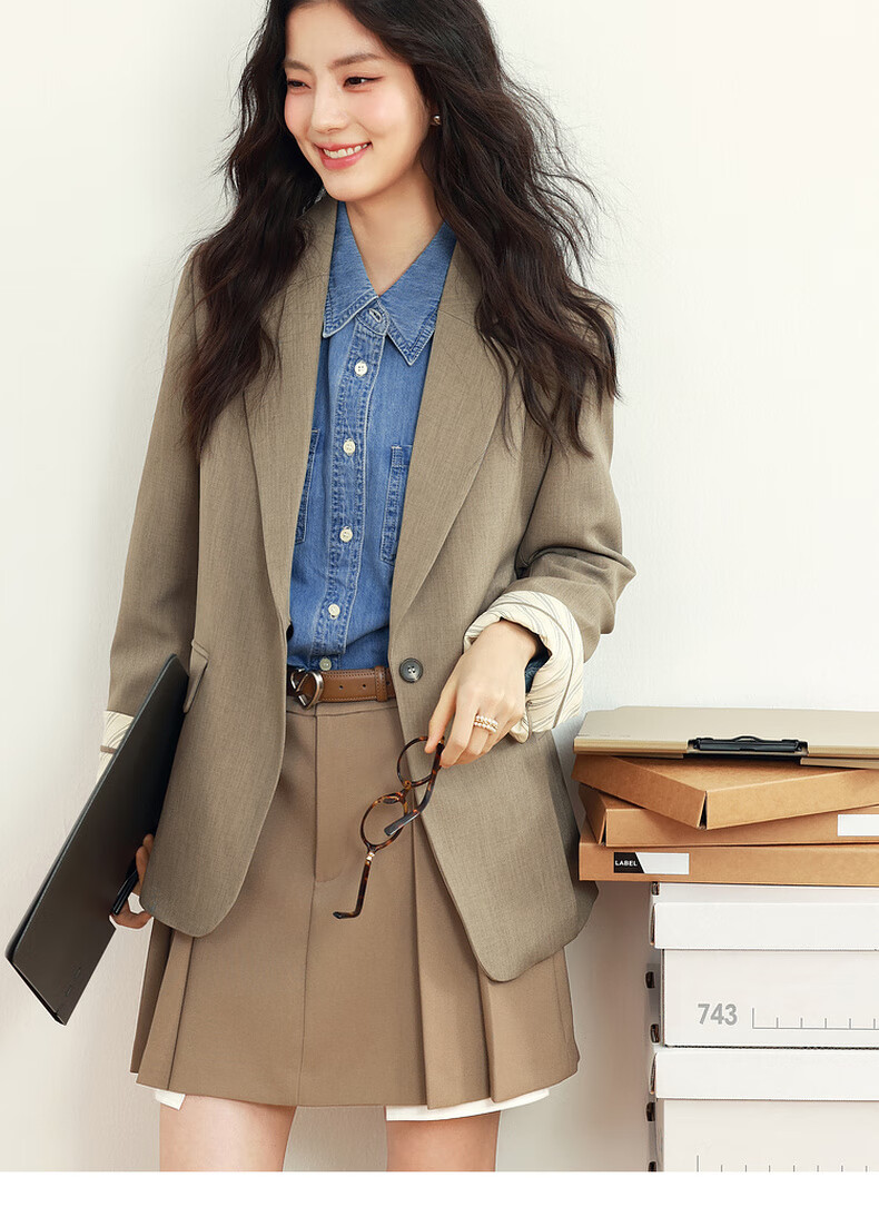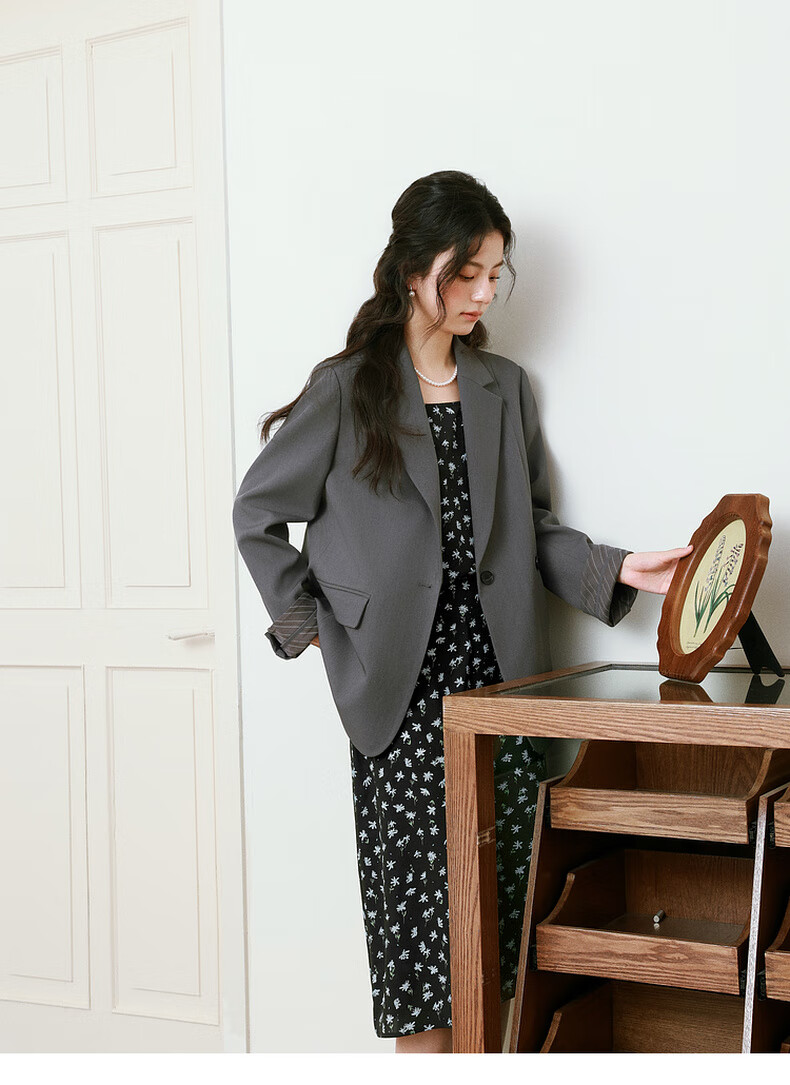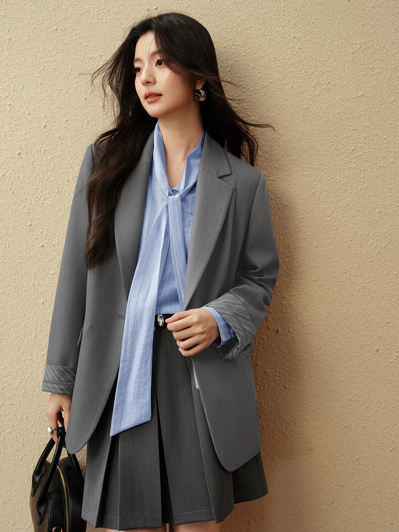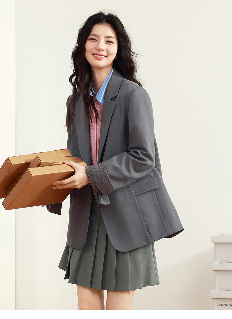 诗凡黎高级感西装外套2025年春新款轻职场设计通勤气质短款西服 沉檀灰 S
