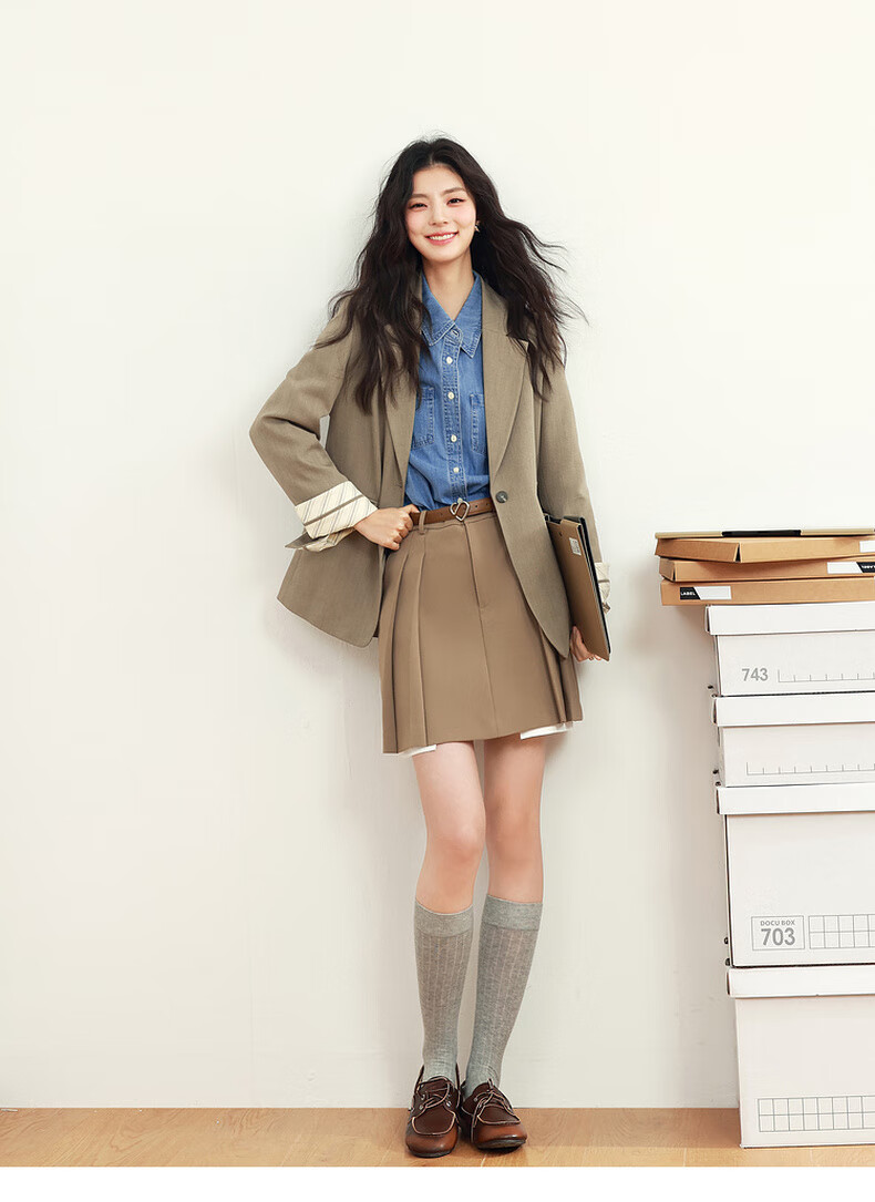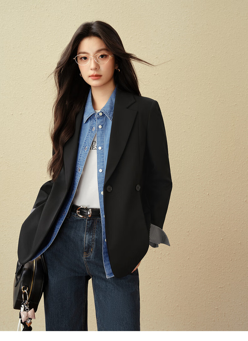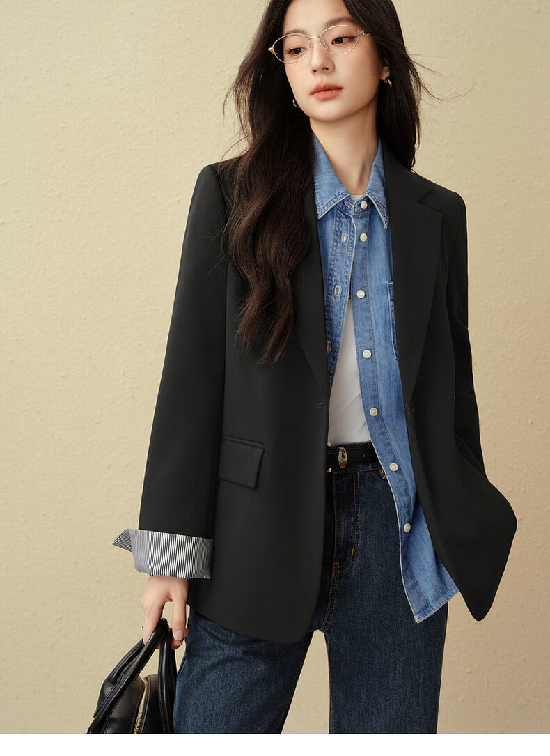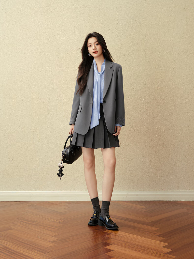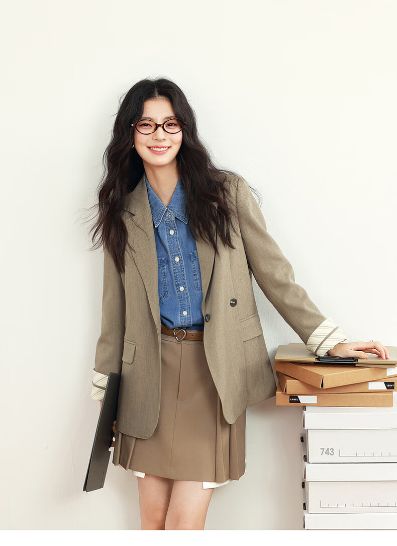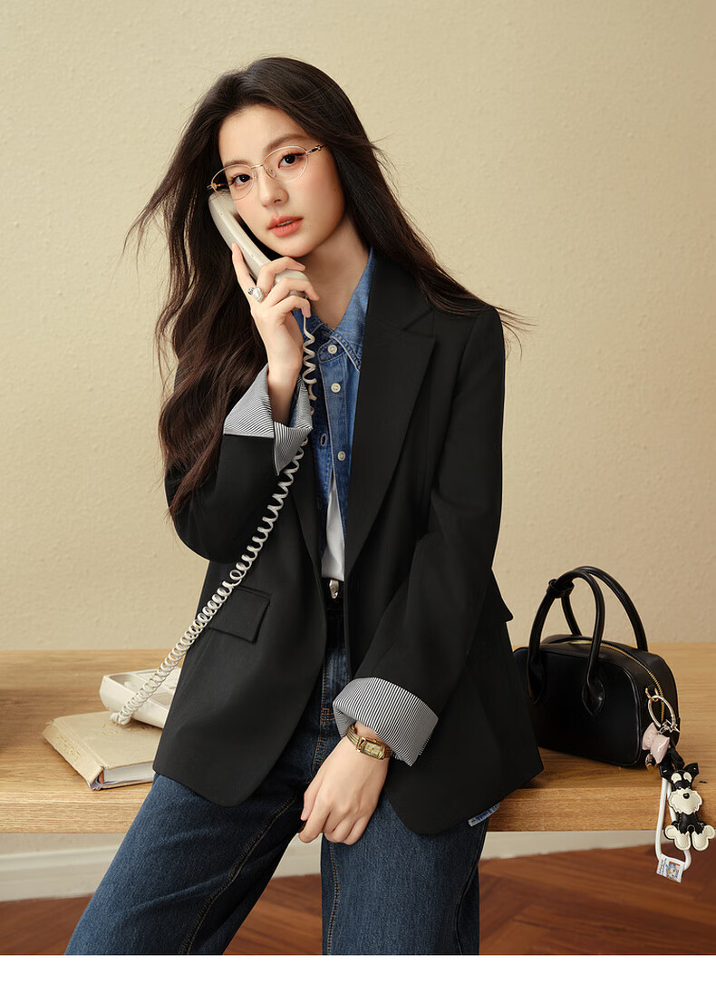 诗凡黎高级感西装外套2025年春新款轻职场设计通勤气质短款西服 沉檀灰 S