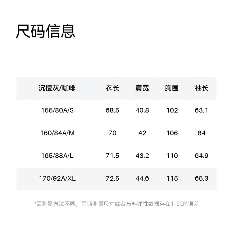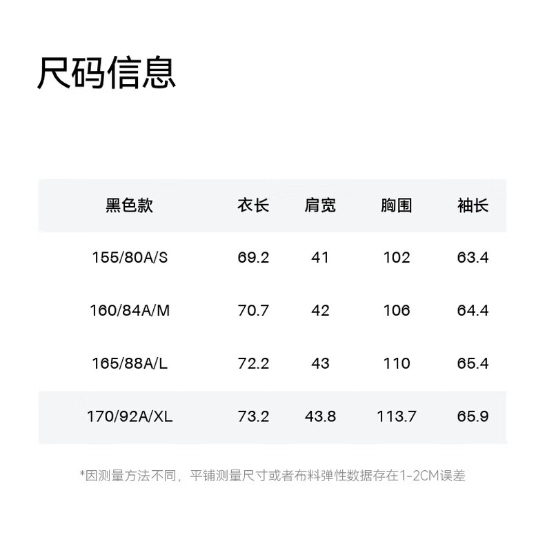 China (cm) 160-165/84-86 165-170 / 88-90 167-172 / 92-96 168-173 / 98-102 170-176 / 106-110