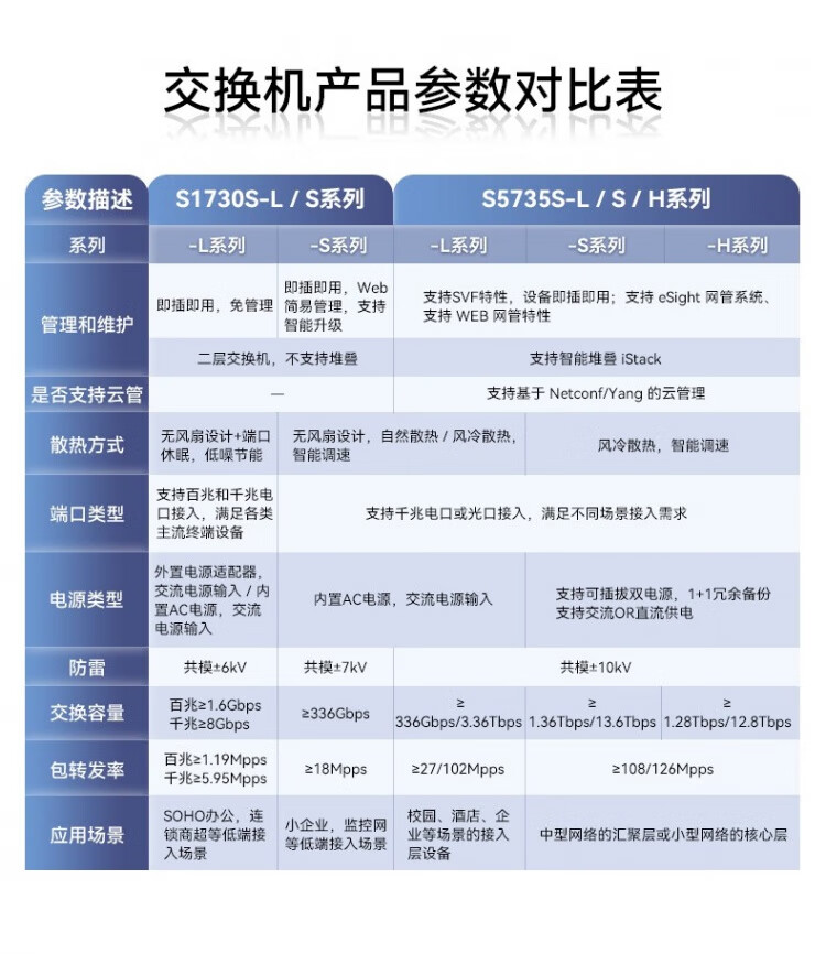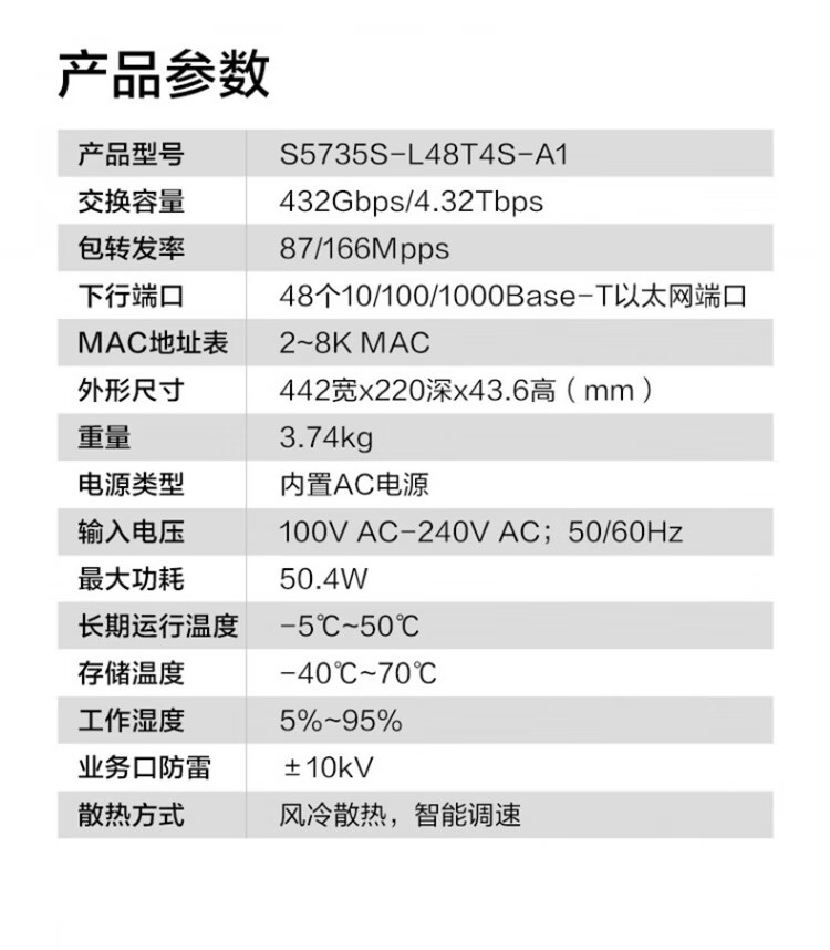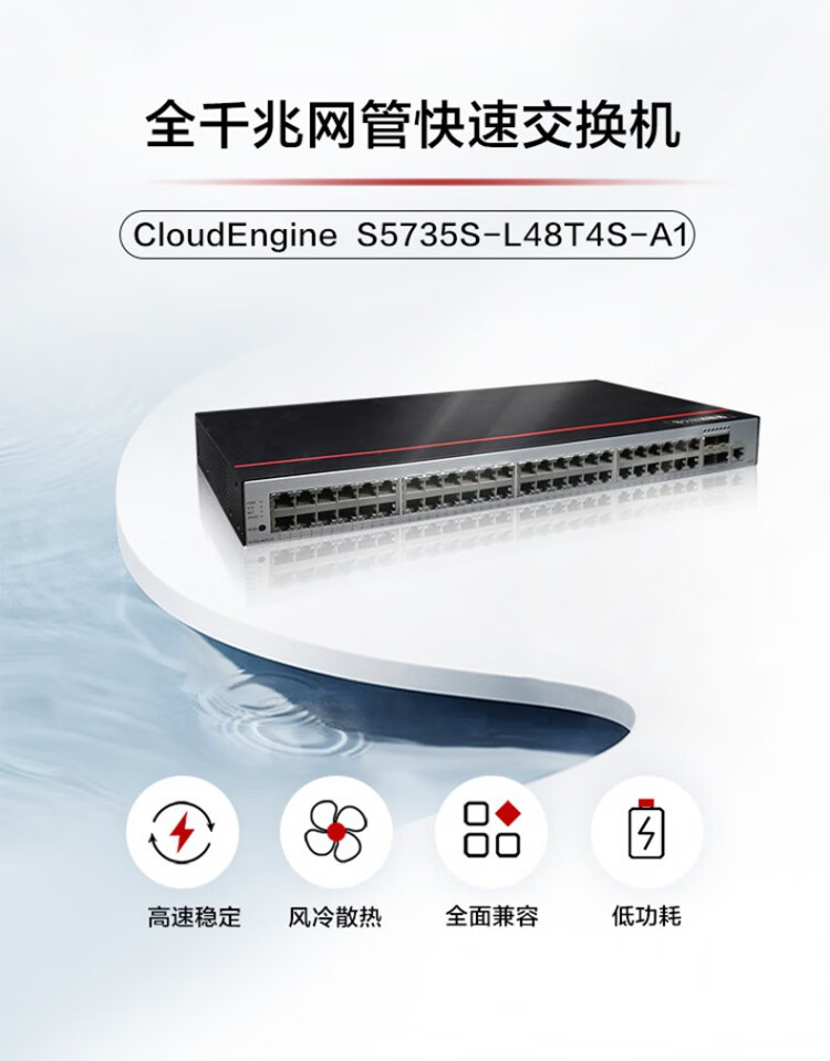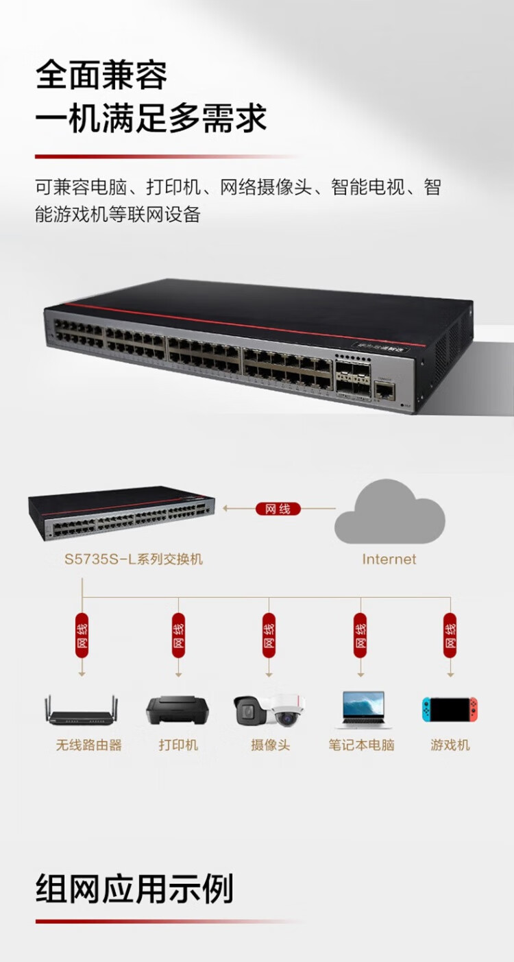 华为数通智选8口24口48口千兆企业级三层网管交换机以太网络交换器集线器 S5735S-L48T4X-A1 48口千兆 商用办公网络汇聚接入分流器安防监控网线分线器