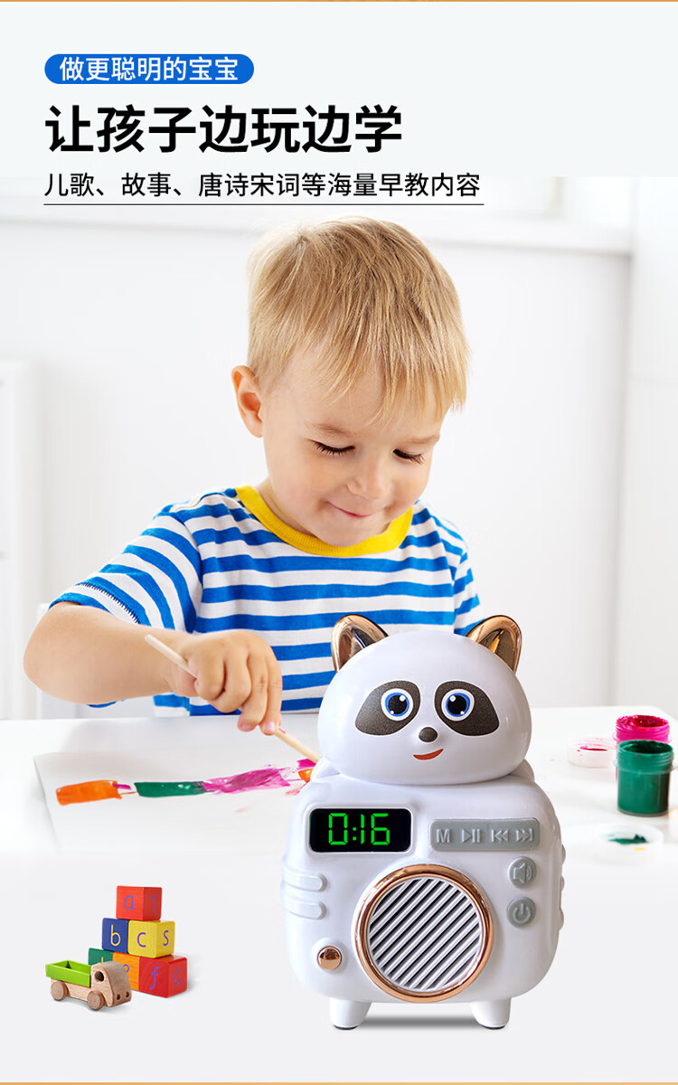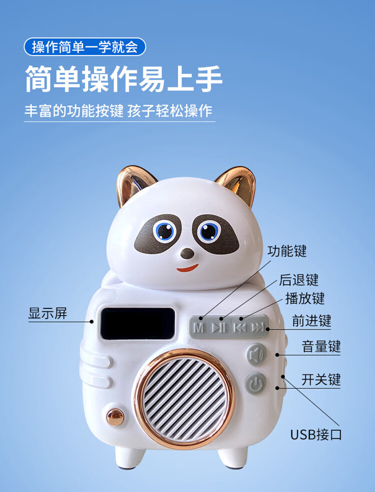 宝宝小熊故事机儿童早教机益智绕口令唐诗宋词睡前陪伴童话故事成语故事听力英文字母歌曲音乐音频 故事机-高配2000多种内容