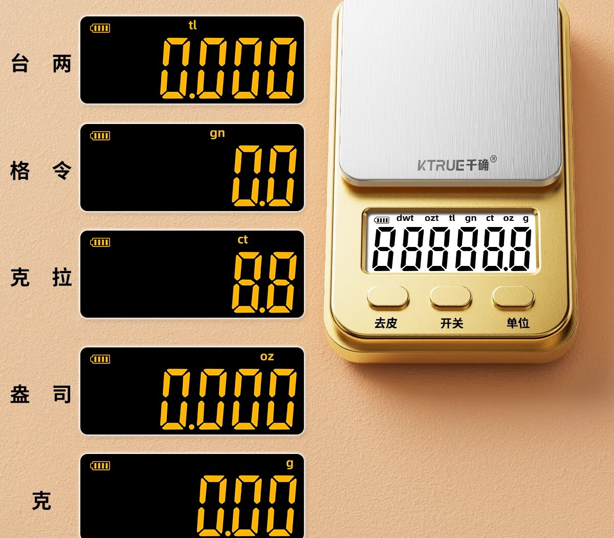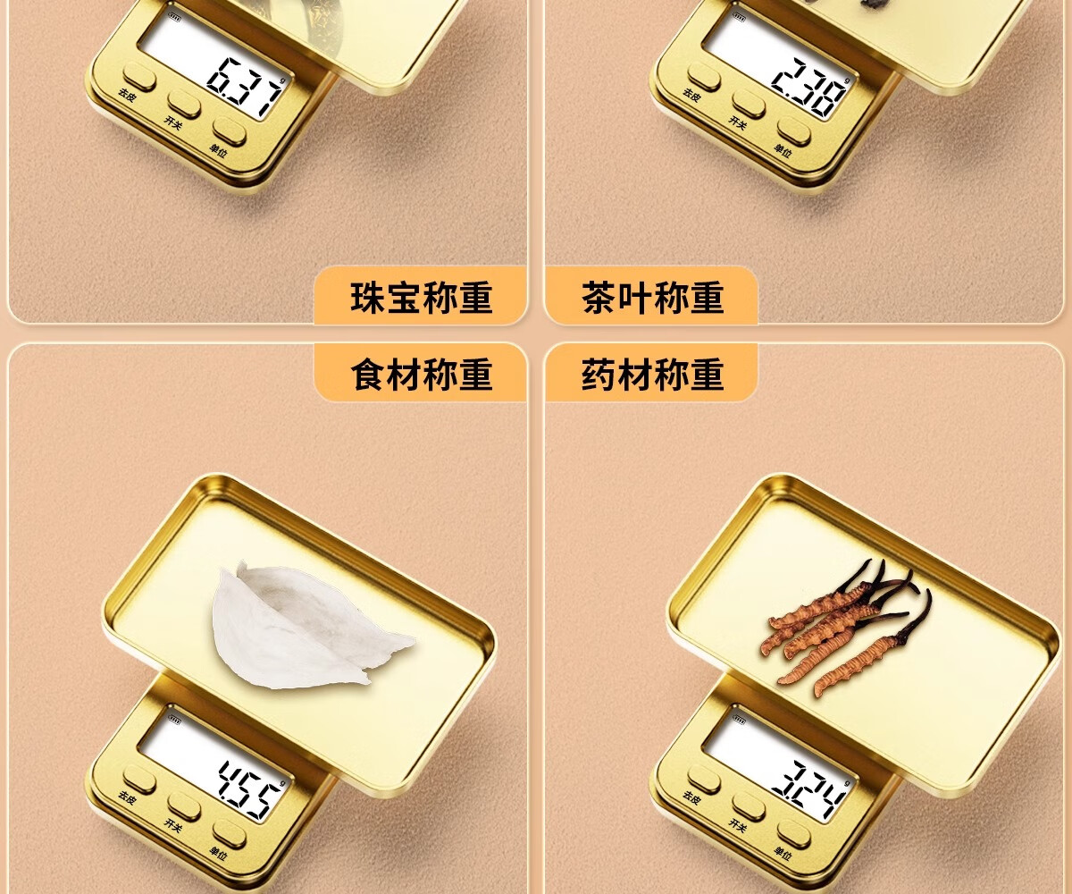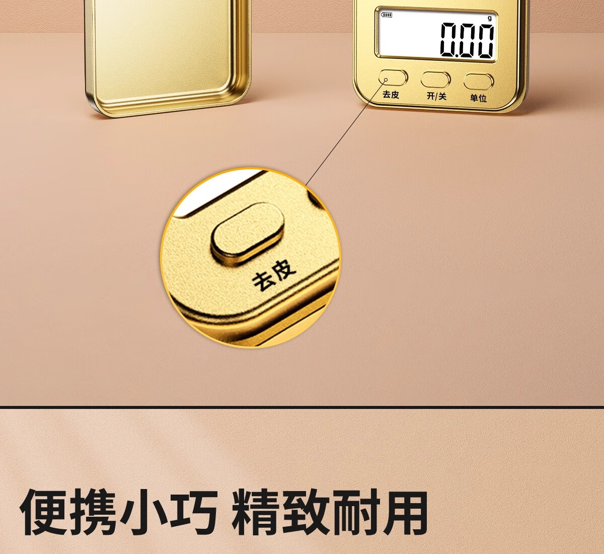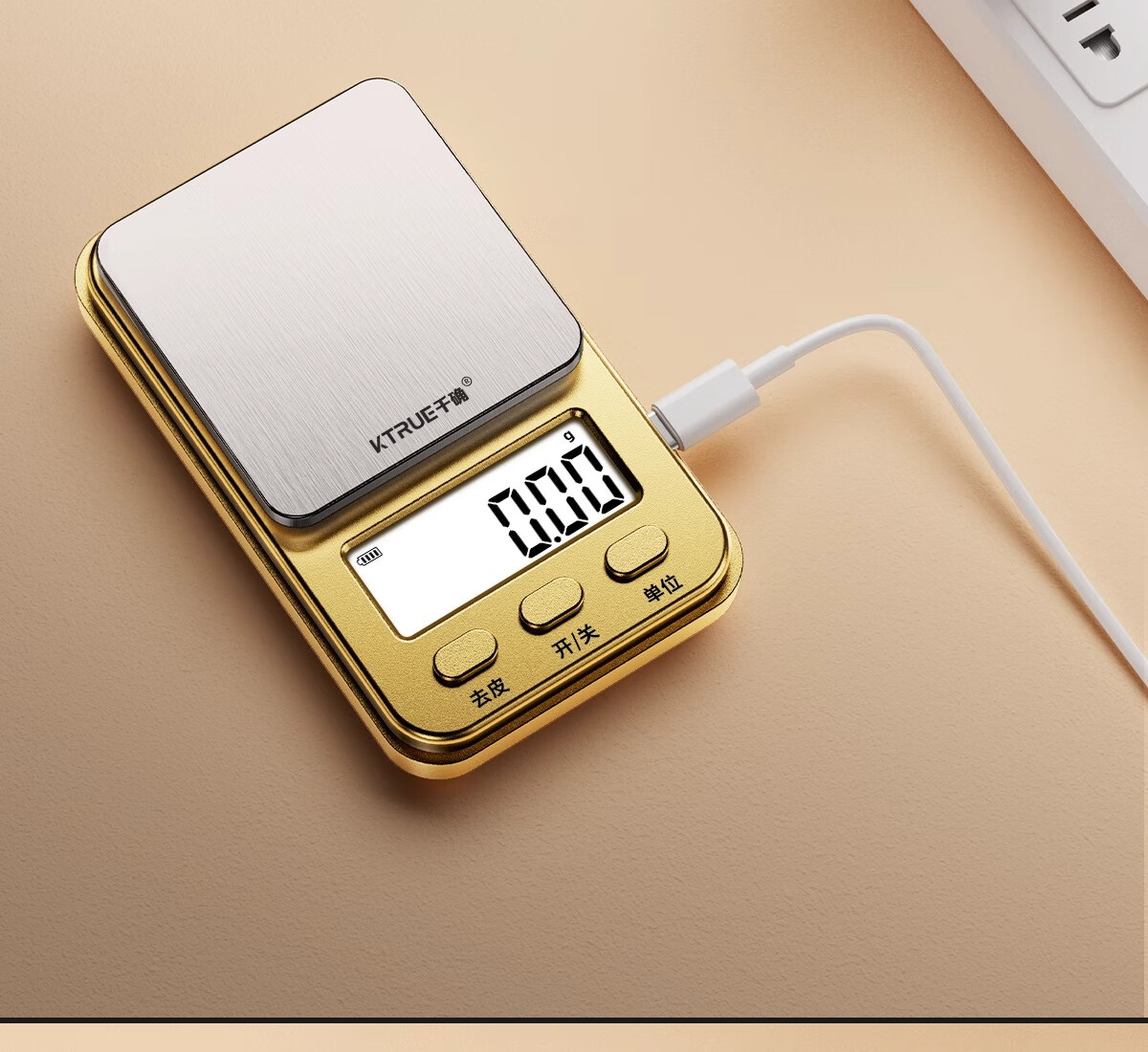 千确精准黄金珠宝专用电子秤便携式精密克称首饰文玩克度小型迷你克数0.01克重称茶叶金子中药秤高精度 【 量程200g/精度0.01g】三用款+赠送砝码