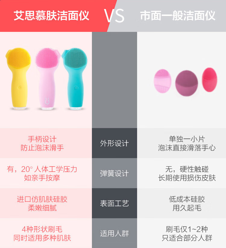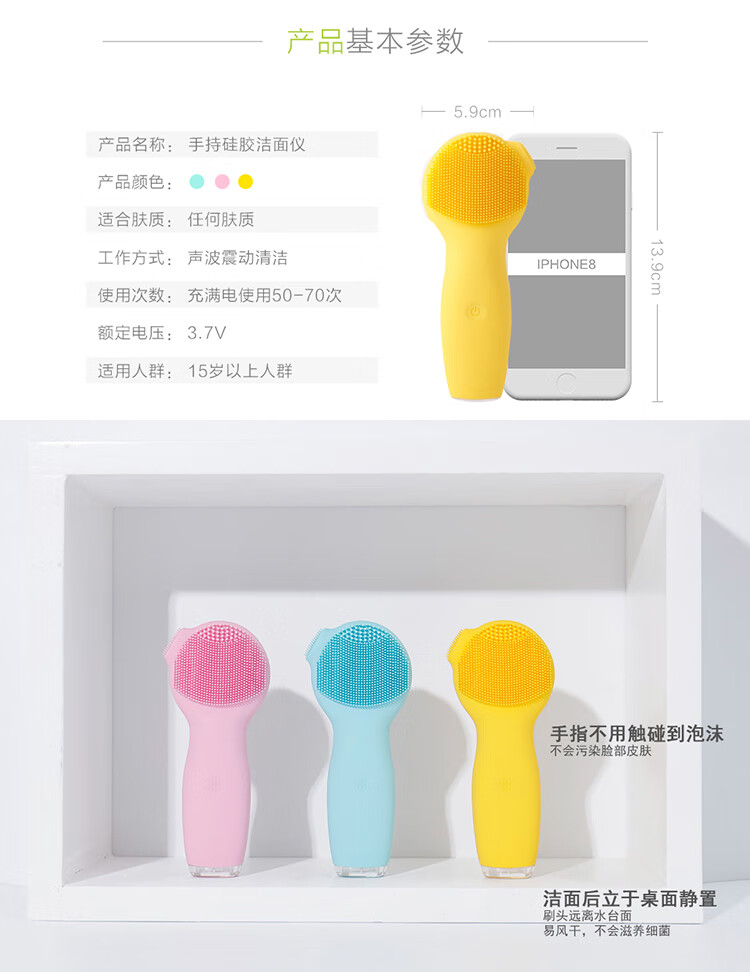 Xiaomi Ecological Chain Same Style Facial Washer Beauty Facial Washing Brush Women's Makeup Remover Artifact Sonic Silicone Pore Cleaner Peach Powder
