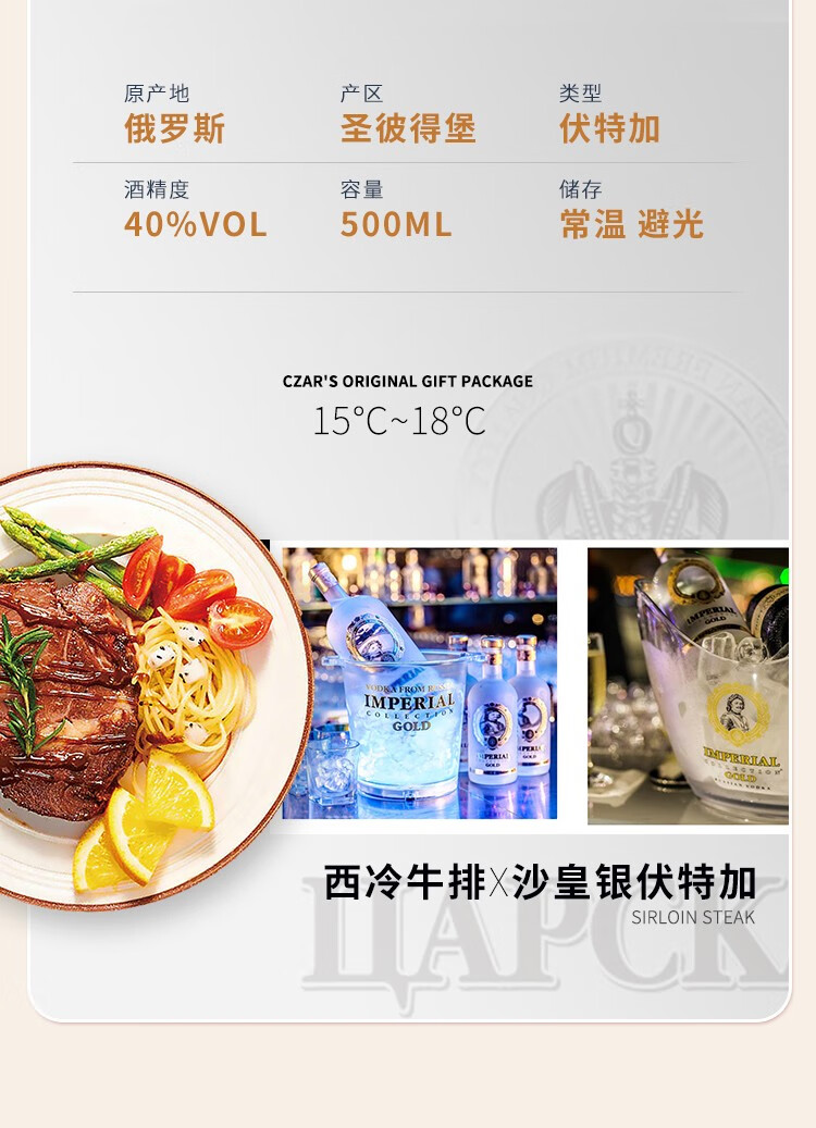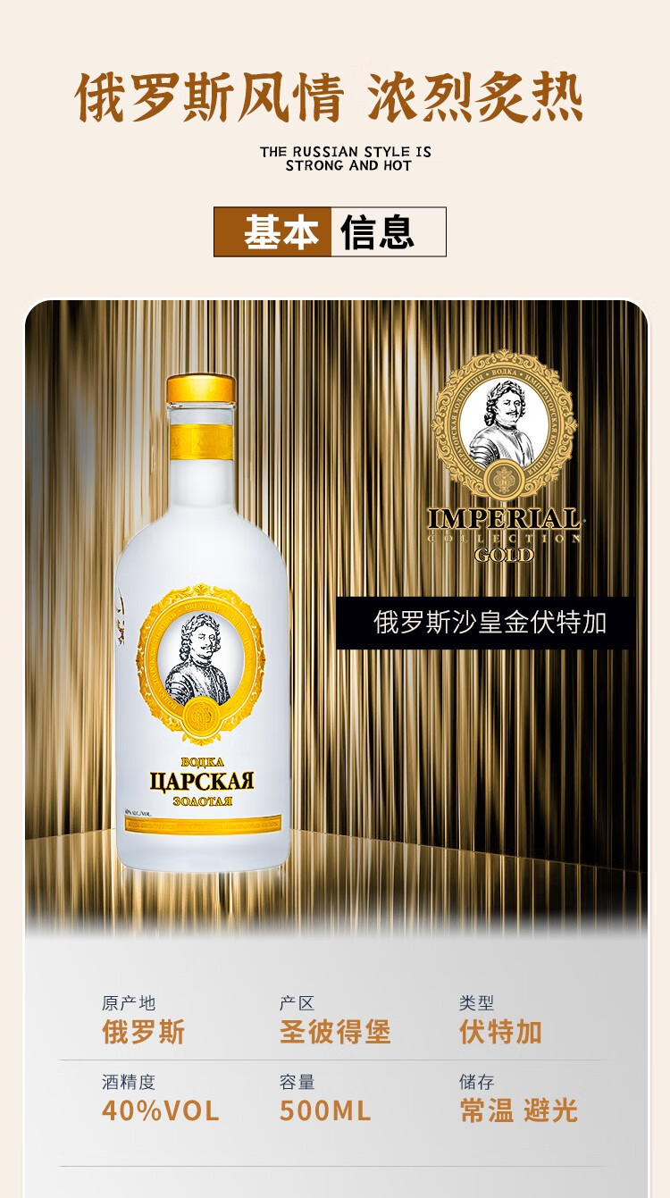 沙皇【超市洋酒】沙皇伏特加礼盒装 俄罗斯Russia原瓶进口洋酒 全金1000ml*1瓶