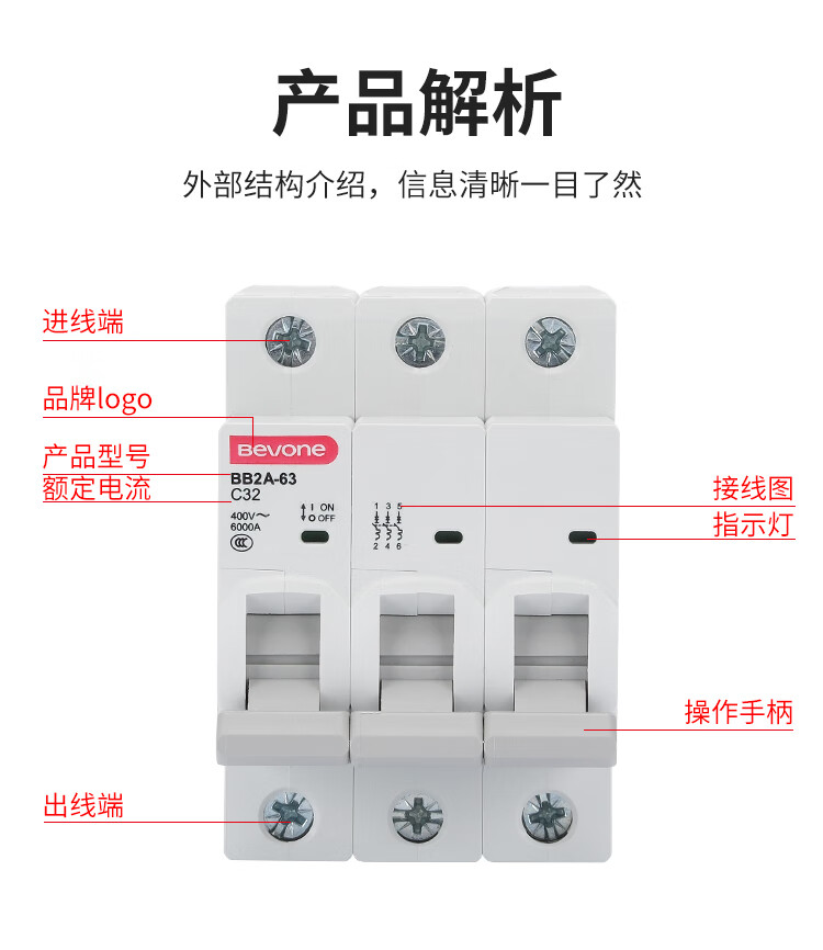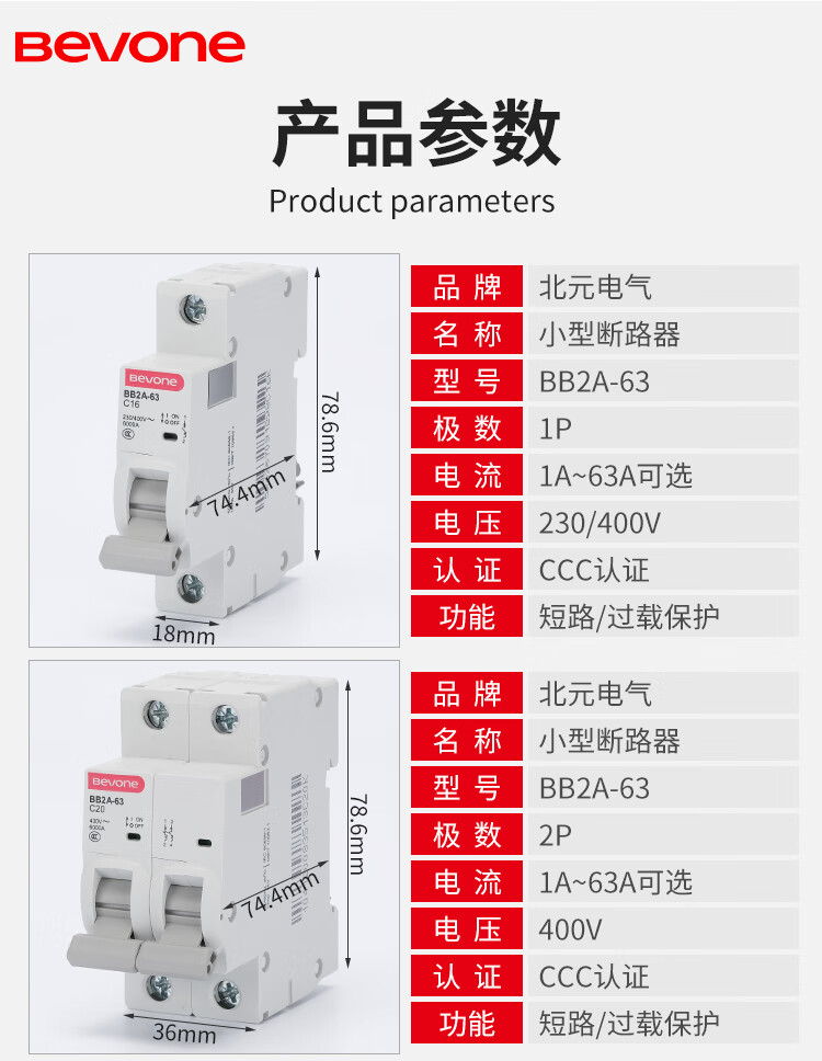Beiyuan électrique pékin Beiyuan disjoncteur BB2A-63C32A interrupteur à air 1P 2P 3P 4P rupture 6kA micro-rupture 400V 1P 25A