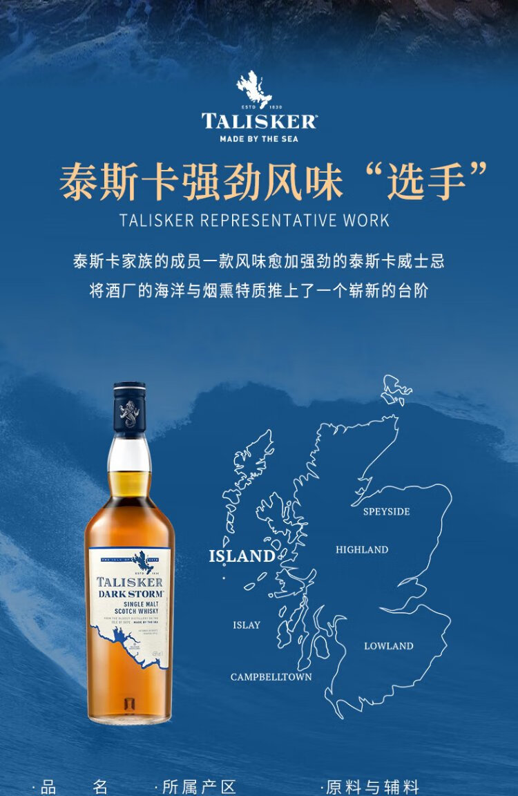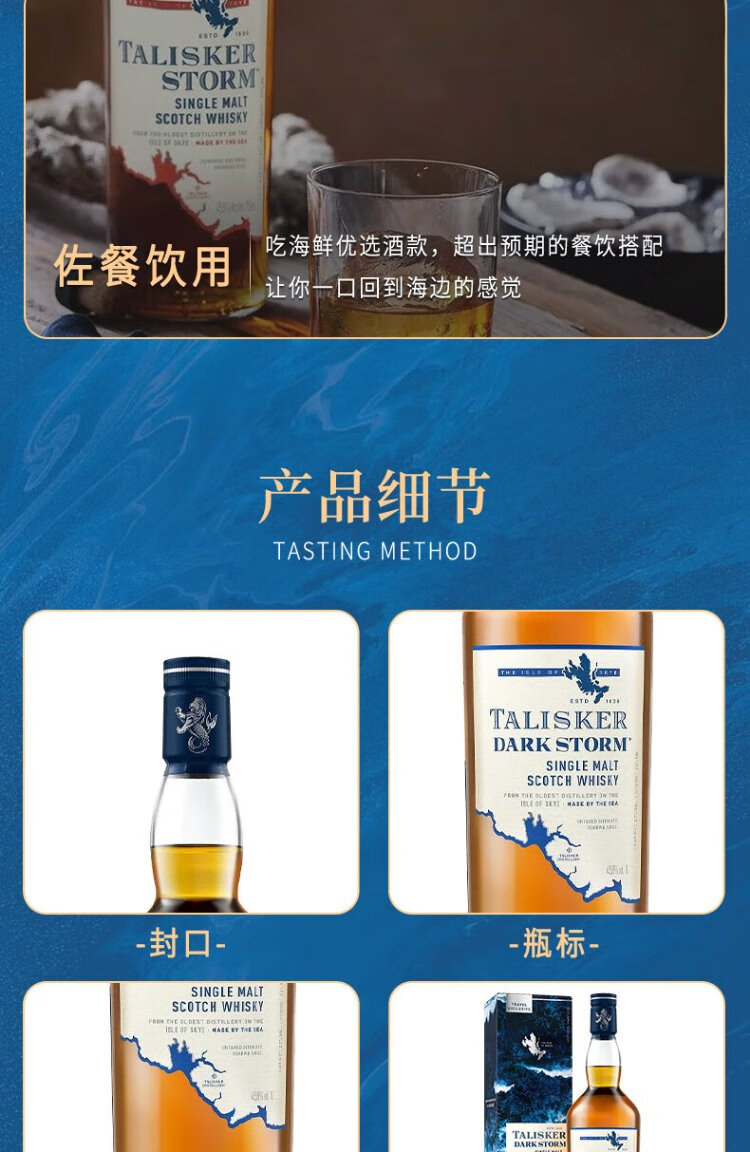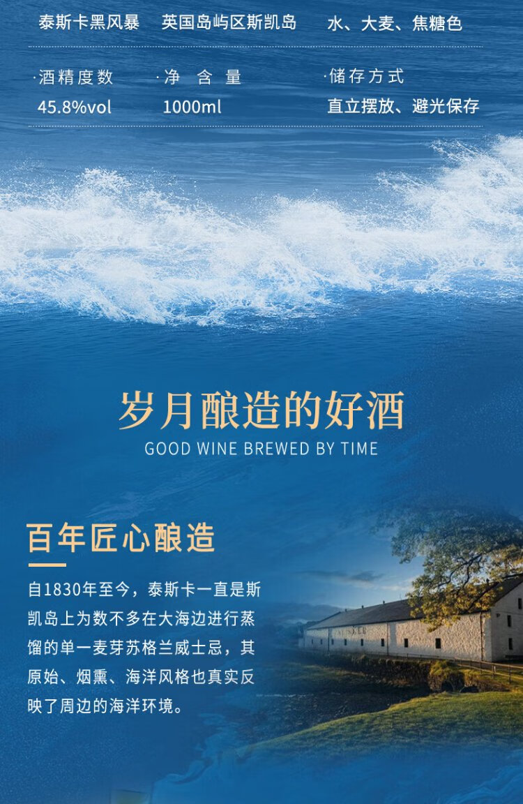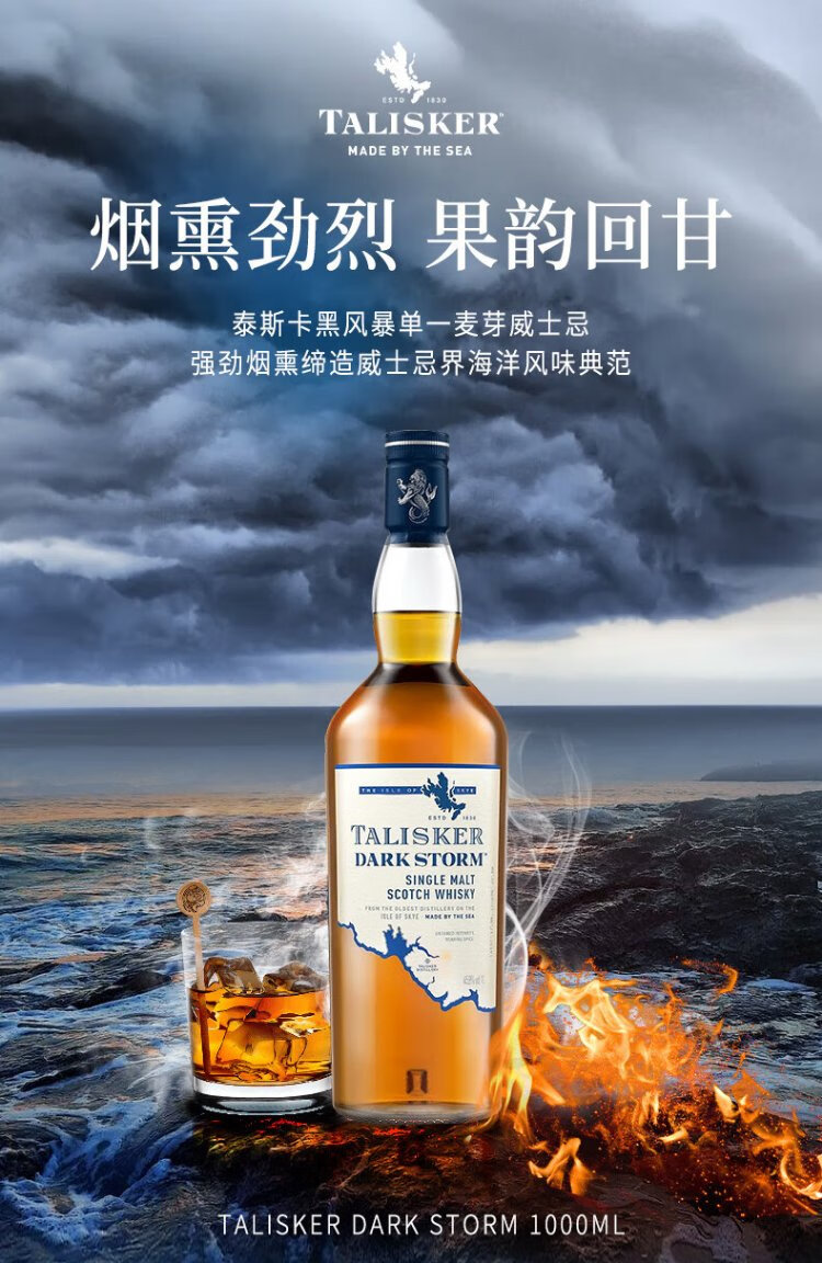 泰斯卡(TALLSKER)10年黑风暴1000ml 单一麦芽苏格兰威士忌 岛屿区洋酒 原瓶进口 泰斯卡黑风暴 1000ml