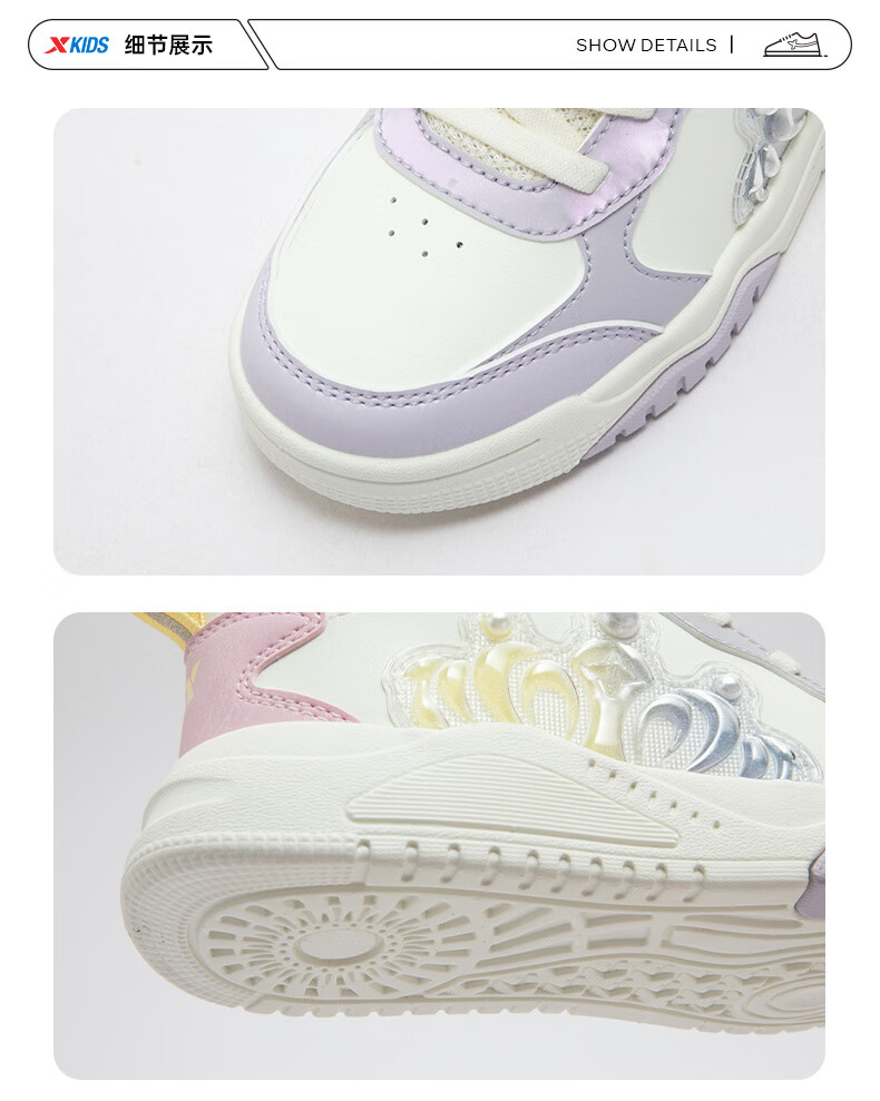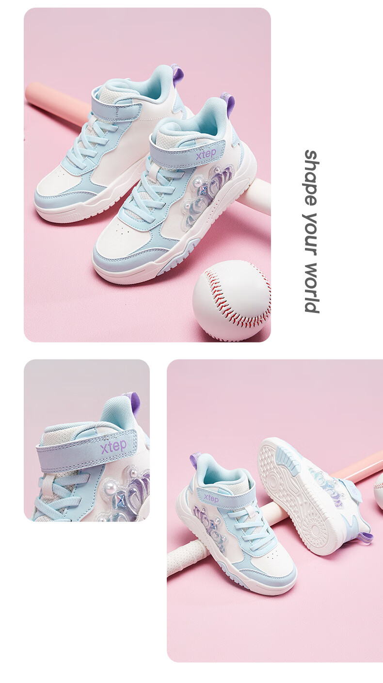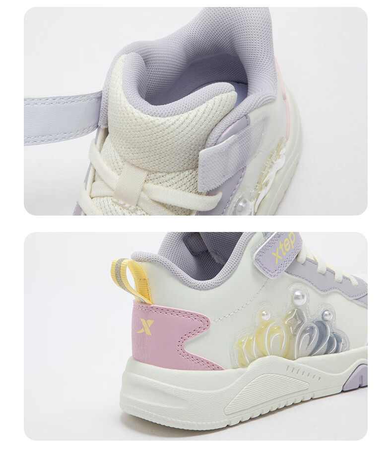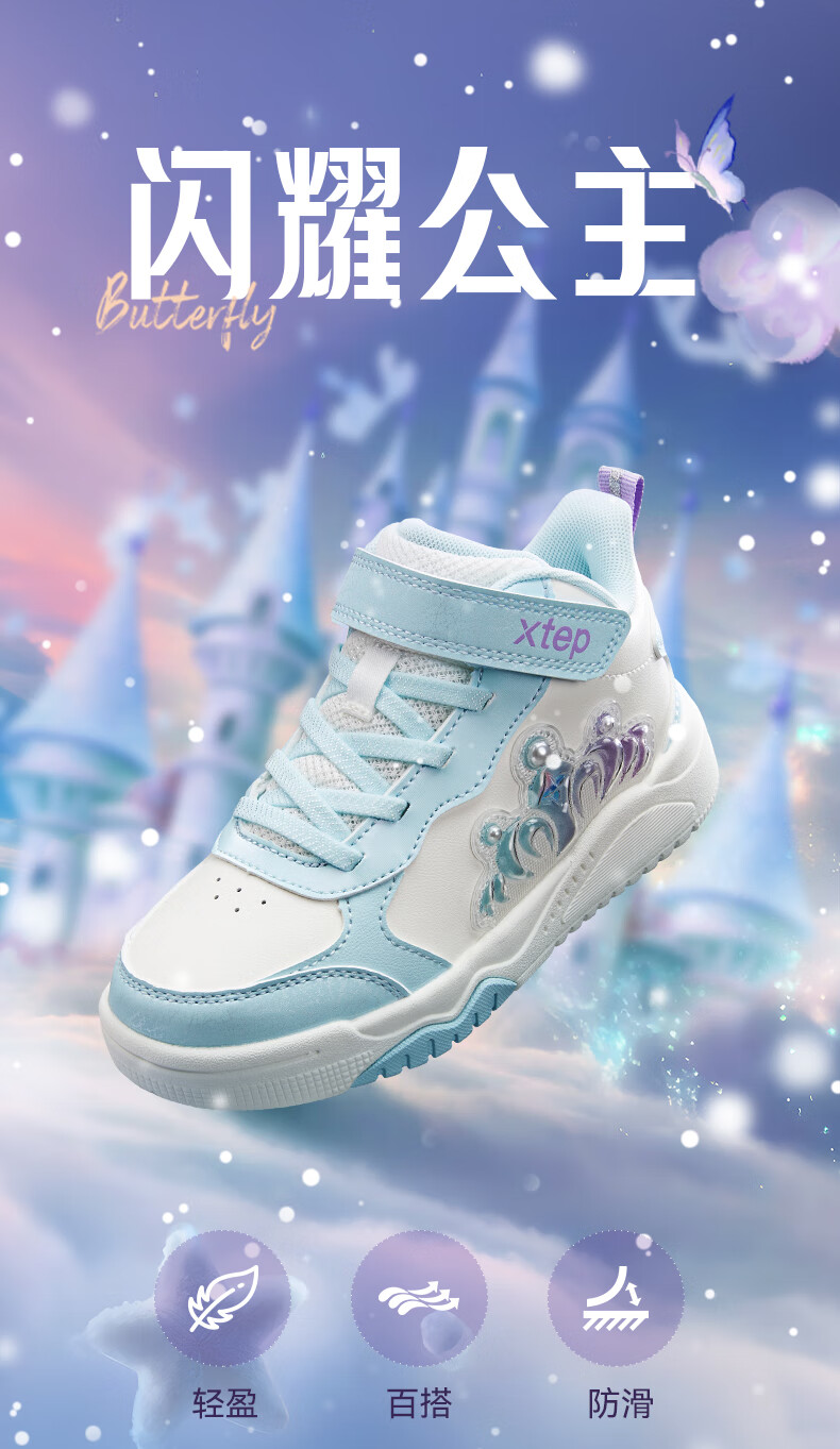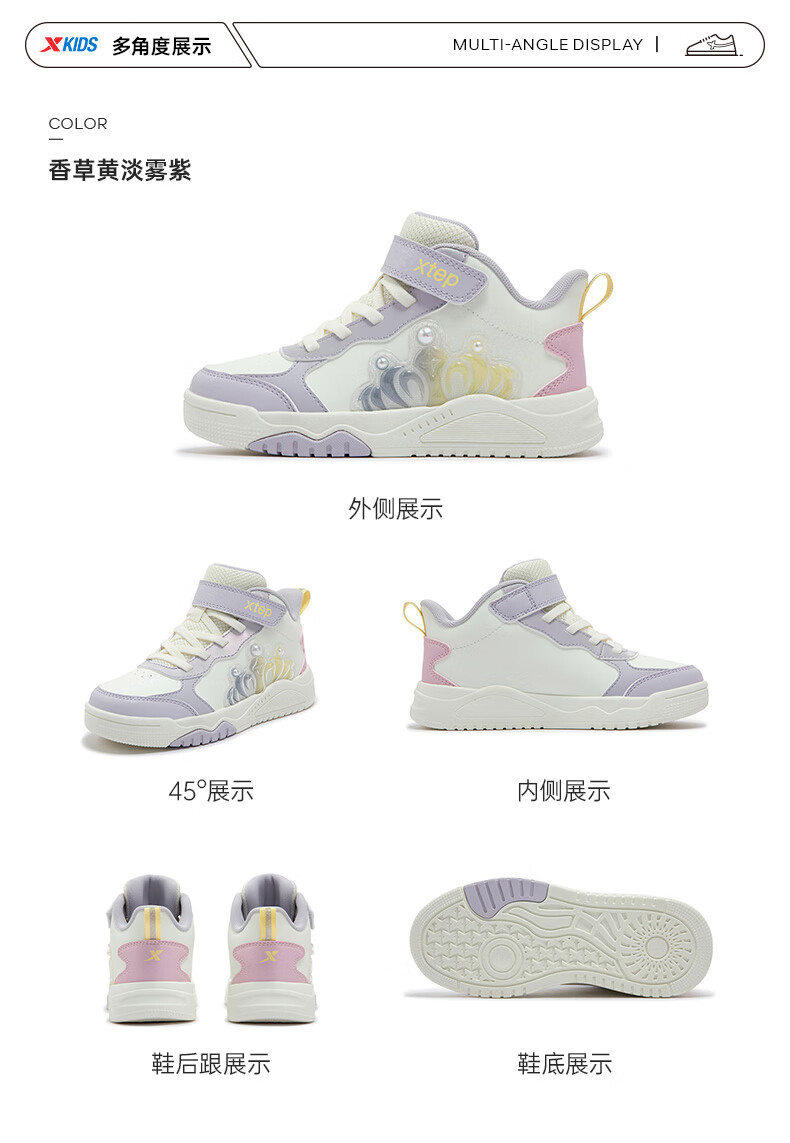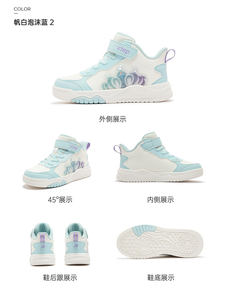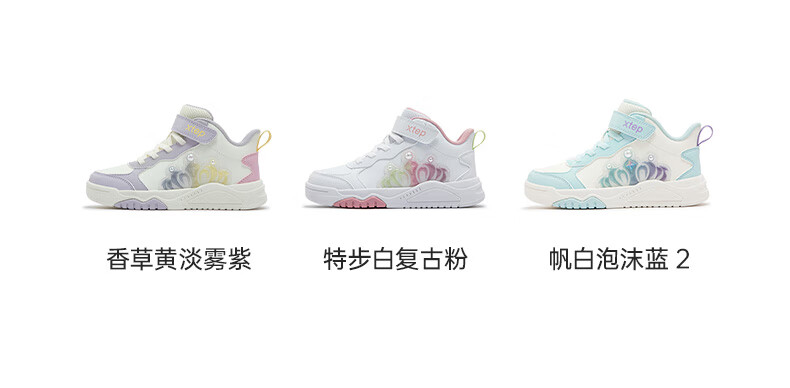特步童鞋儿童板鞋女童小童革面皇冠装饰防滑耐磨缓震高帮魔术贴板鞋 特步白/复古粉 31