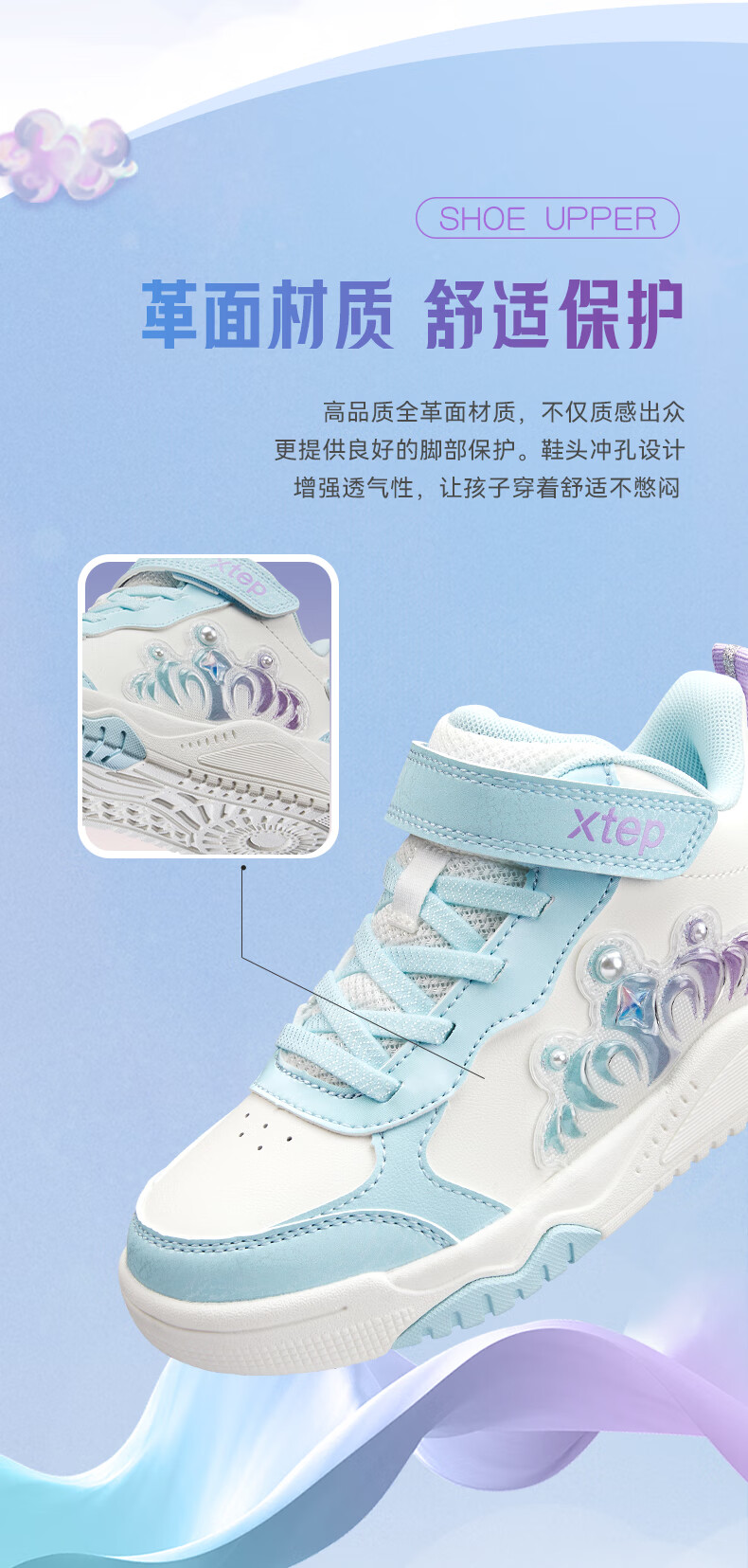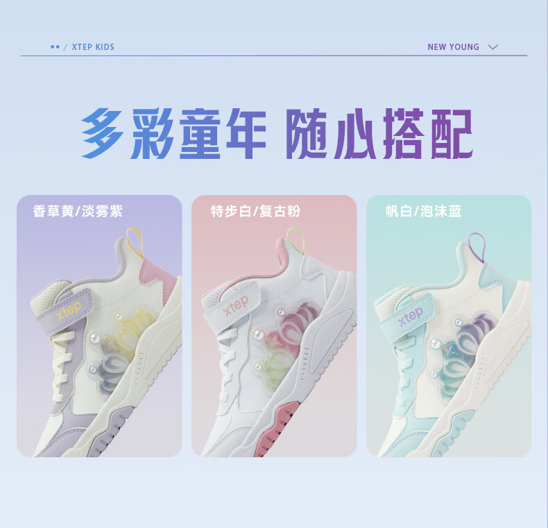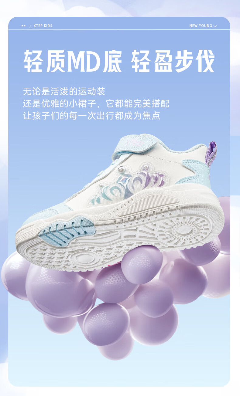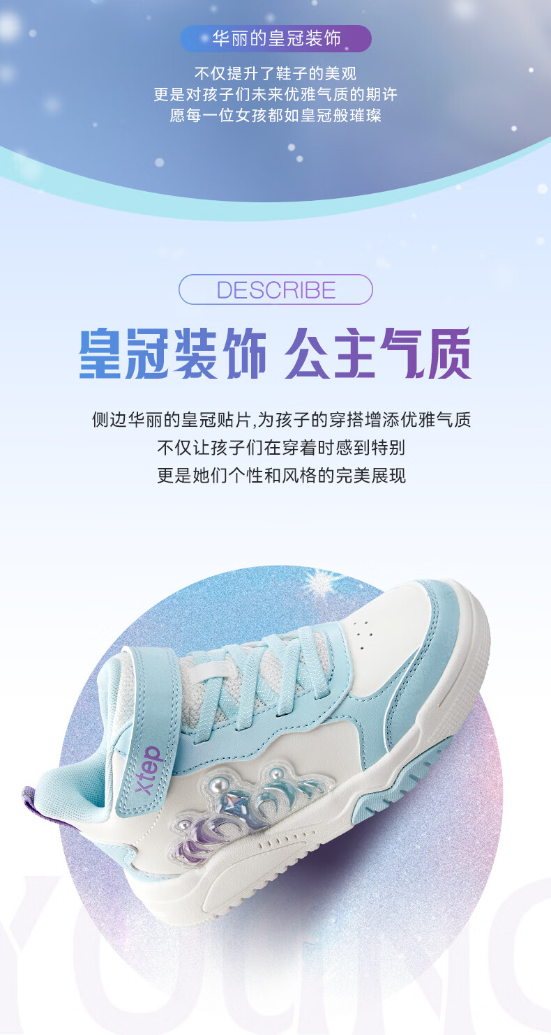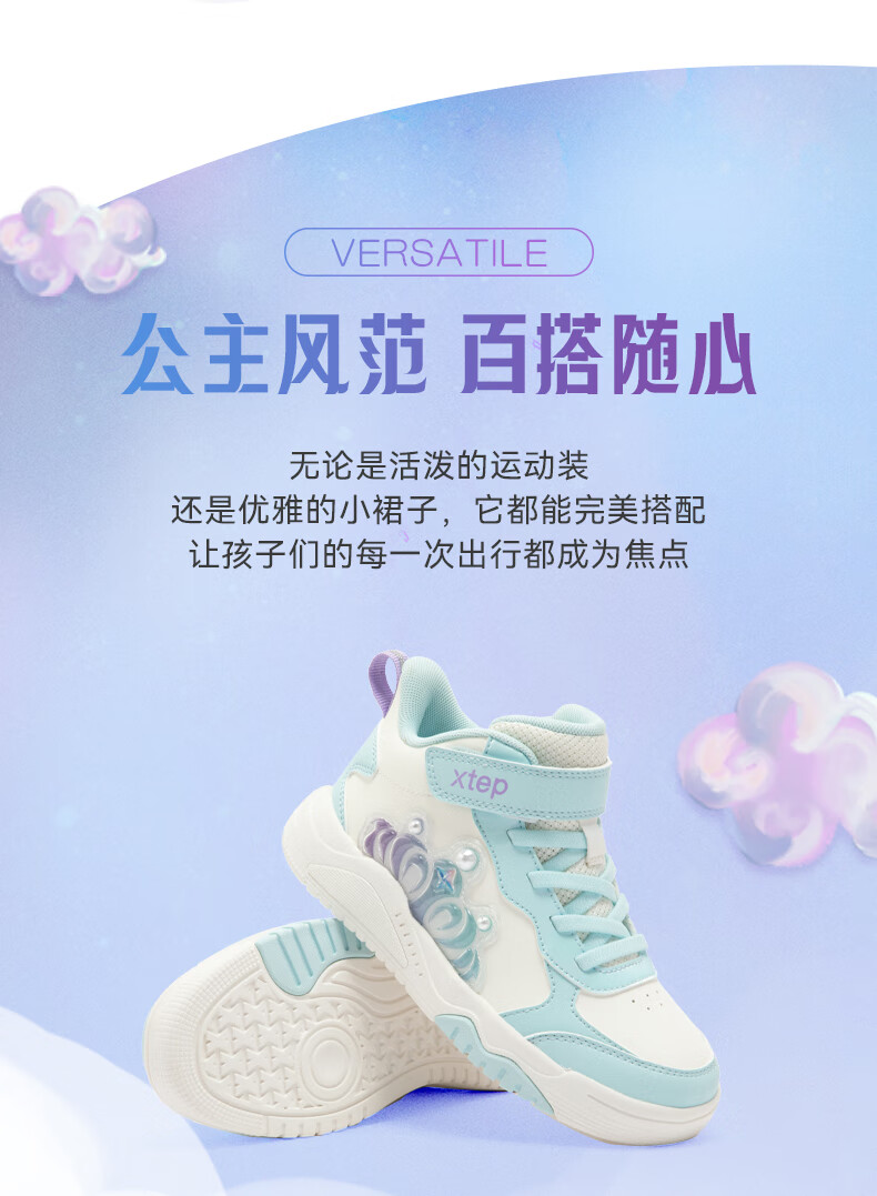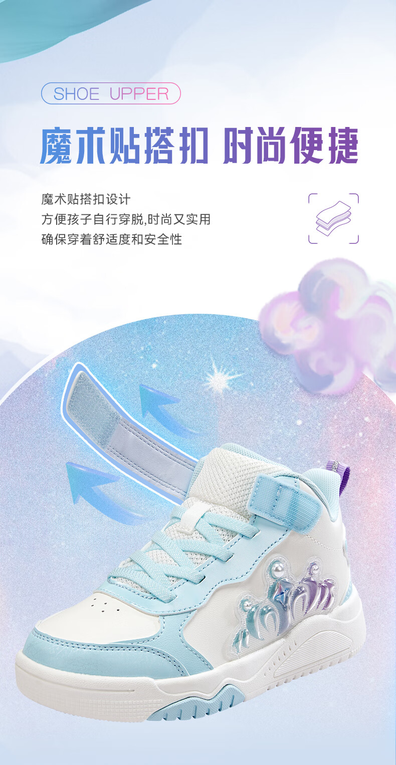 特步童鞋儿童板鞋女童小童革面皇冠装饰防滑耐磨缓震高帮魔术贴板鞋 特步白/复古粉 31