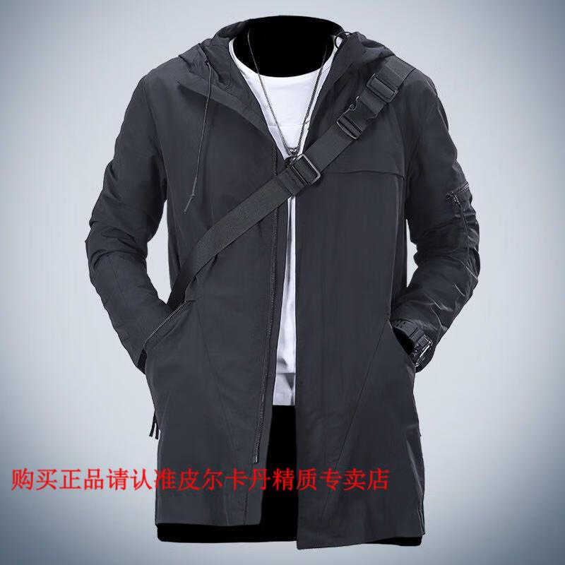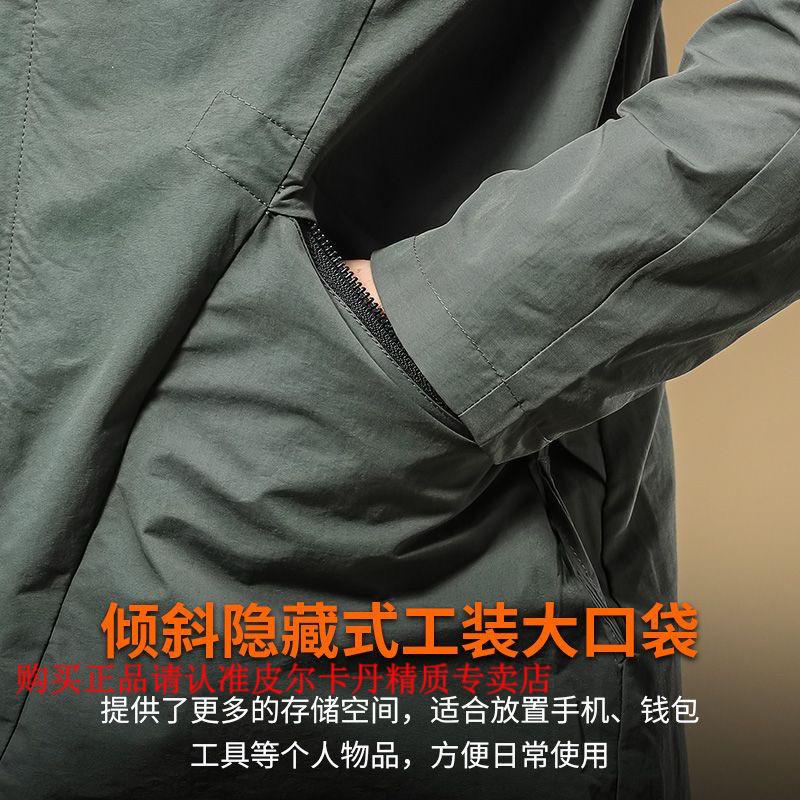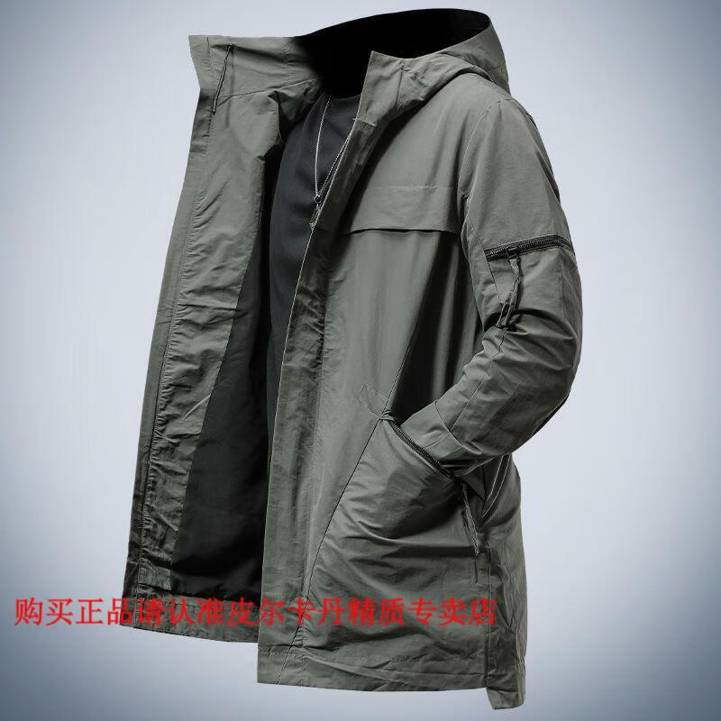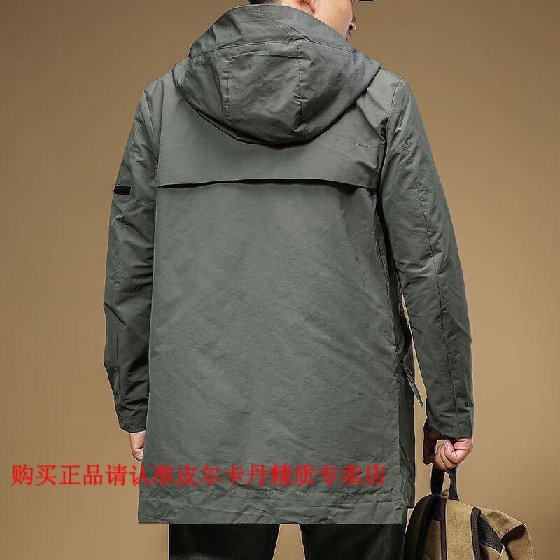 Pierre Cardin 2026, новинка весны и осени, модная длинная стильная рабочая одежда, ветрозащитное пальто, весенне-осенняя повседневная куртка с капюшоном, мужская зеленая одежда высокого качества M