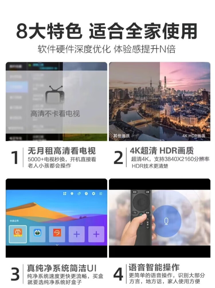 优选25新款AI智能全网通海思芯4k机顶盒高清电视盒子终身免费全网通5G 32G语音蓝牙版+直播+影视 至尊版 AI智能四核心+超清电视+永久会员