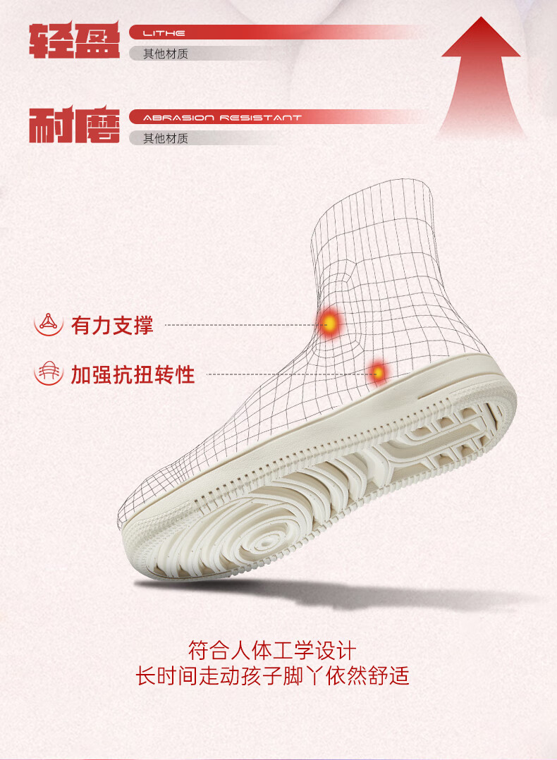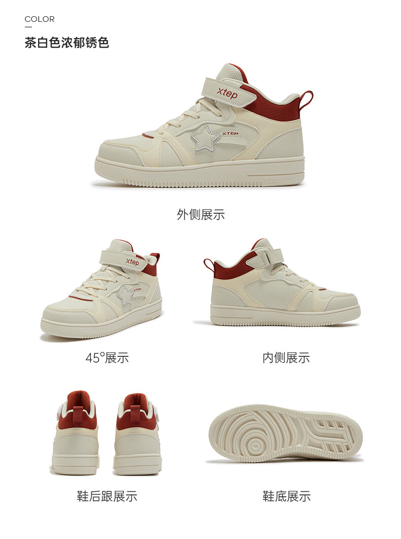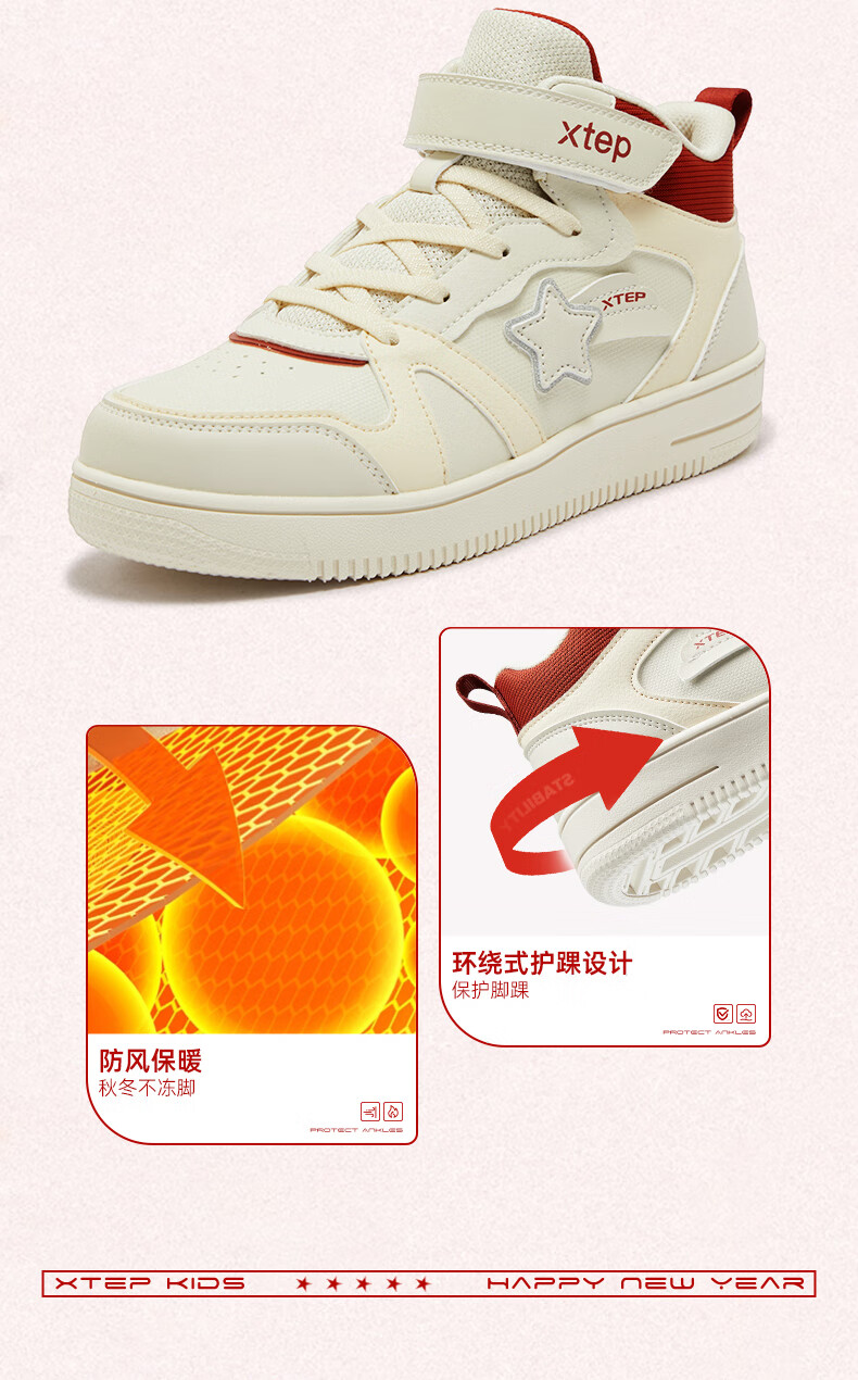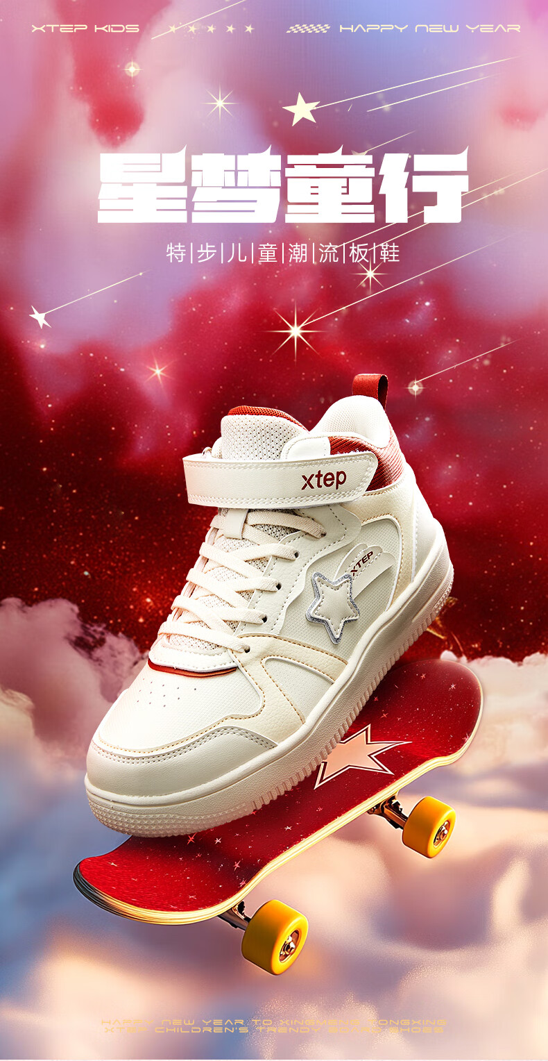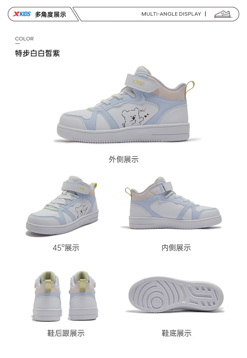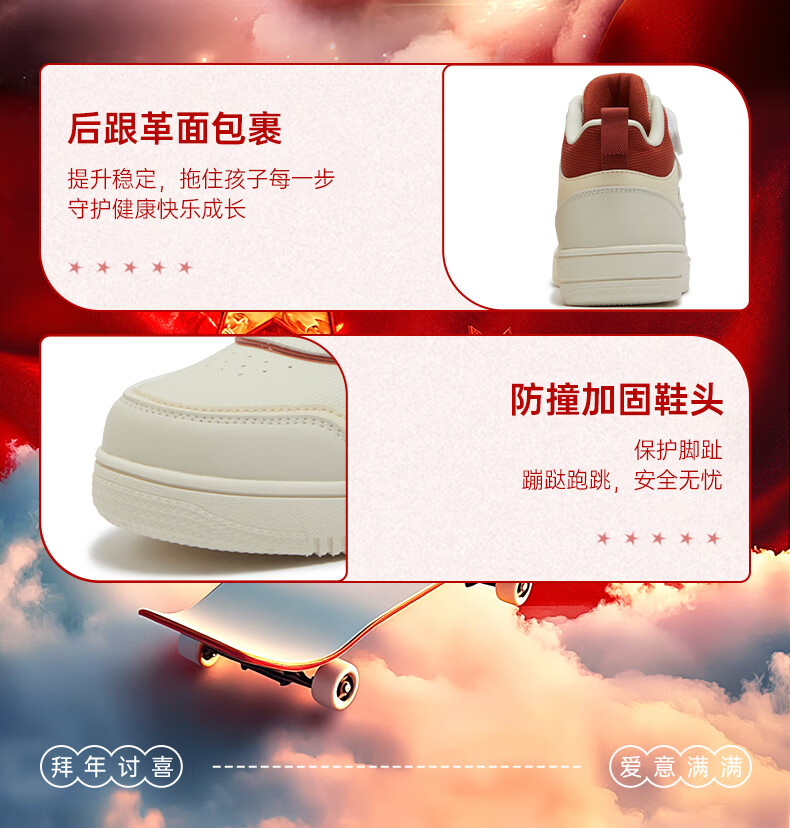 特步童鞋儿童板鞋女童中大童革面新年款耐磨拼色鞋萌趣装饰魔术贴板鞋 帆白/纯净粉 36