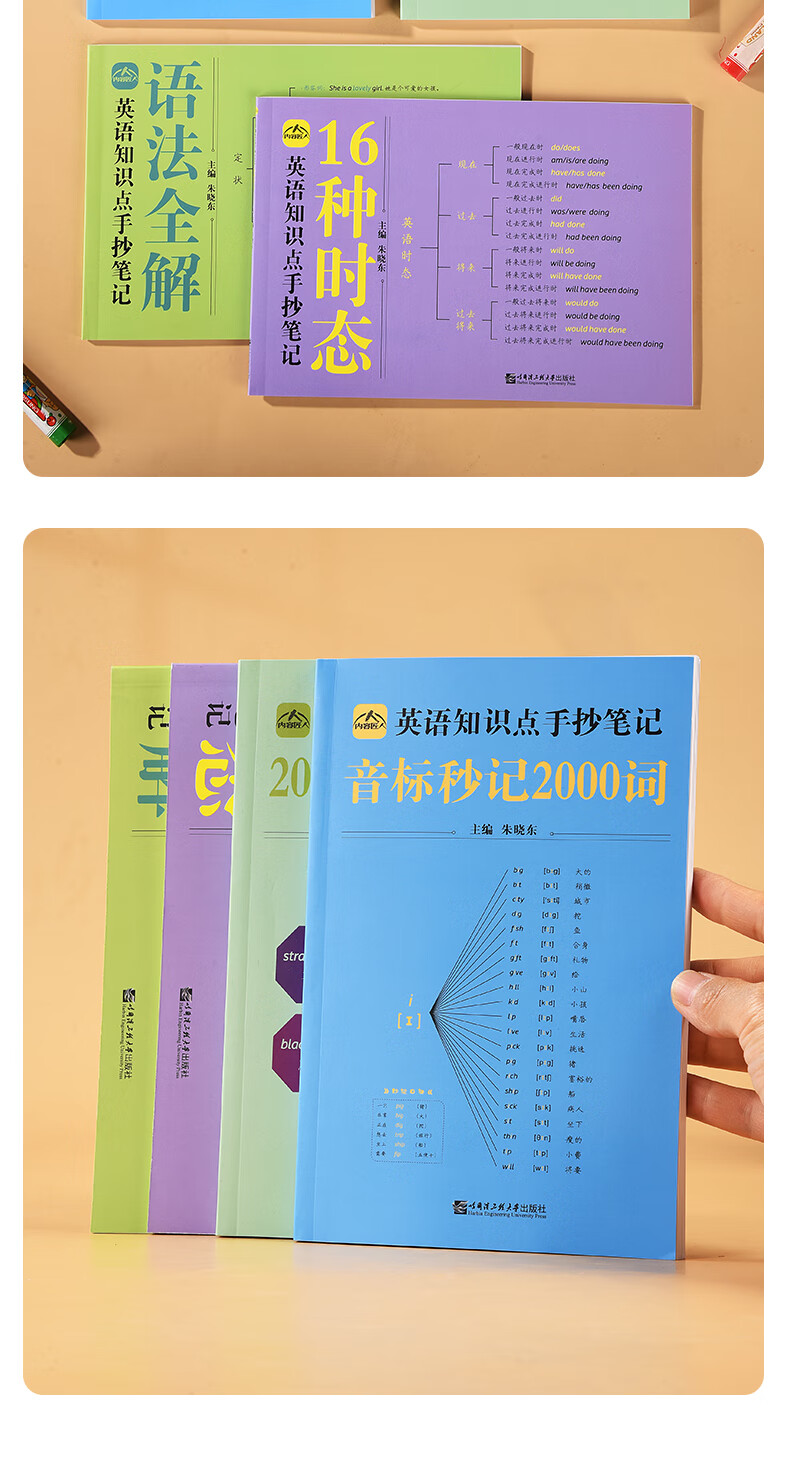 A complete set of 4 volumes of handwritten notes on English knowledge points. Common to middle schools and primary schools. Content craftsman. Compound word shorthand. 16 tenses in English. Complete explanation of English grammar for junior high schools and primary schools. English. 2000 words in phonetic notation. No Specifications.