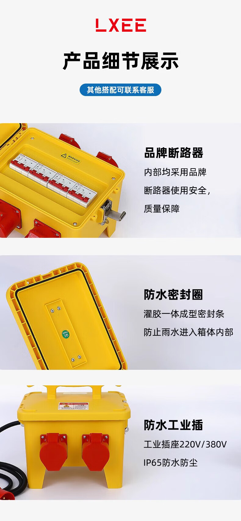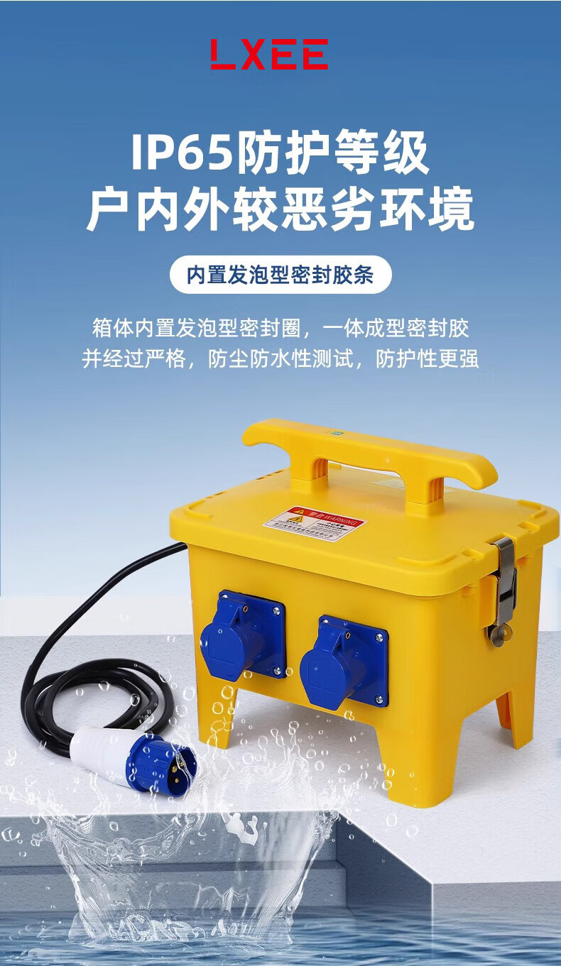 南立手提式工业插座箱防水移动工地二三级配电箱防尘户外型电源检修箱 黄色DXHTX-1