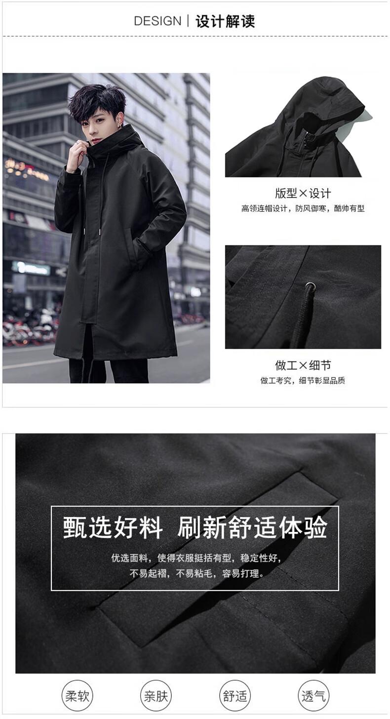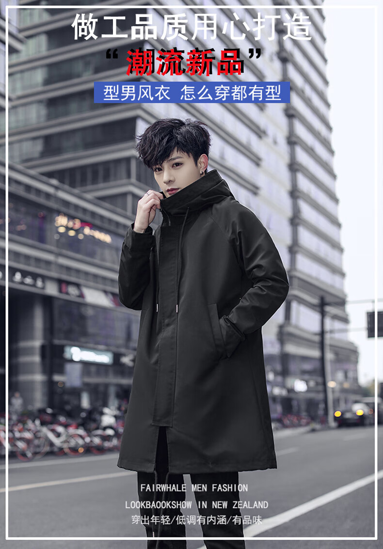 罗蒙(ROMON)2025新春季男士风衣中长款外套薄款潮流外穿黑色大码宽松春秋大衣 黑色春秋款 常规 S 宽松偏大90~110斤