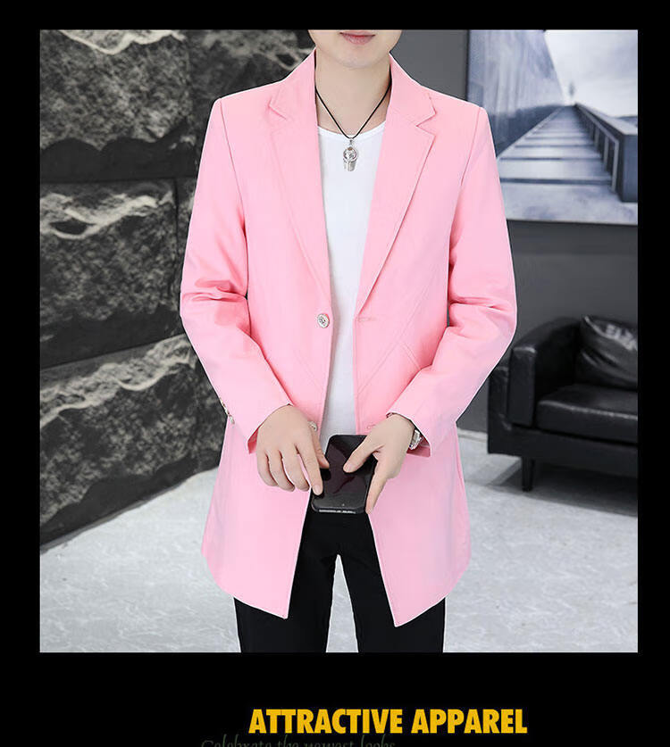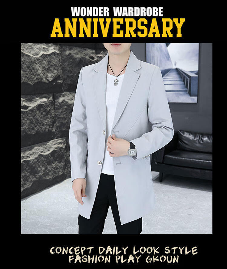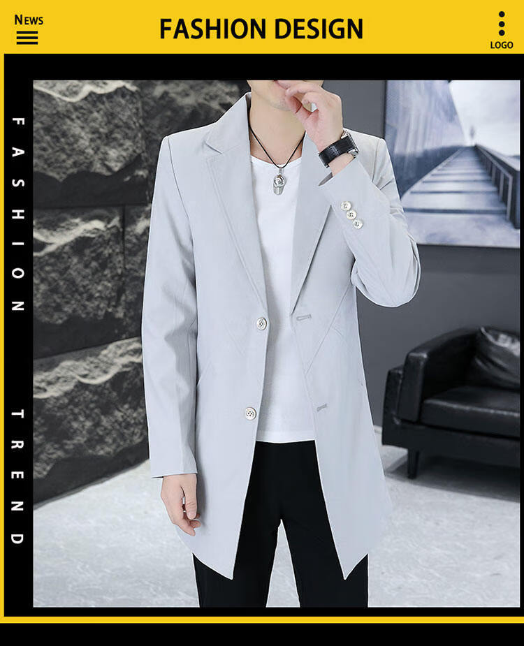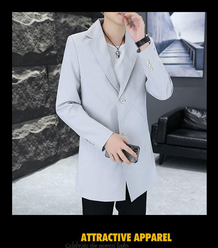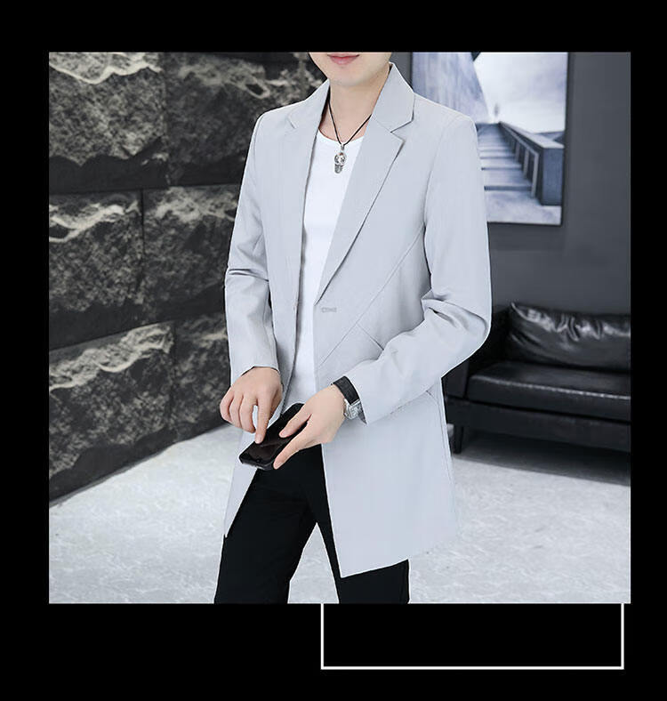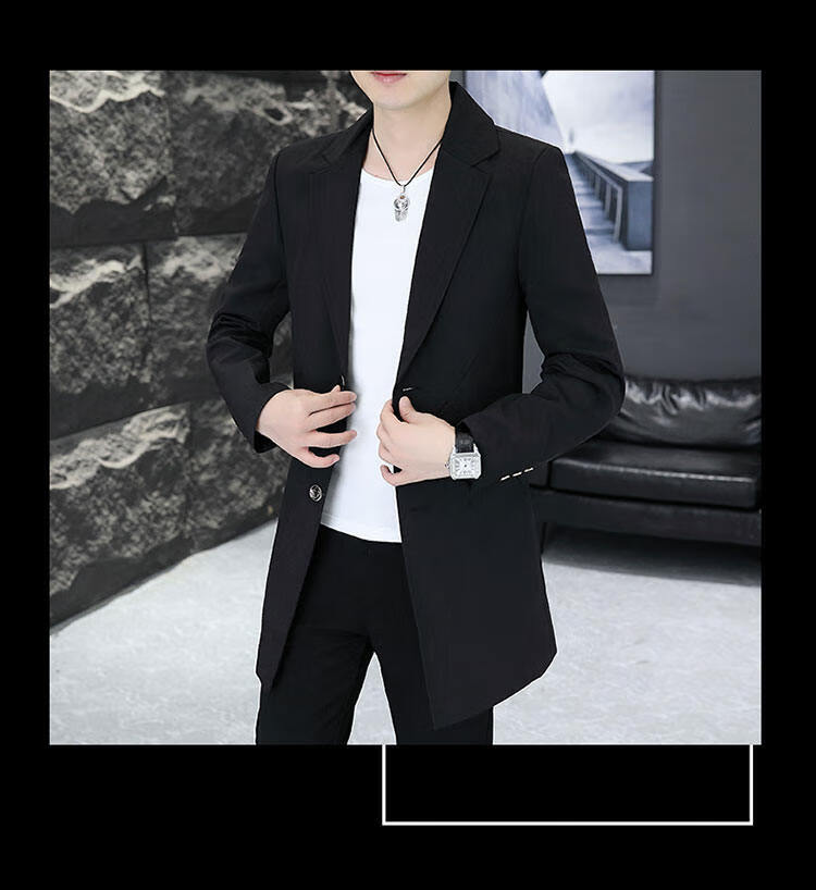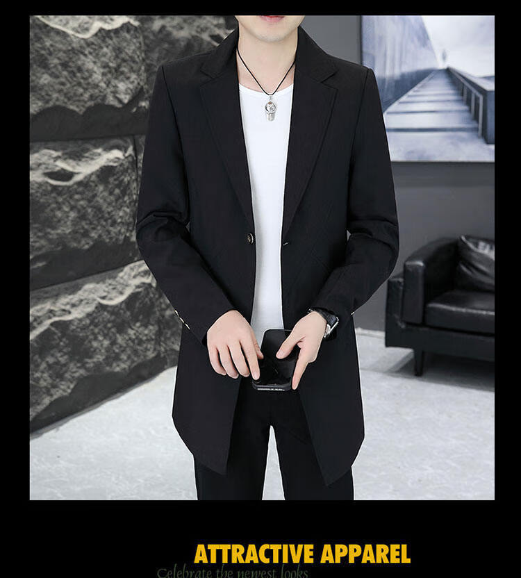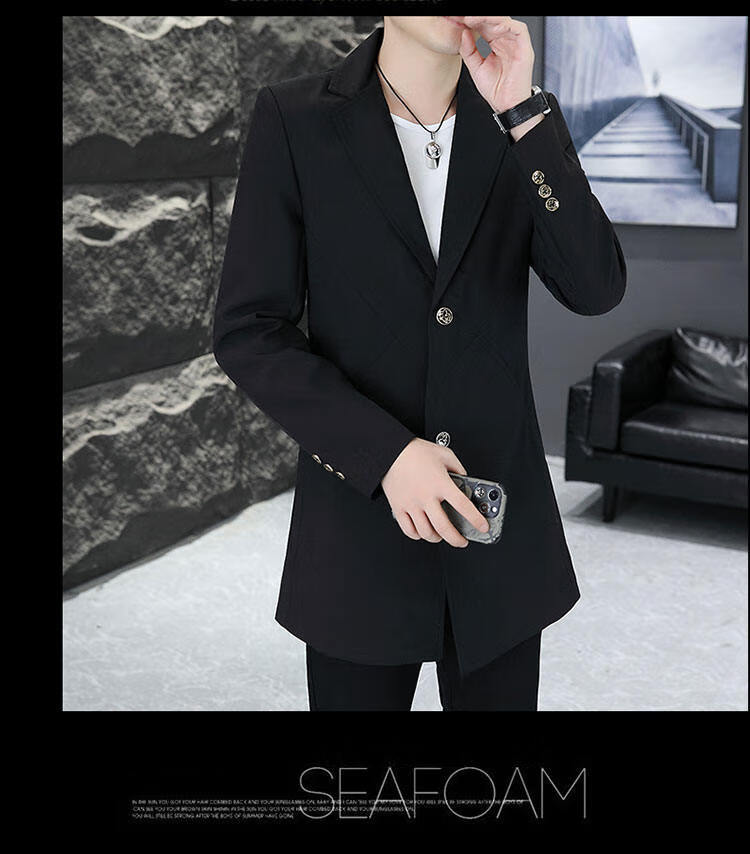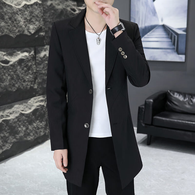 皮尔卡丹(pierre cardin)男士风衣中长款春季新款春秋装外套修身休闲西装男款大衣服西服潮 7702黑色 L (110-130斤)