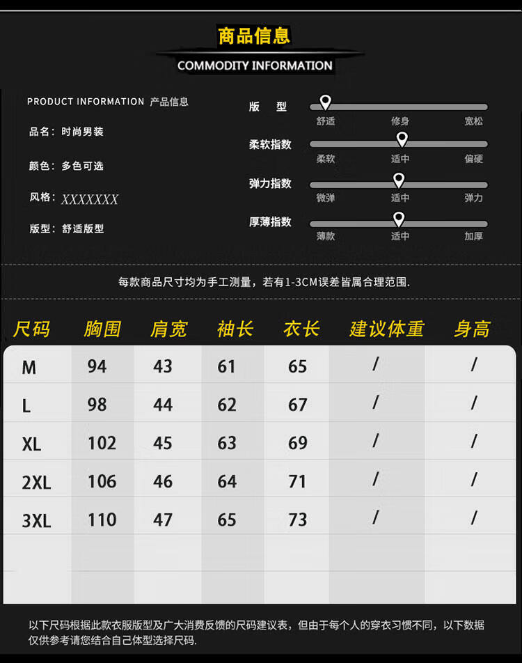 China (cm) 160-165/84-86 165-170 / 88-90 167-172 / 92-96 168-173 / 98-102 170-176 / 106-110