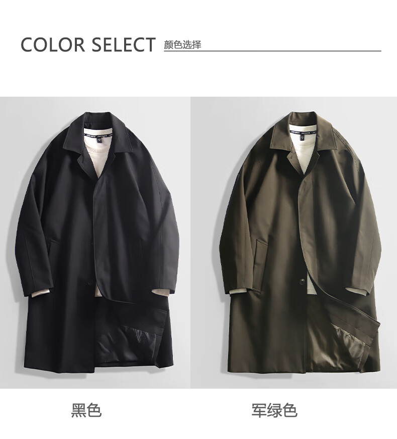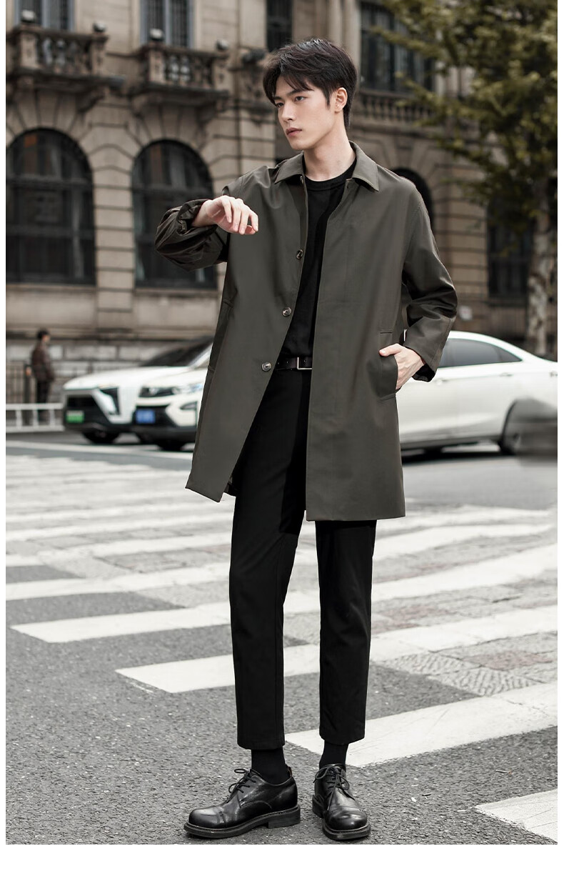 JEEP SPIRIT风衣男中长款外套2025新款春秋季过膝克苏鲁文职行政商务休闲大衣 黑色 M 100-120斤