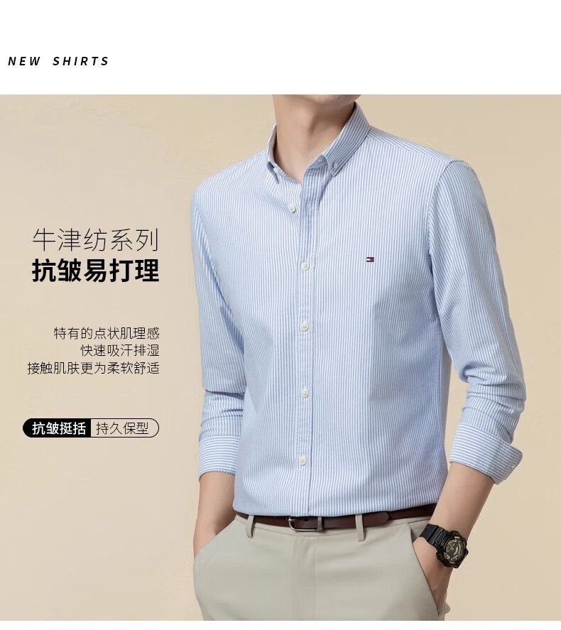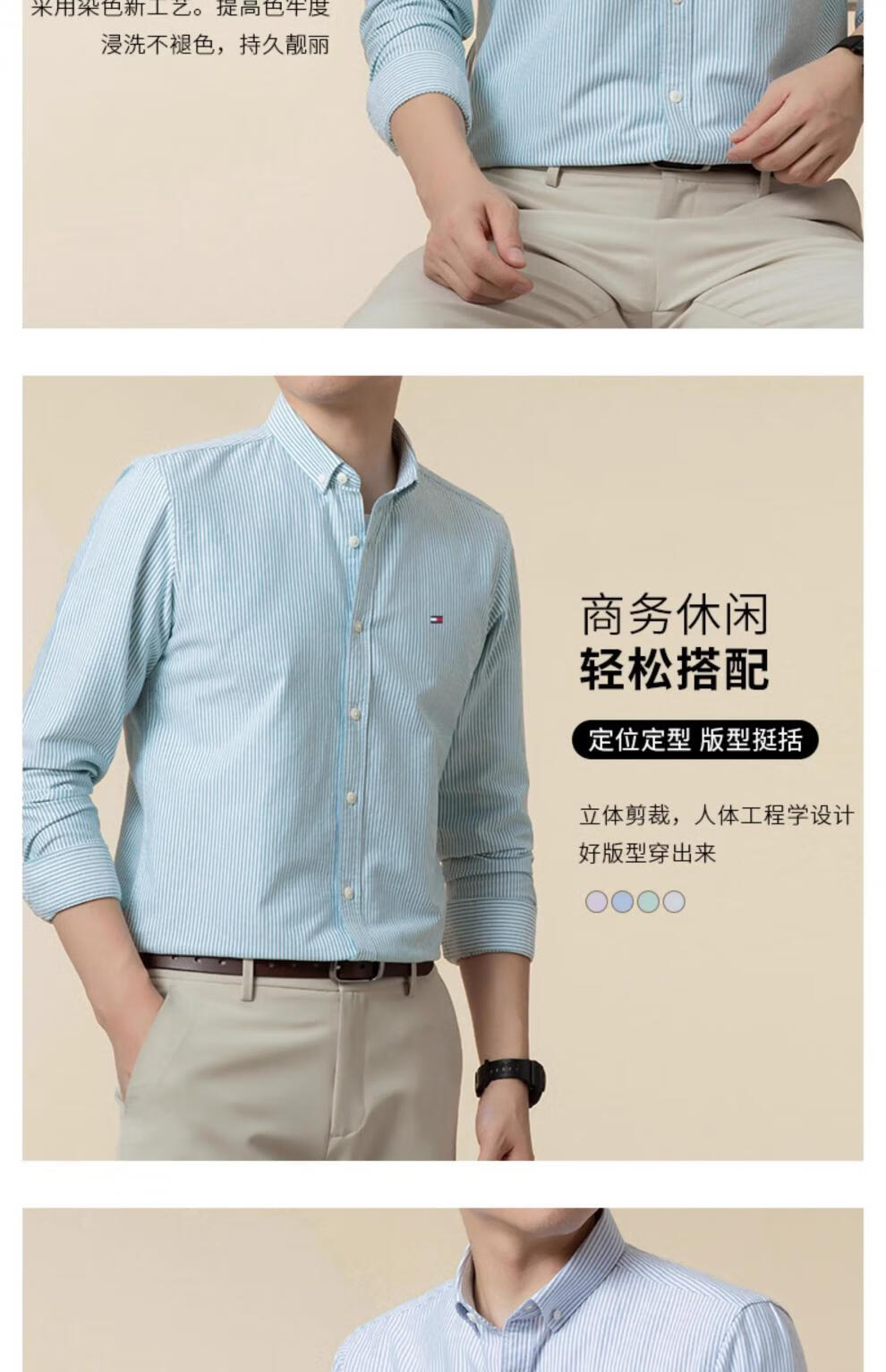 TOME BORNEK美国汤米春秋款男装长袖条纹衬衫男士纯棉商务休闲牛津纺衬衣男 灰色【25棉】 2XL 【160-175斤穿】