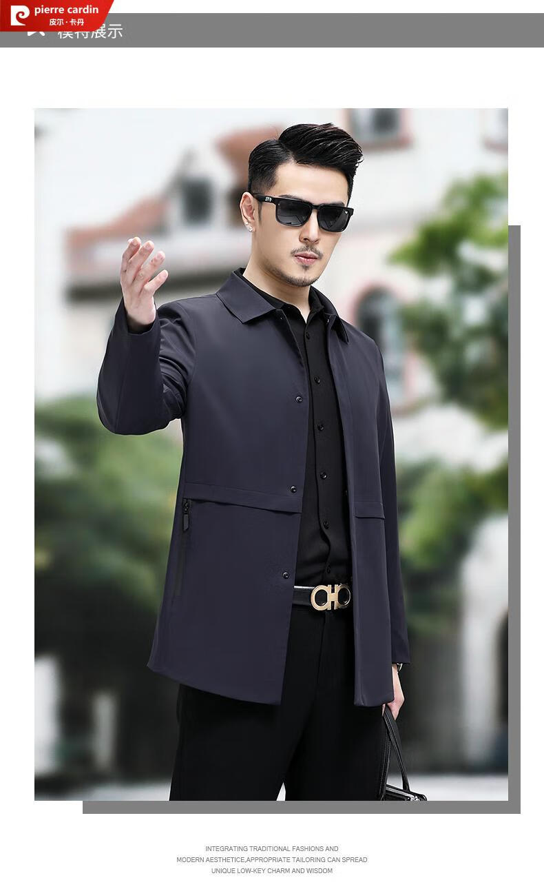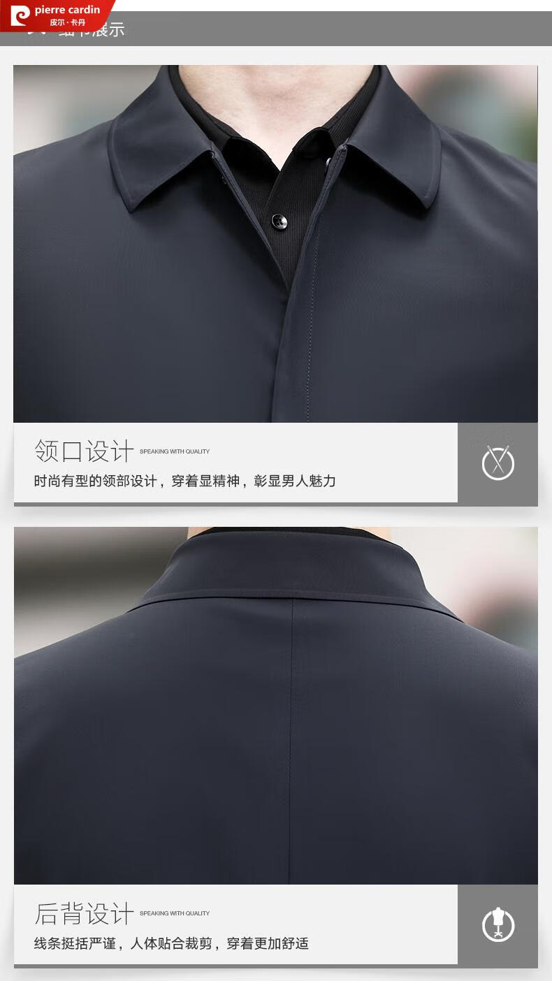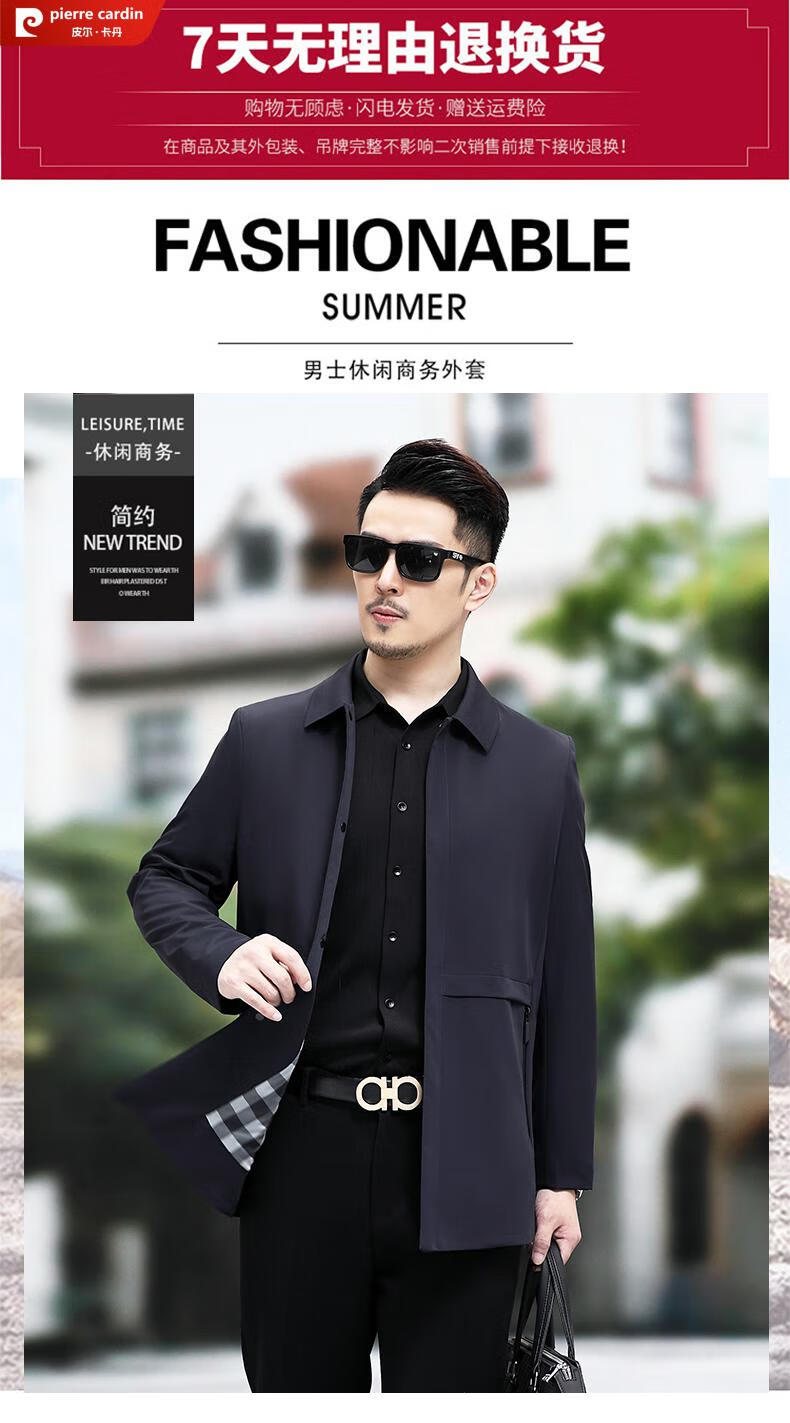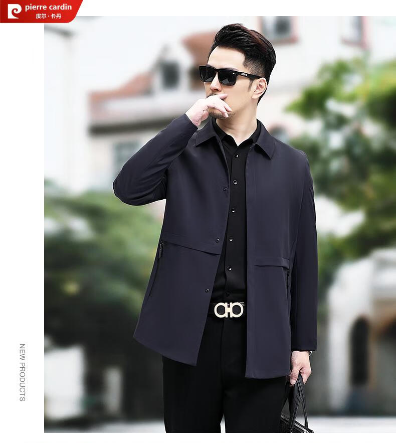 Короткая ветровка Pierre Cardin, мужская весна и осень 2025, новая деловая тонкая куртка с лацканами, повседневное мужское весеннее тонкое пальто среднего возраста, темно-синий L 175 рекомендуется 125-145 Jin Jin равен 0,5 кг