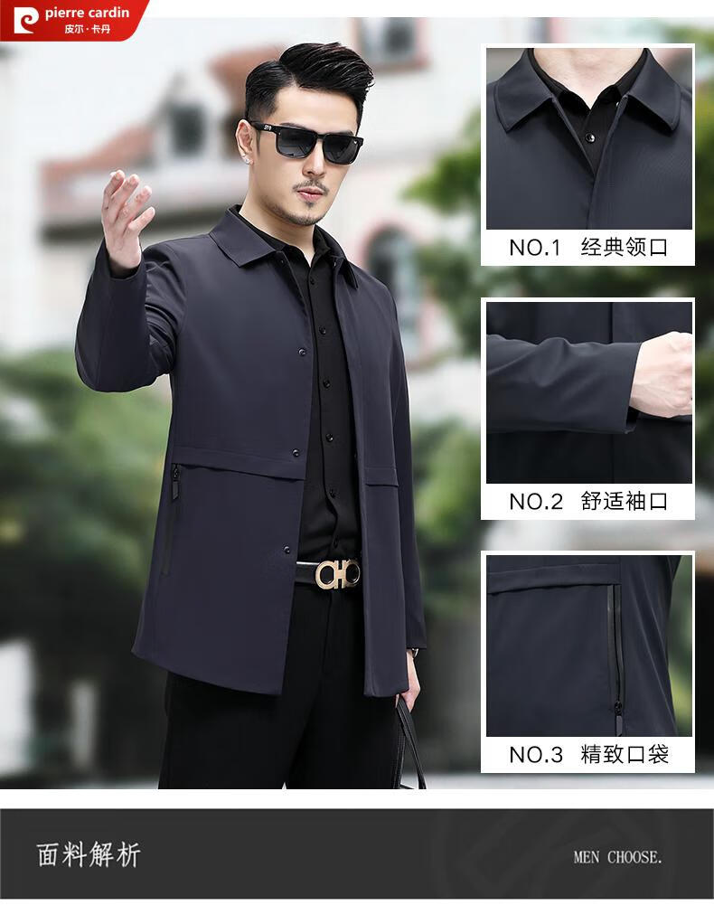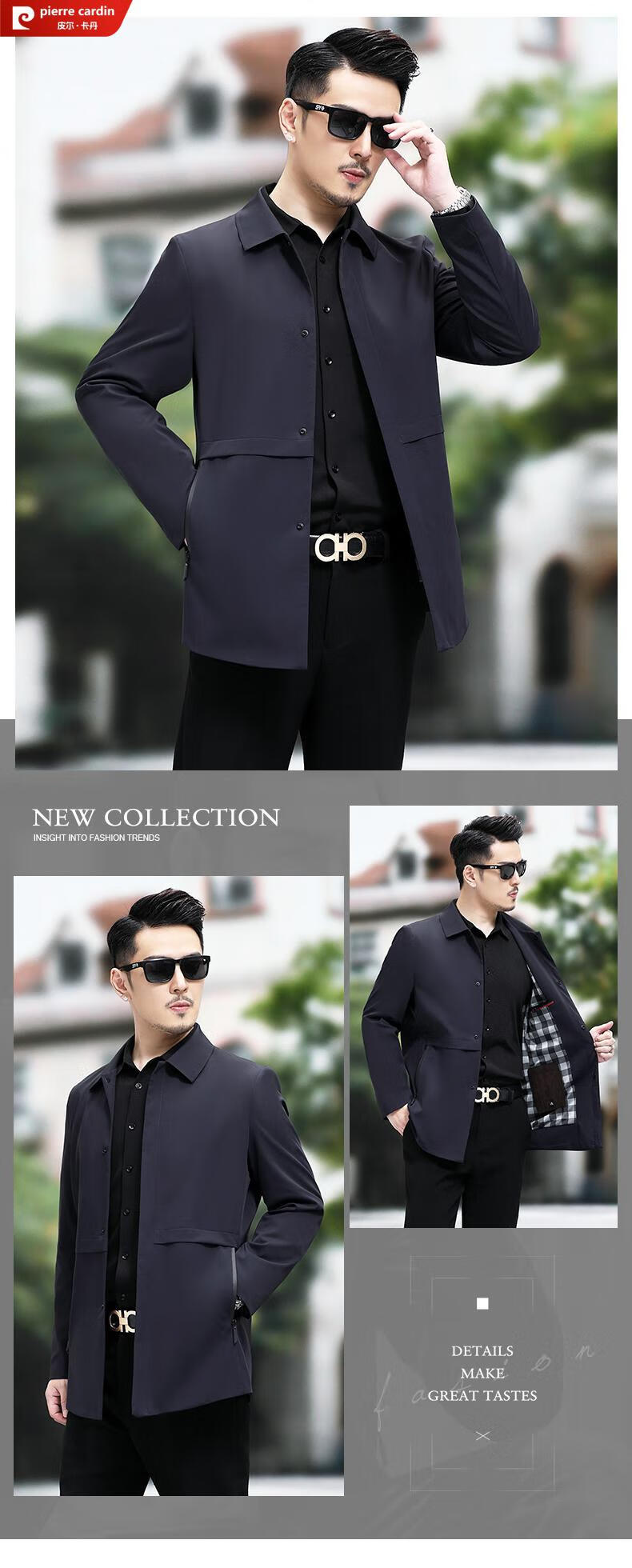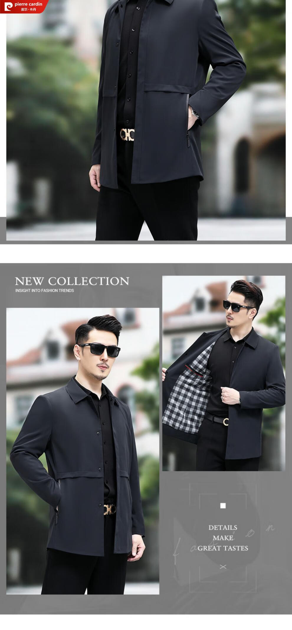 Короткая ветровка Pierre Cardin, мужская весна и осень 2025, новая деловая тонкая куртка с лацканами, повседневное мужское весеннее тонкое пальто среднего возраста, темно-синий L 175 рекомендуется 125-145 Jin Jin равен 0,5 кг