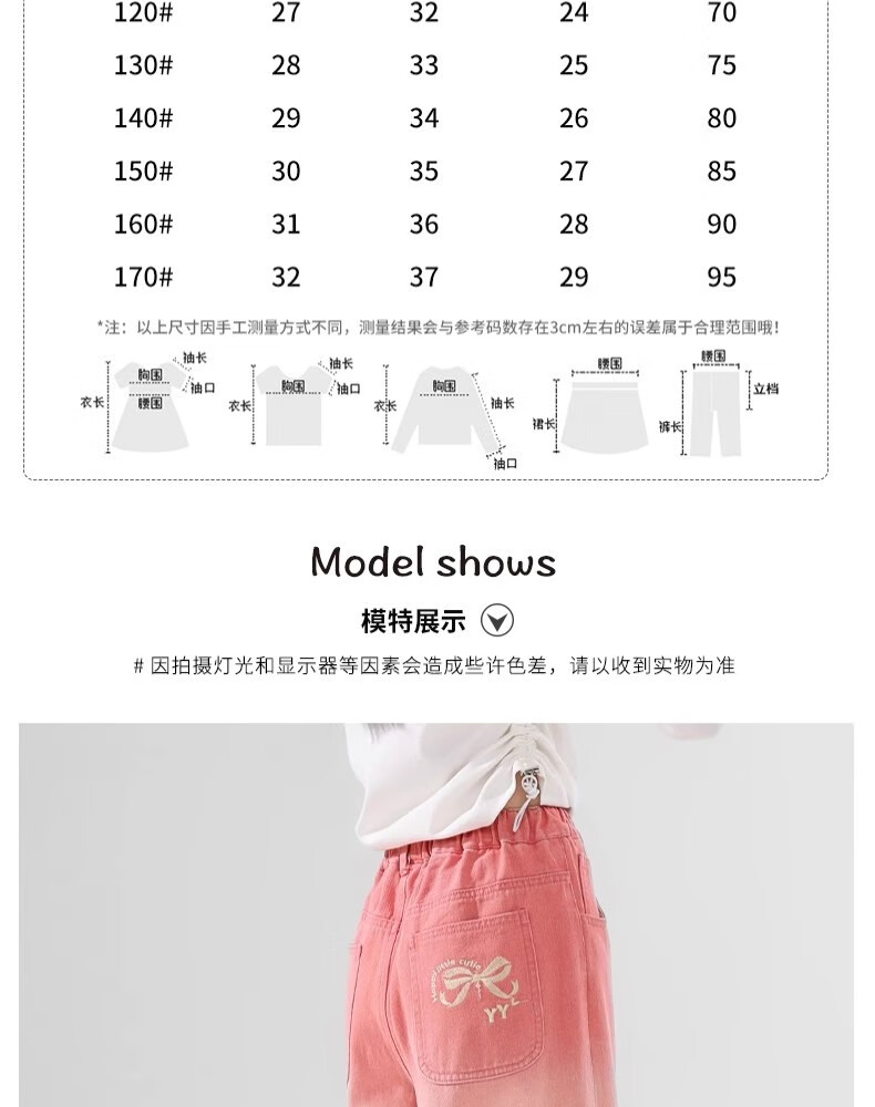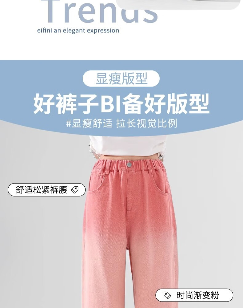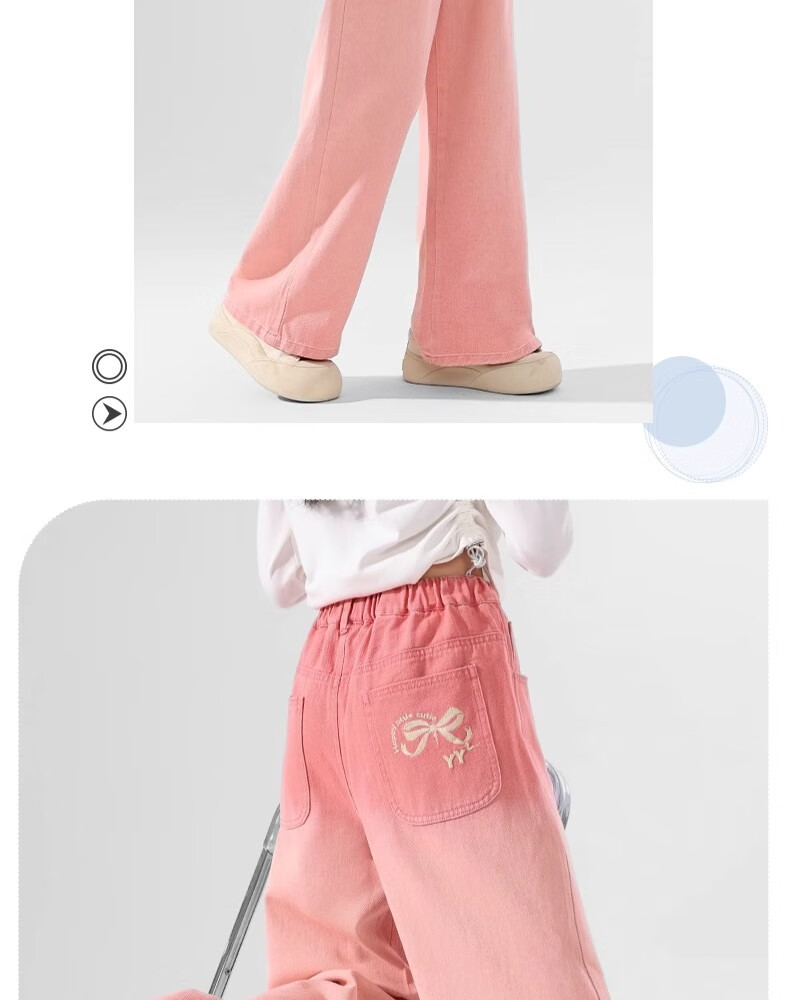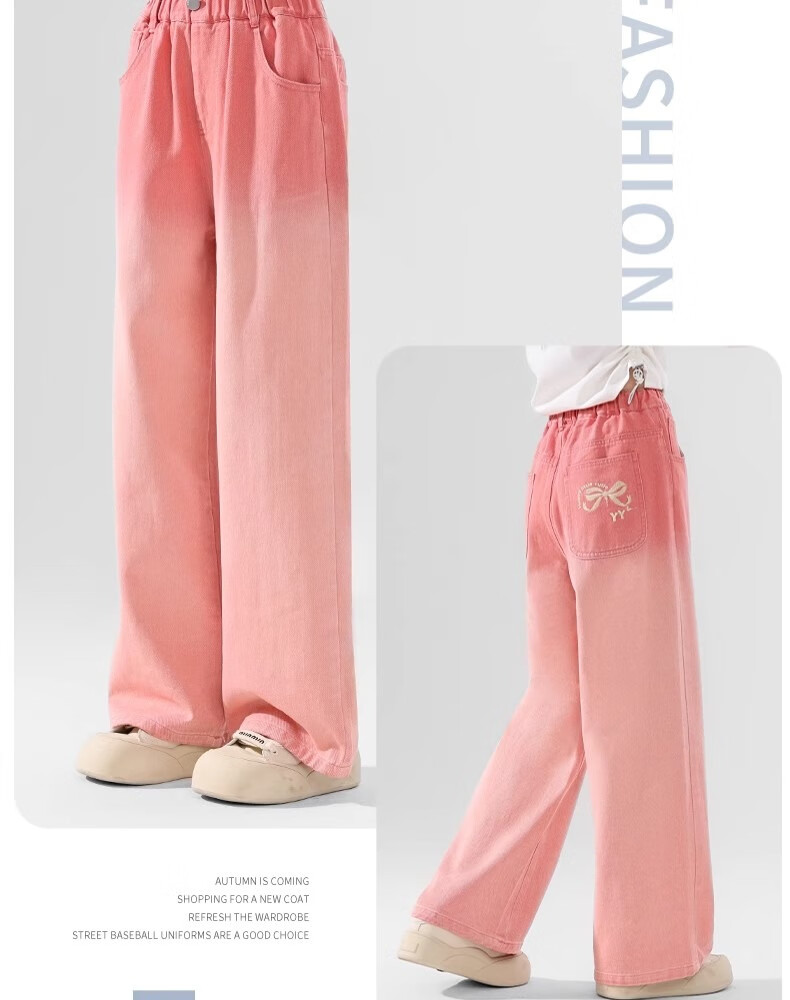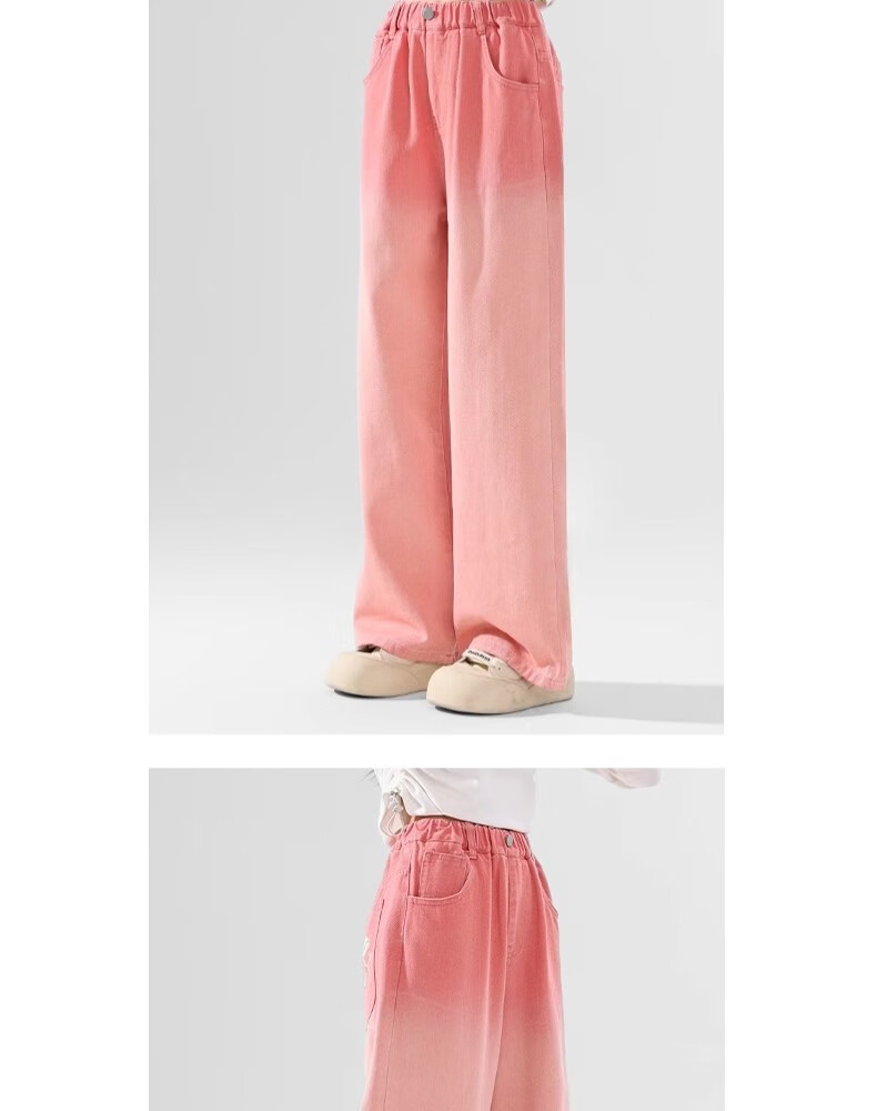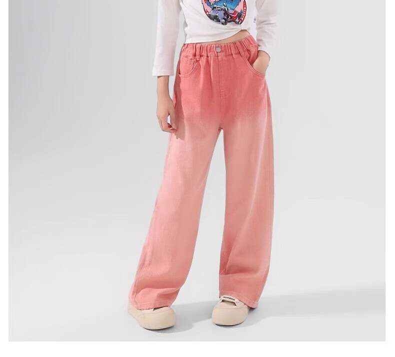 艾卡诺 I.KARNOW儿童春秋裤子2025新款渐变牛仔裤女童阔腿裤大童女孩粉色直筒长裤 4907绿色13143米色【套装】 150