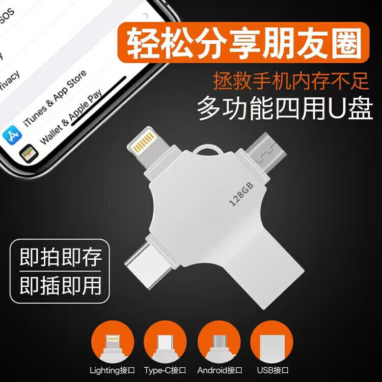 u盘手机电脑两用安卓苹果高速3.0四合一多接口金属定制 粉色1000G