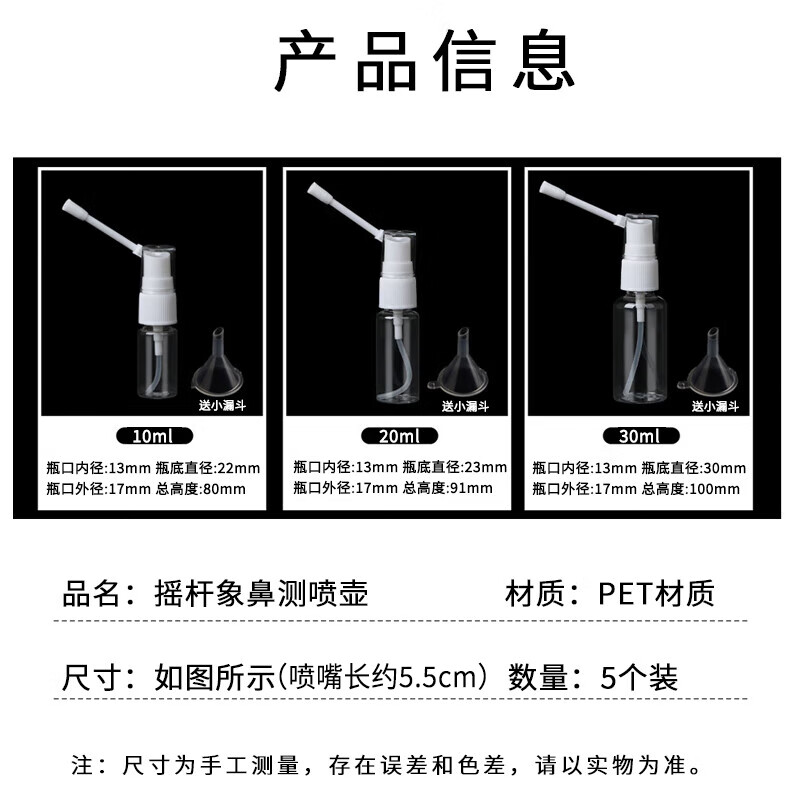 Dongzhitiandi Elephant Trunk Spray Bottle Plastic Liquid Dispensing Bottle 360 Rotating Nasal Spray Bottle Spray Nose Oral Elephant Trunk Spray Bottle Transparent 10ML Elephant Trunk Spray Bottle 5 Pack