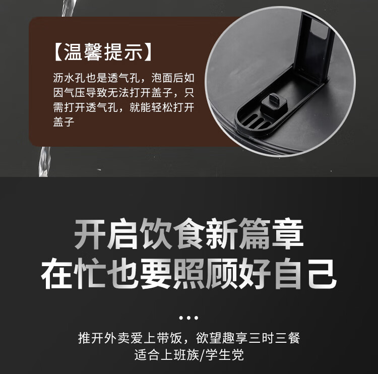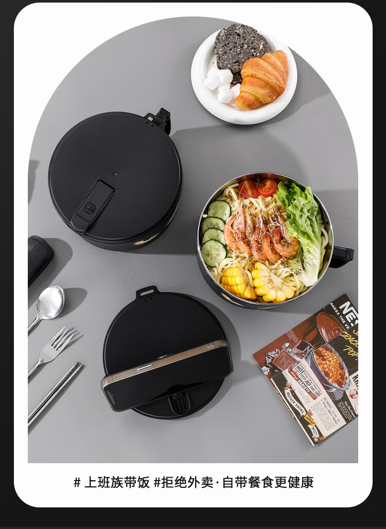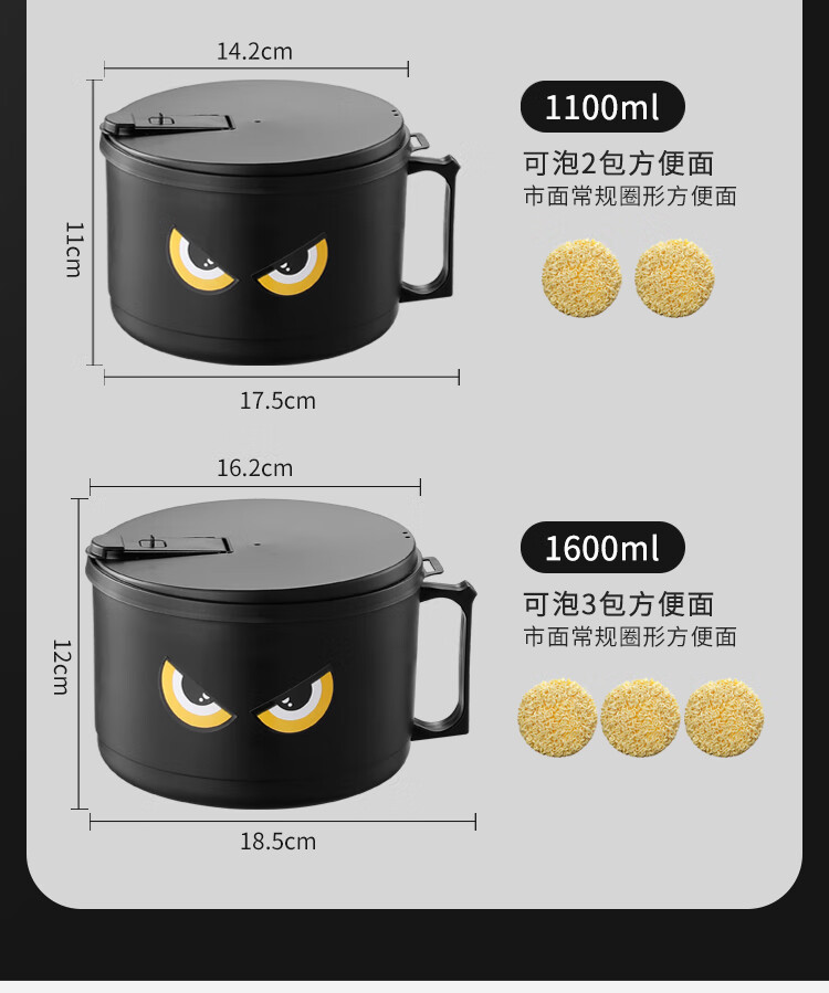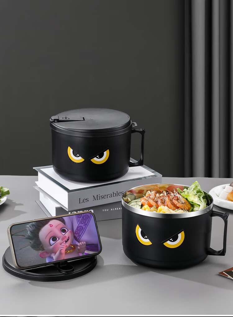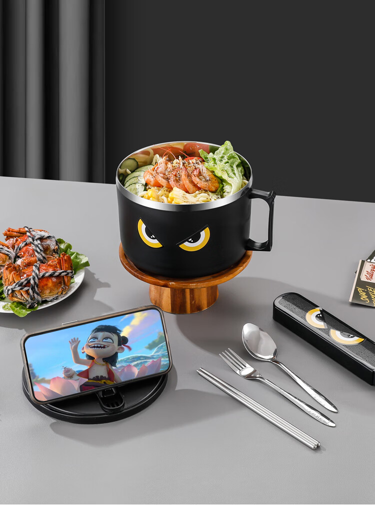 不锈钢泡面碗学生饭碗带盖滤水宿舍便当盒饭盒快餐杯保鲜盒泡面碗 猫眼款【大号】赠餐具1600ml