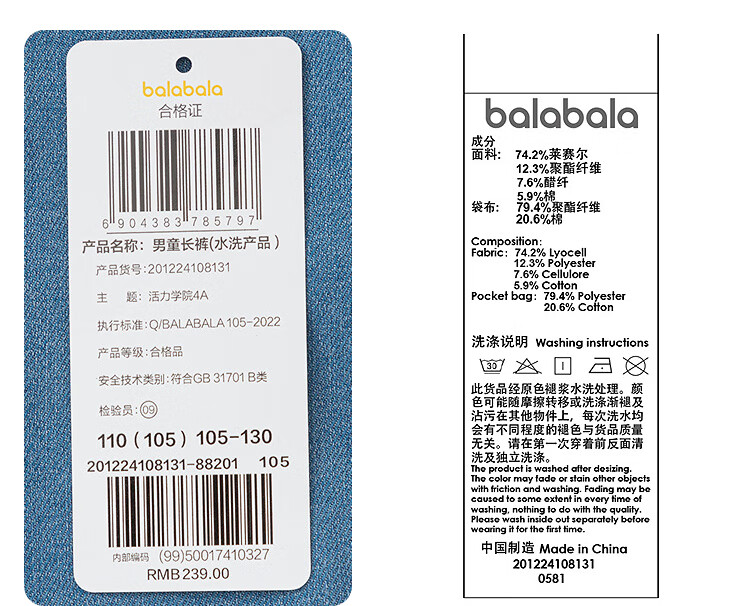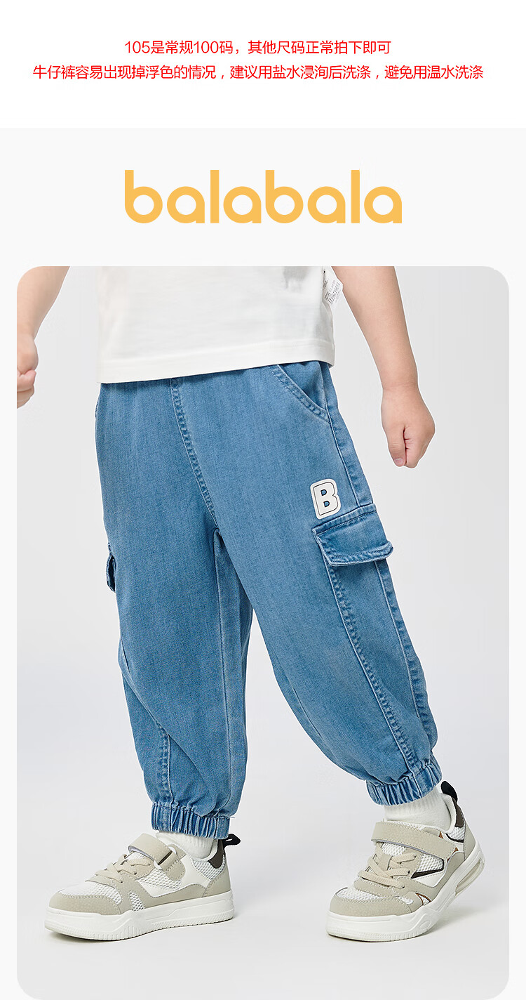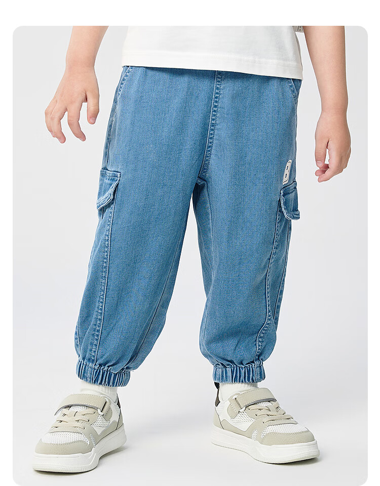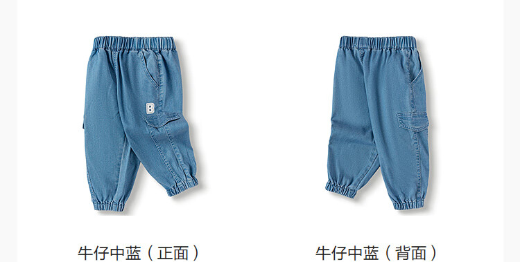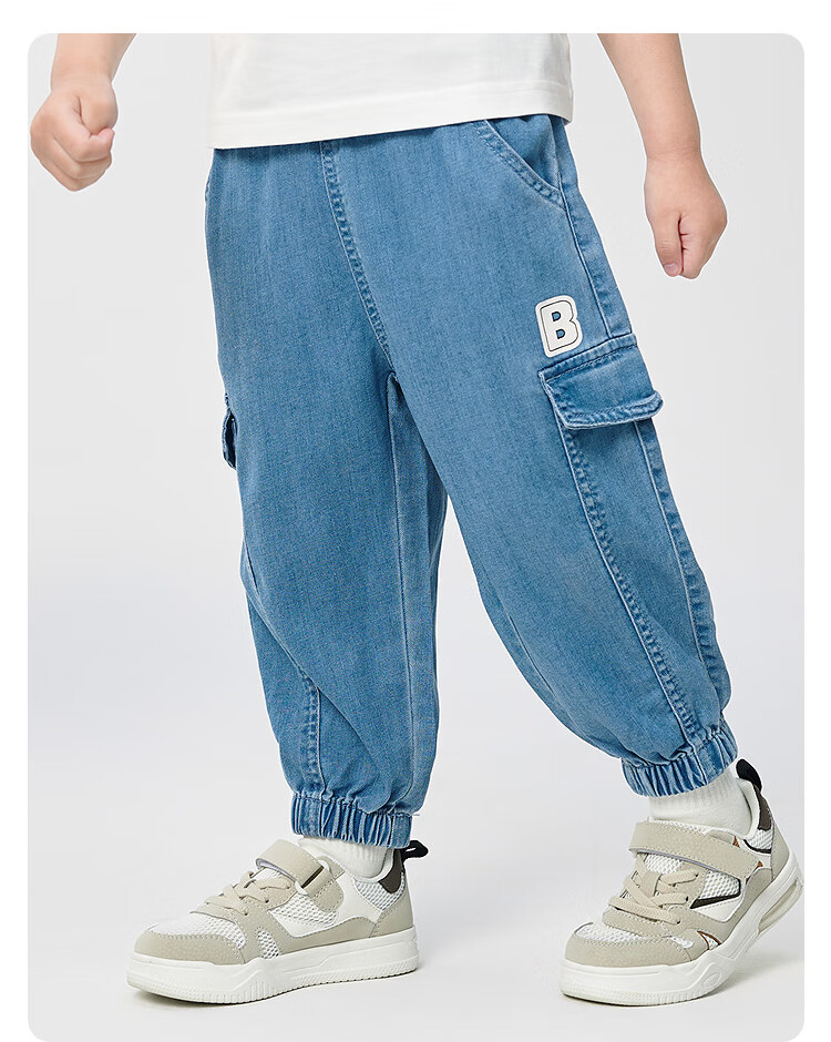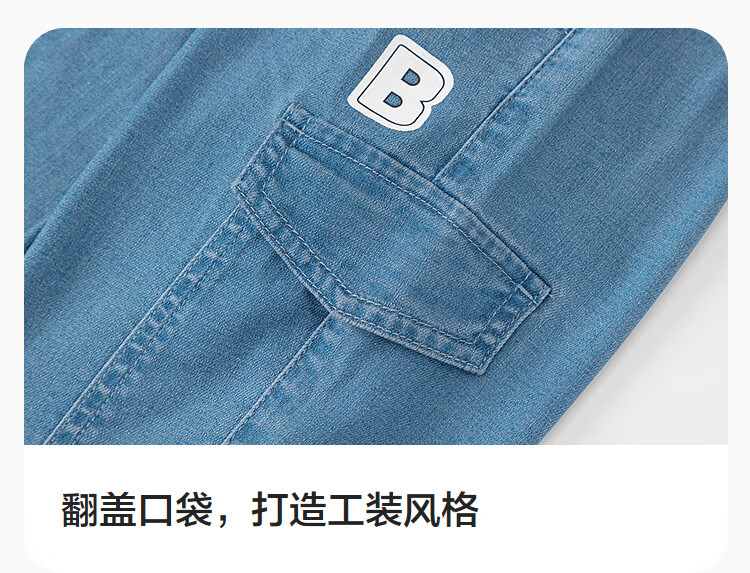 巴拉巴拉童装儿童长裤工装牛仔裤男童裤子夏季宽松束脚裤时尚百搭 牛仔中蓝88201 120