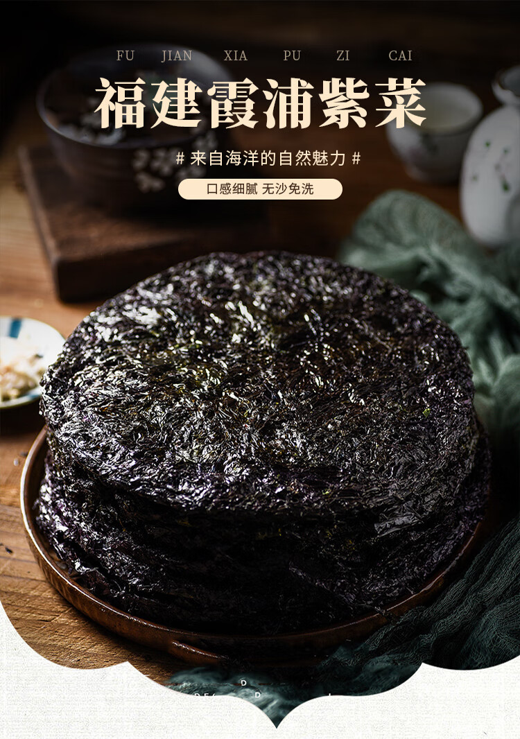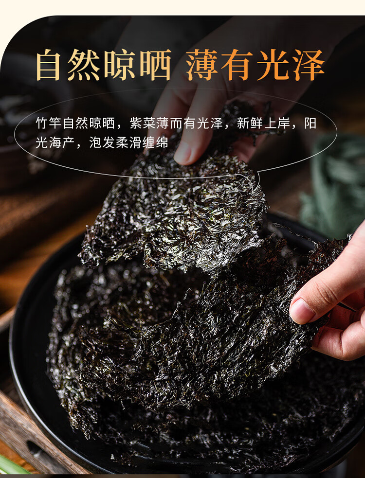 正宗霞浦免洗紫菜无沙无料包干货头水紫菜新鲜蛋花汤煲汤商用 圆饼紫菜【8g*3包】