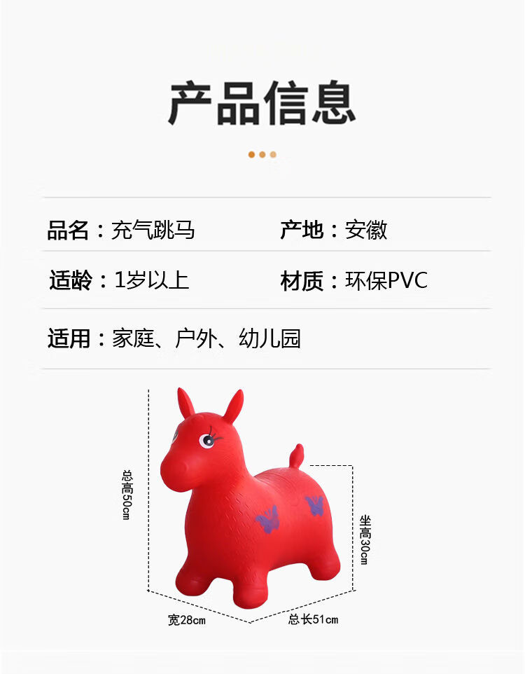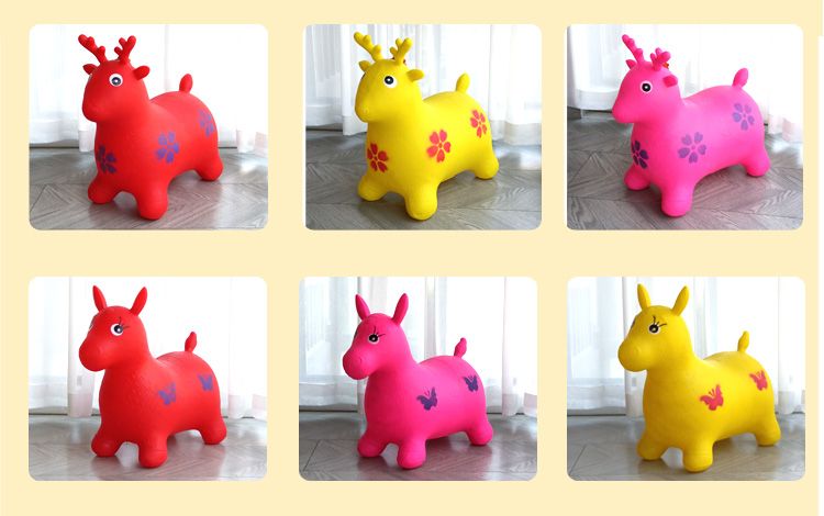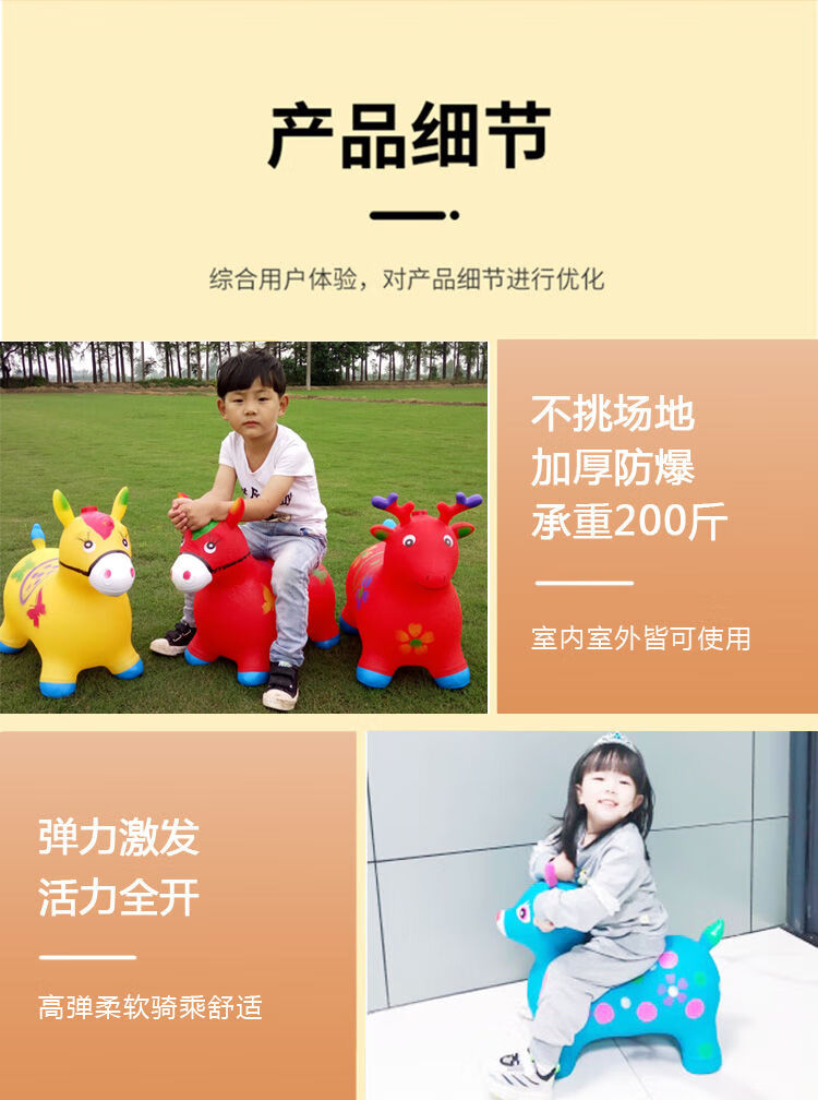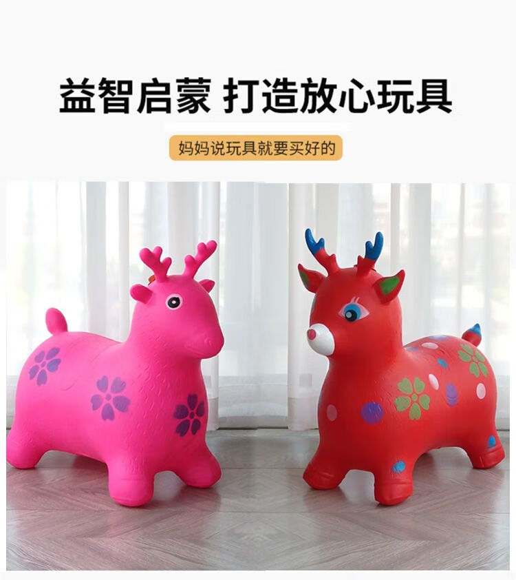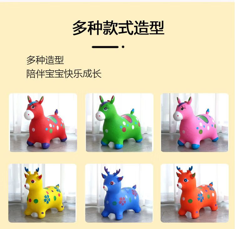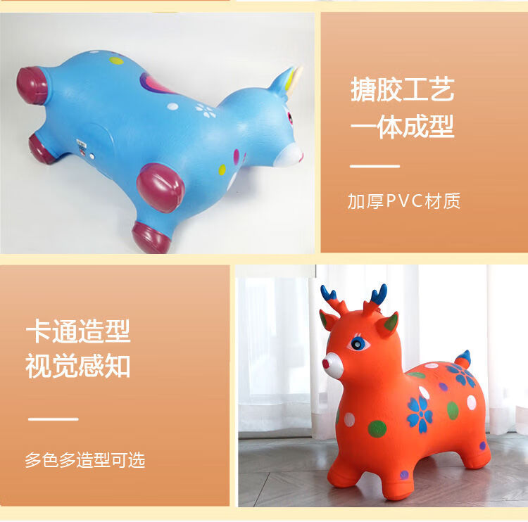 Jumping horse, 1-3 years old, children's inflatable toy with music, enlarged and thickened leather horse, baby riding, jumping deer mount, ordinary horse (without music), random color