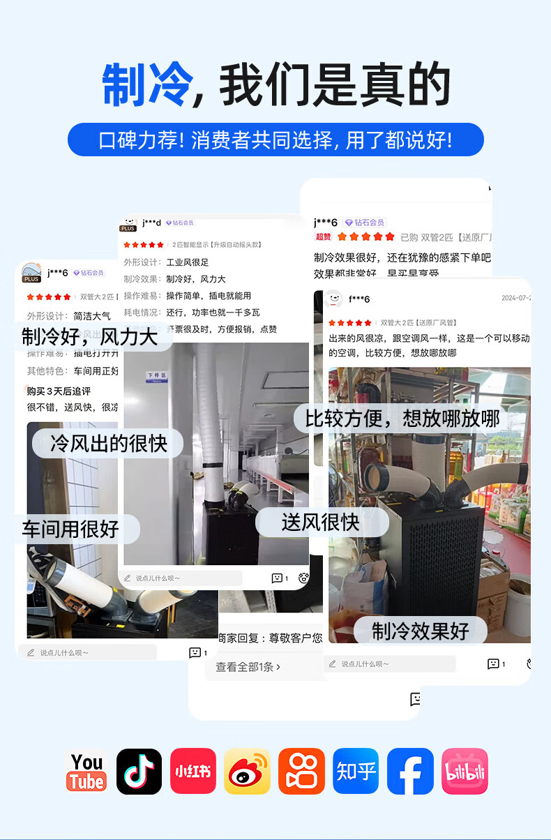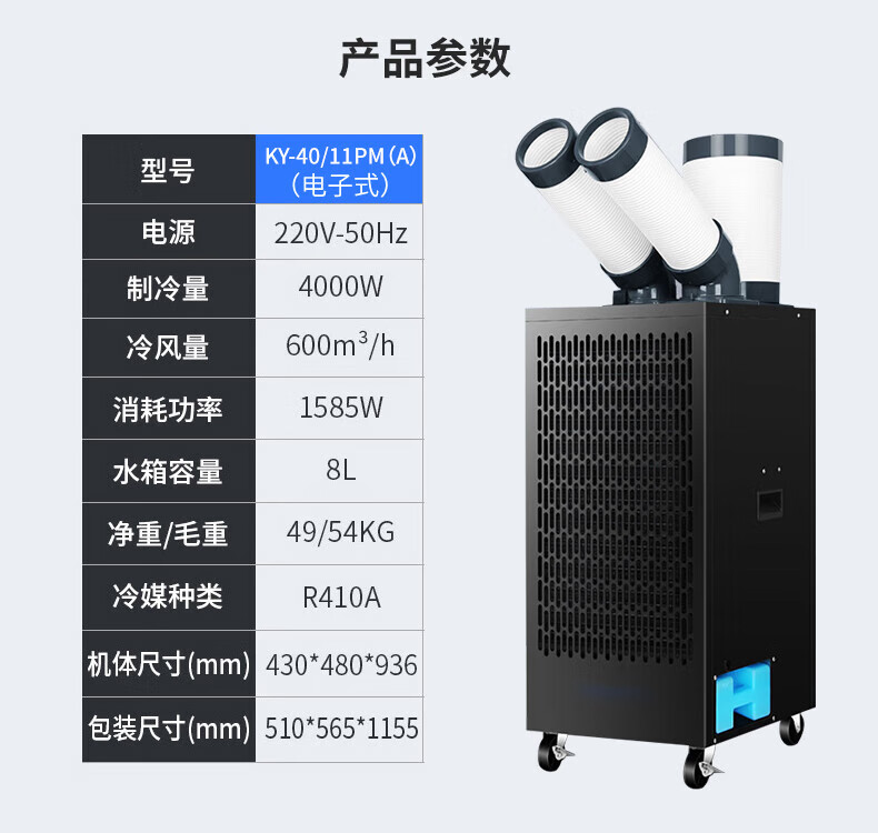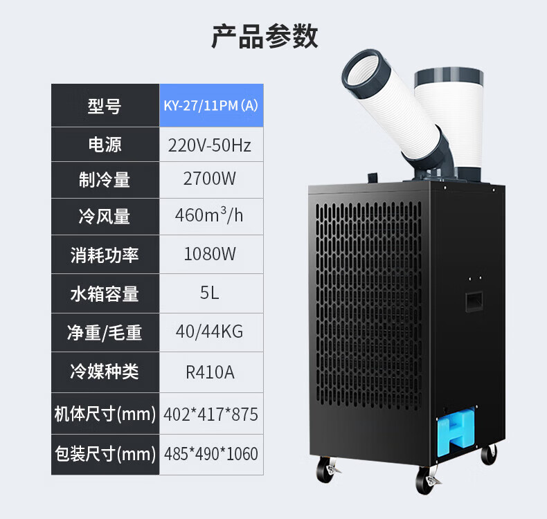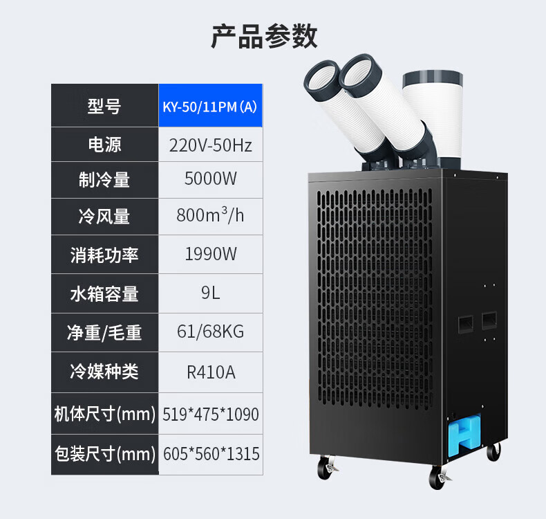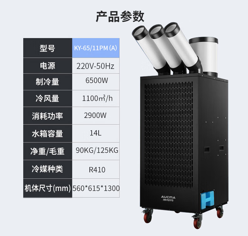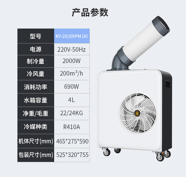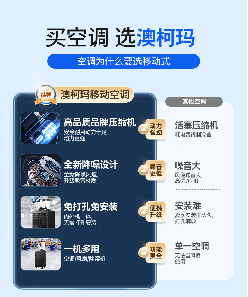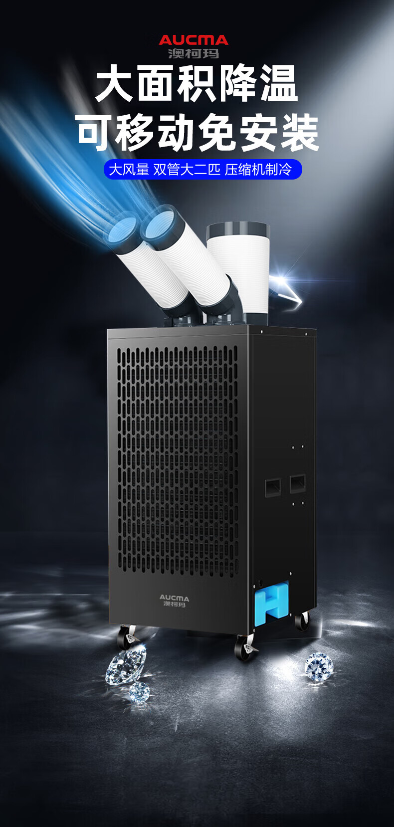 澳柯玛工业移动空调车间冷风机压缩机制冷一体机商用厨房工厂冷气风扇 小1匹单管【送原厂风管】