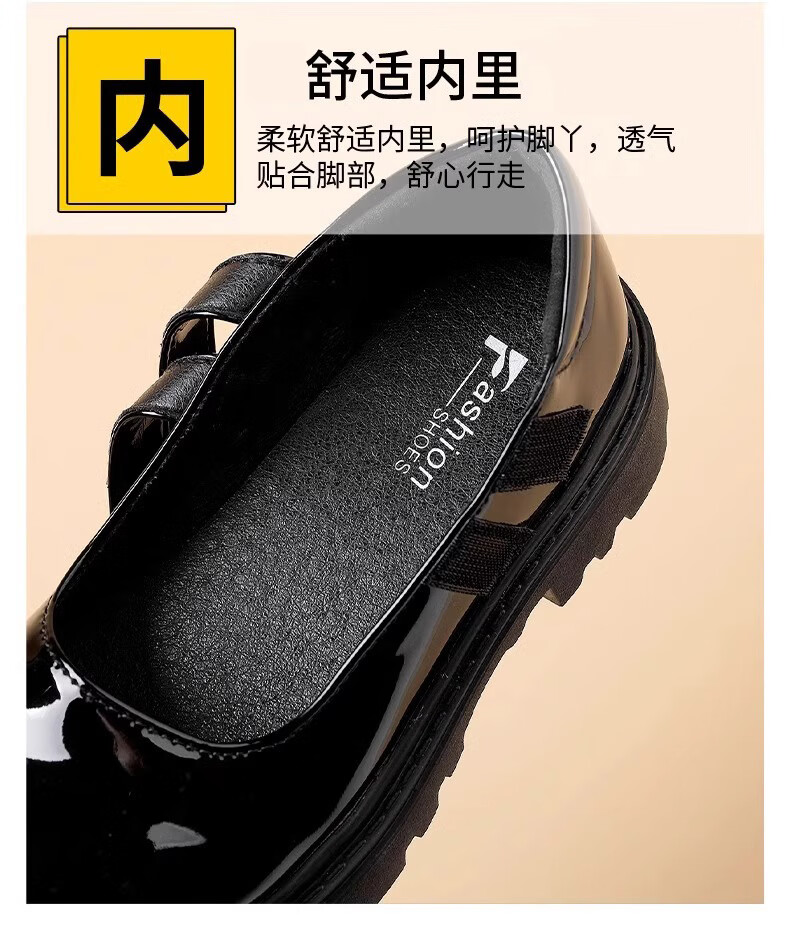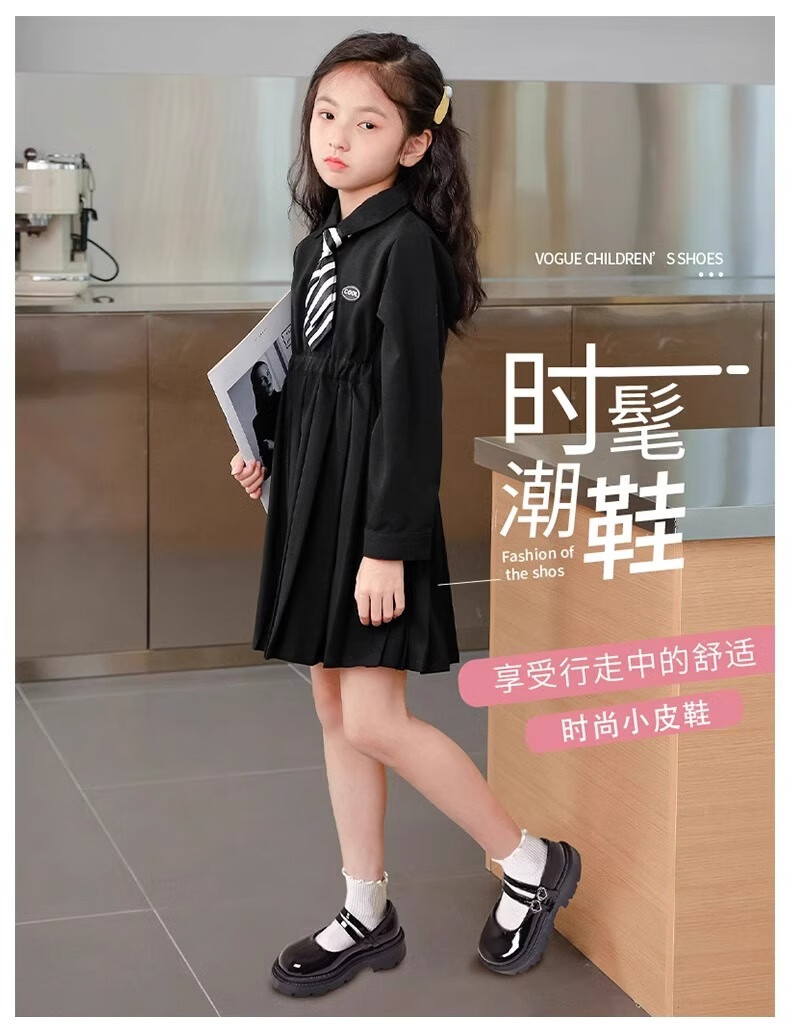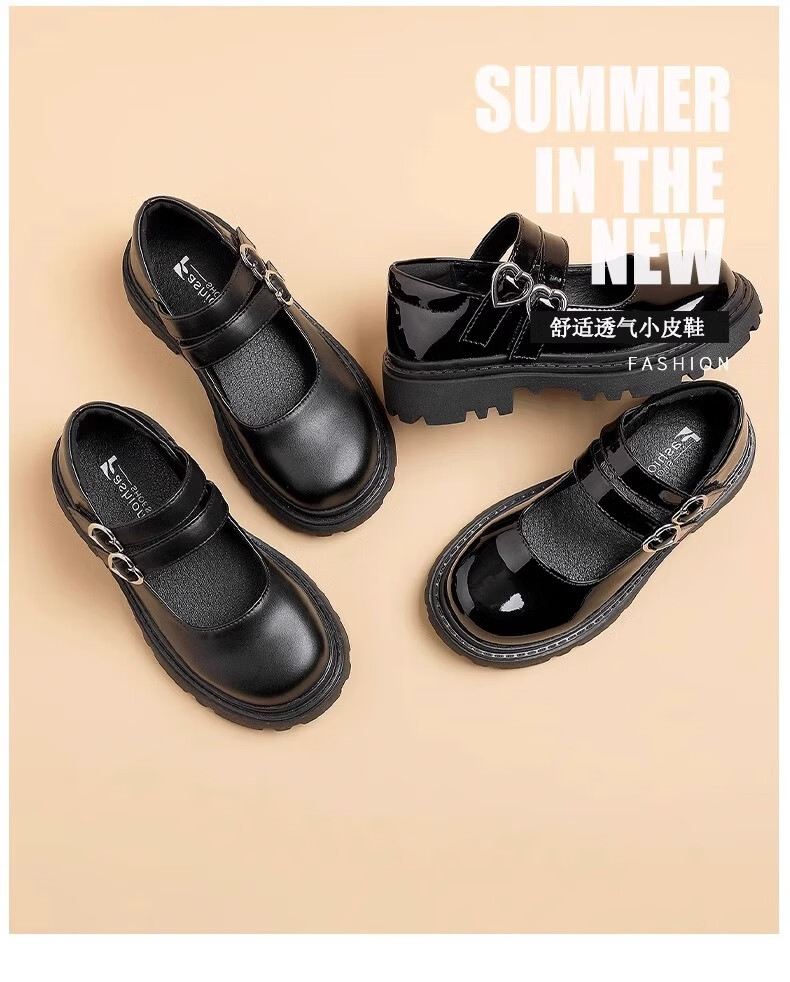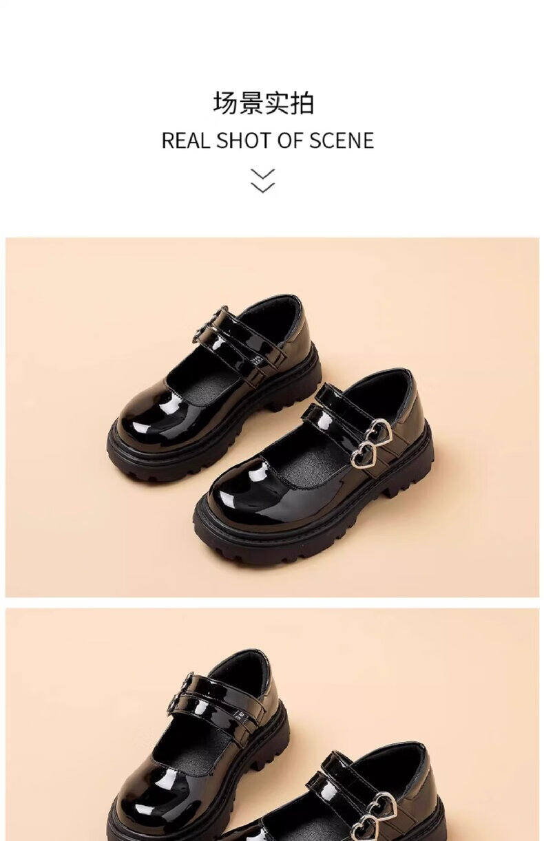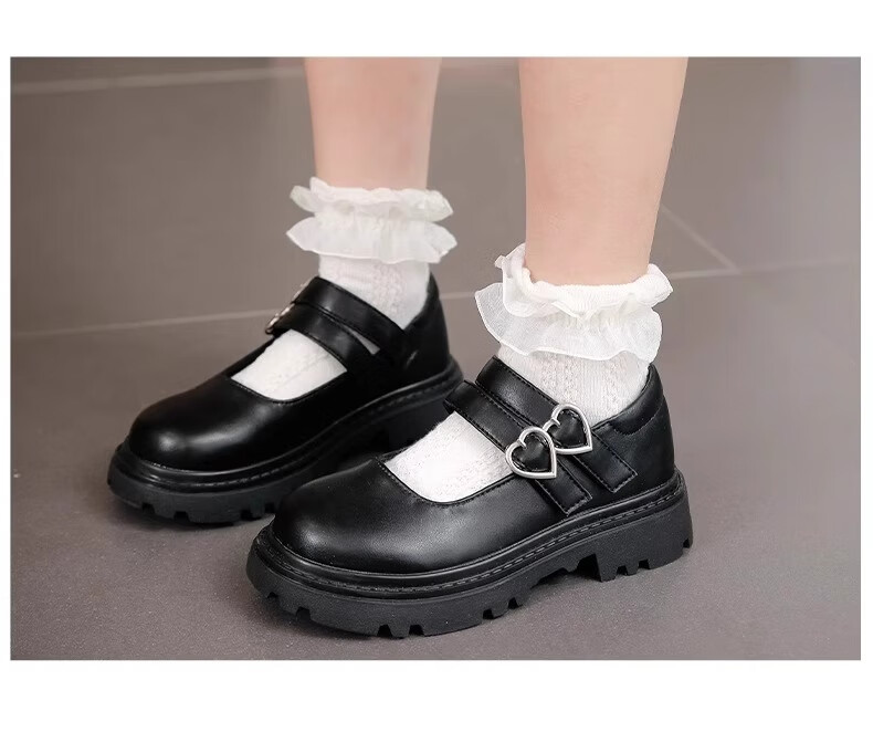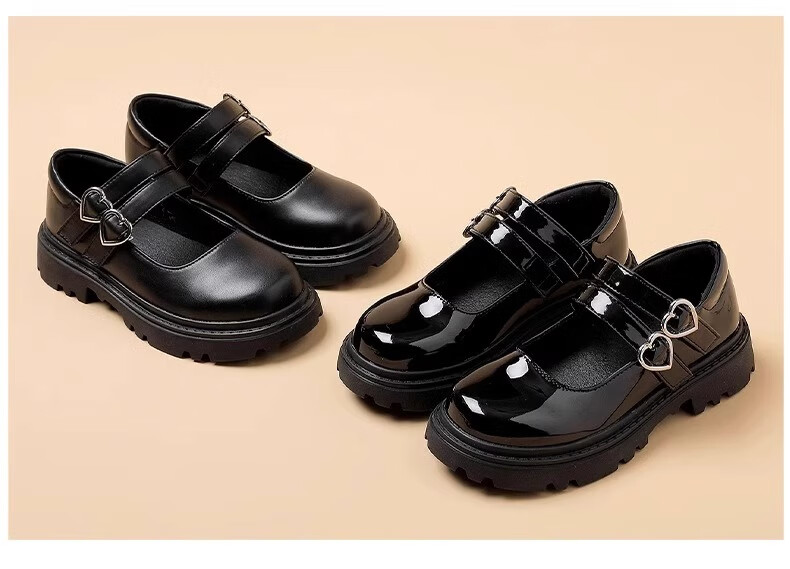 三千奈落黑色皮鞋女童春夏新款儿童公主演出黑色单鞋中大童女孩学院风童鞋 黑色爱心皮鞋32码