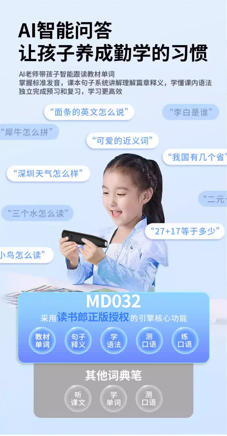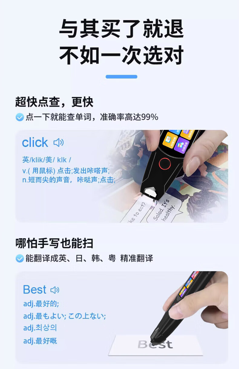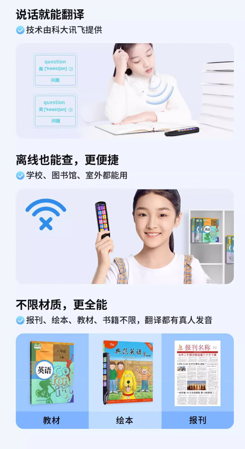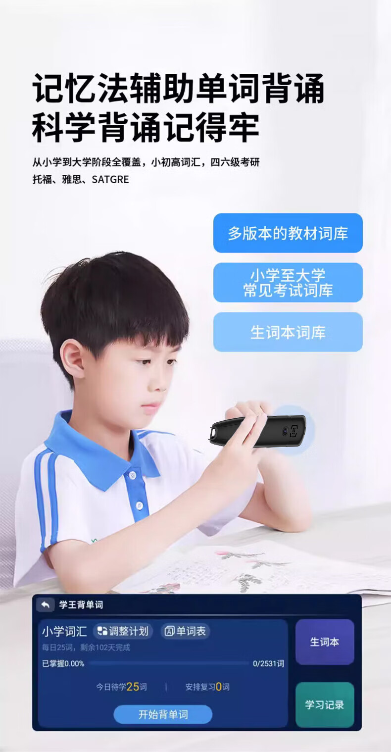 小米机适用英语点读笔词典笔小学初中高中学习神器多功能翻译笔 升级版-蓝色】离线扫描+同步视频 官方标配