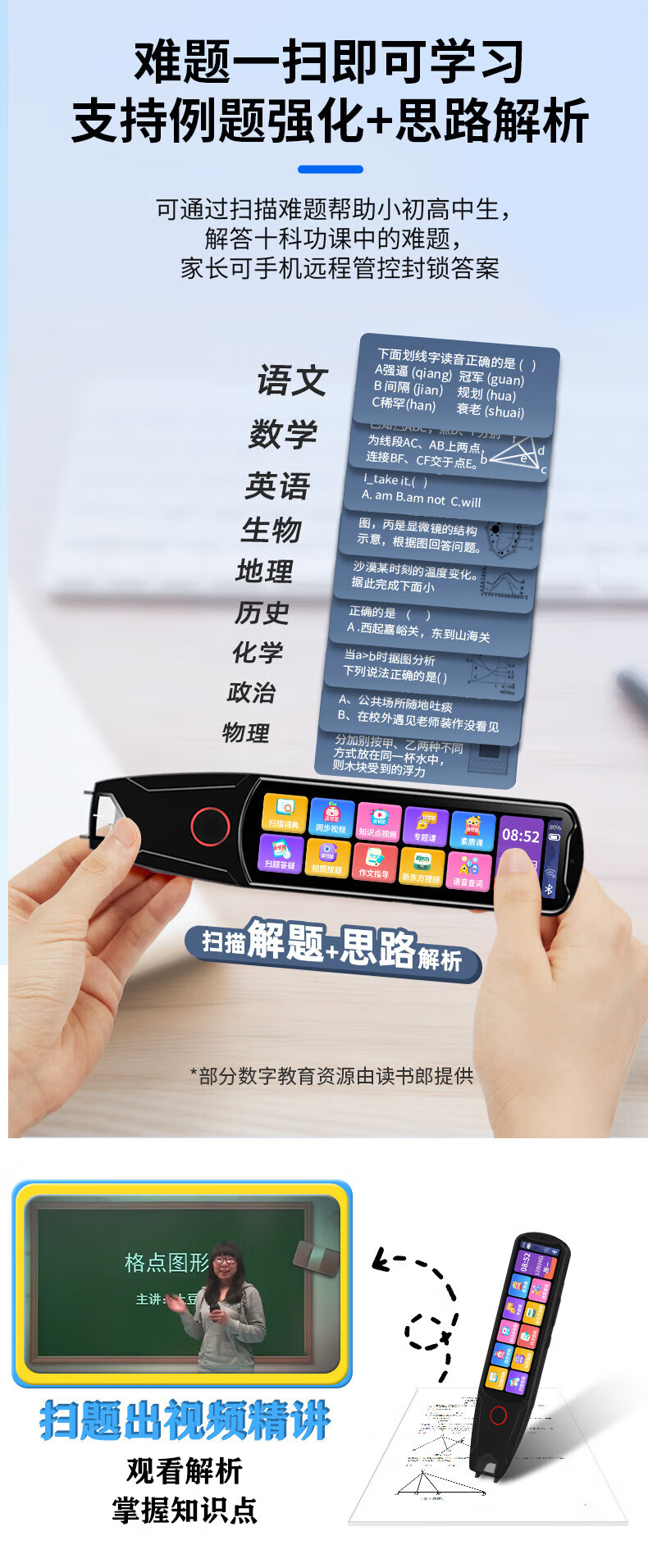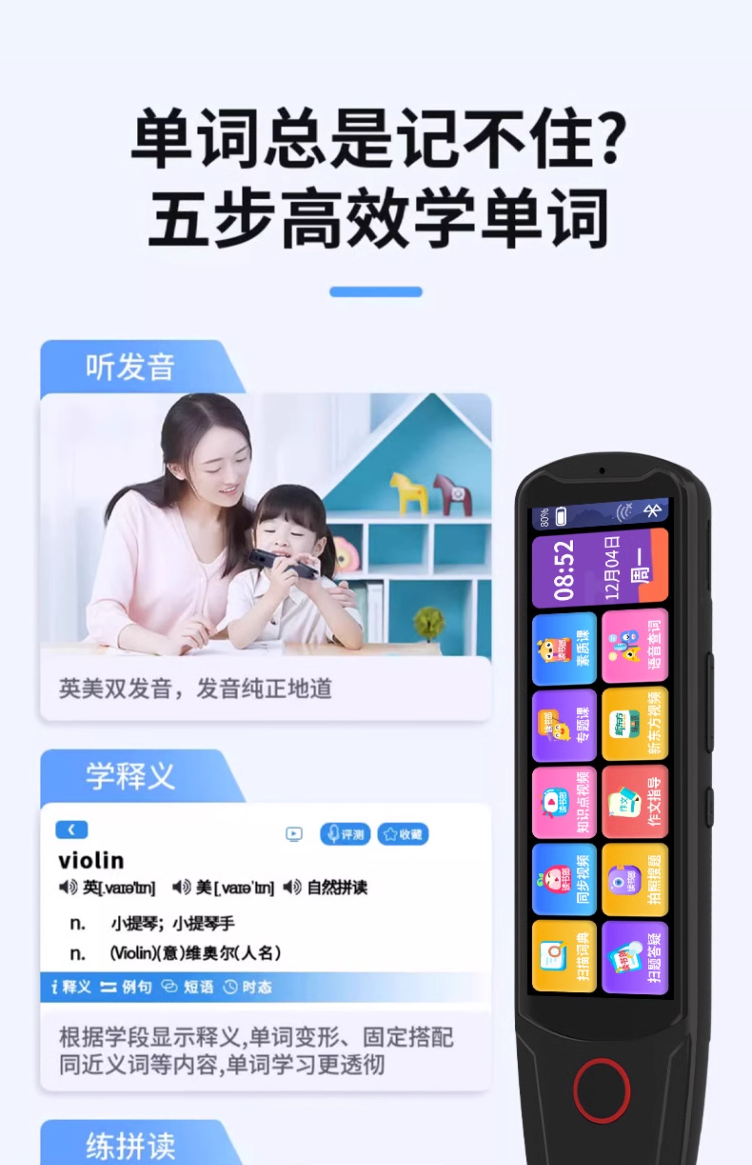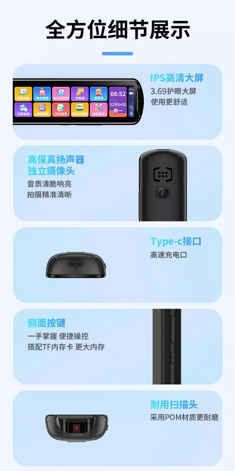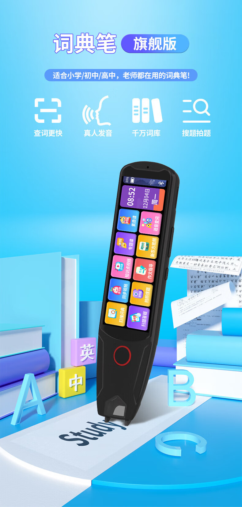 小米机适用英语点读笔词典笔小学初中高中学习神器多功能翻译笔 升级版-蓝色】离线扫描+同步视频 官方标配
